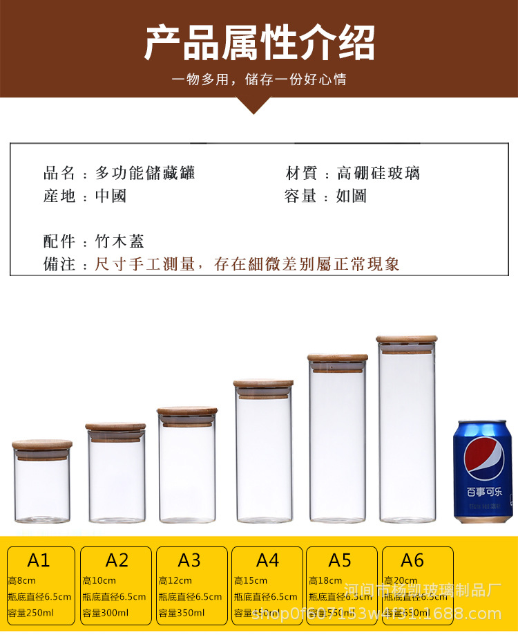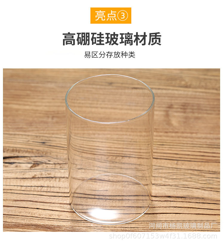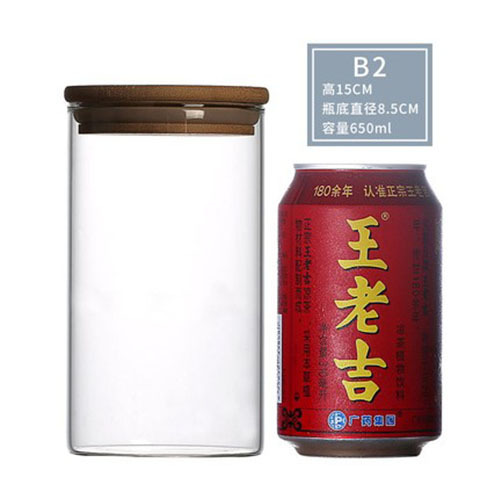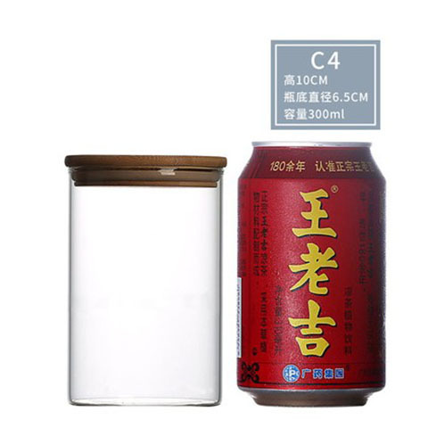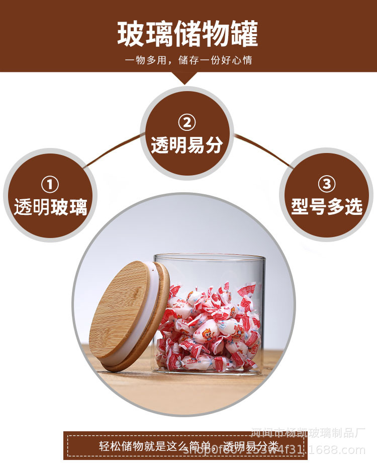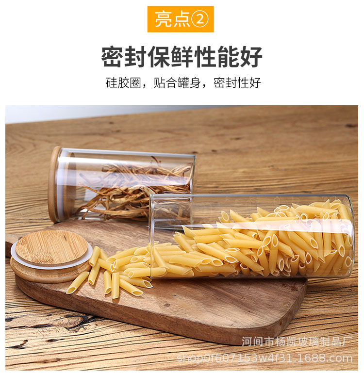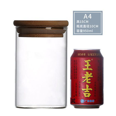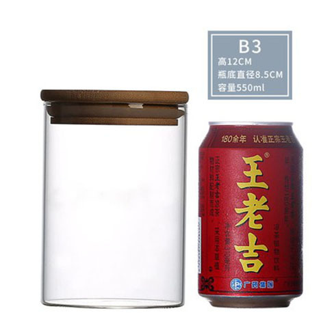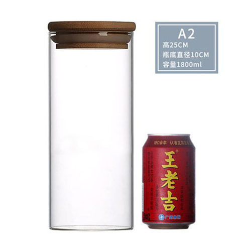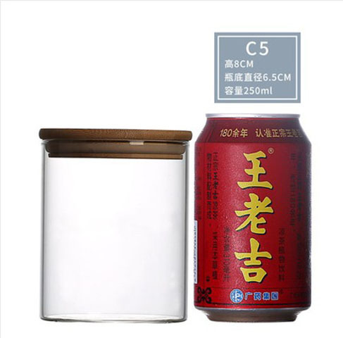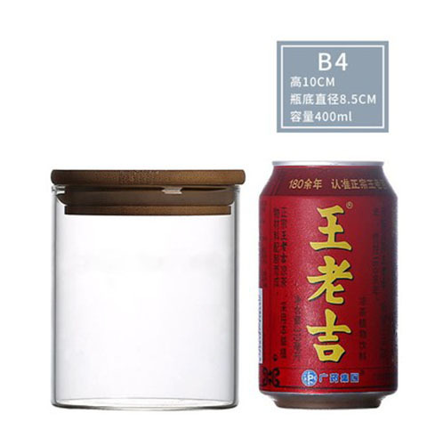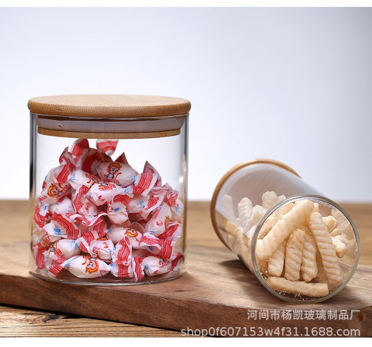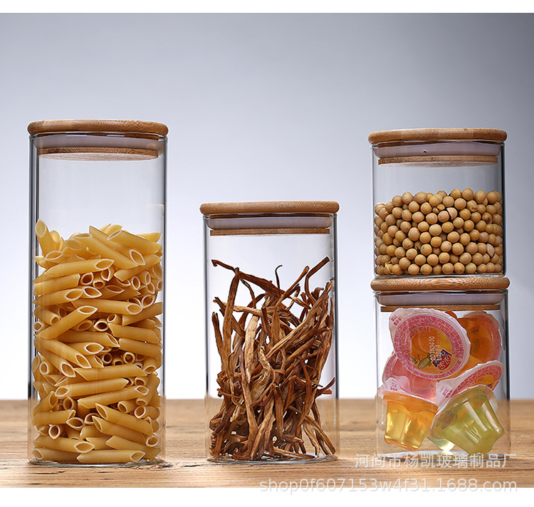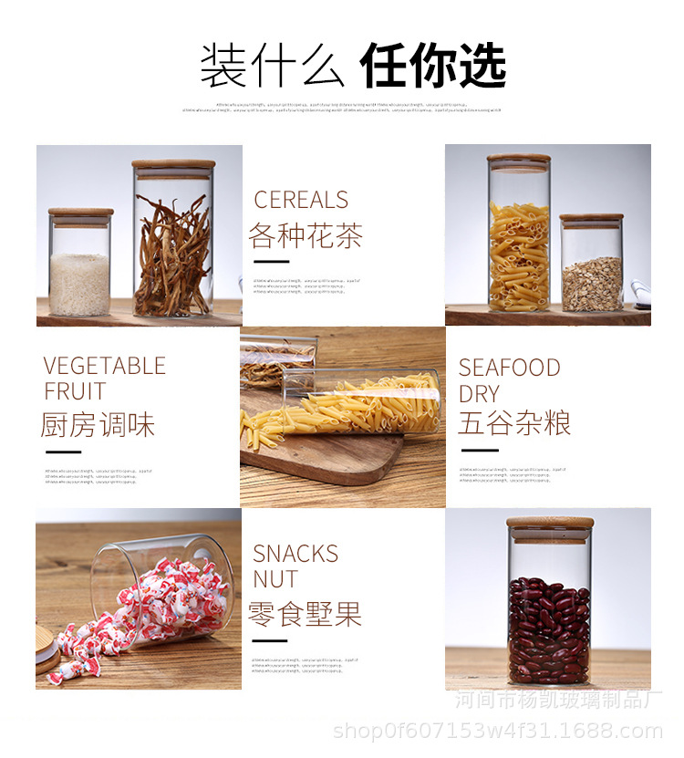 厂家批发直身玻璃竹木盖花茶茶叶罐 家用储物瓶 厨房杂粮收纳瓶