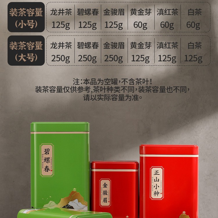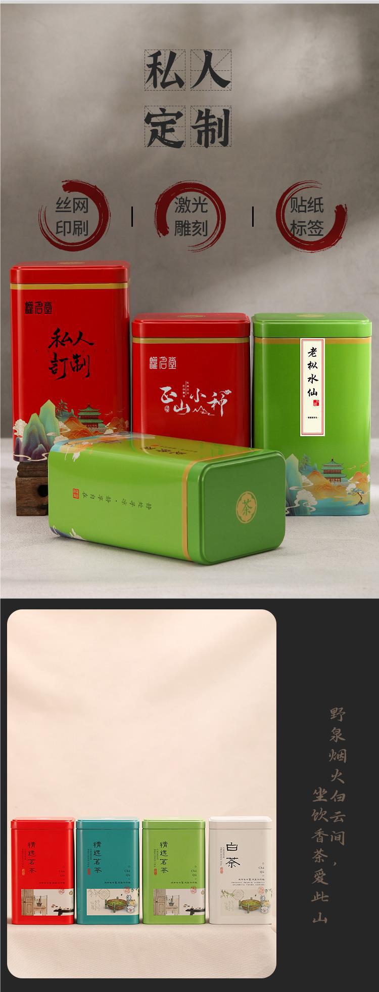 小茶叶罐二两半密封罐金属方形方罐马口铁罐包装盒工厂直销可订lo