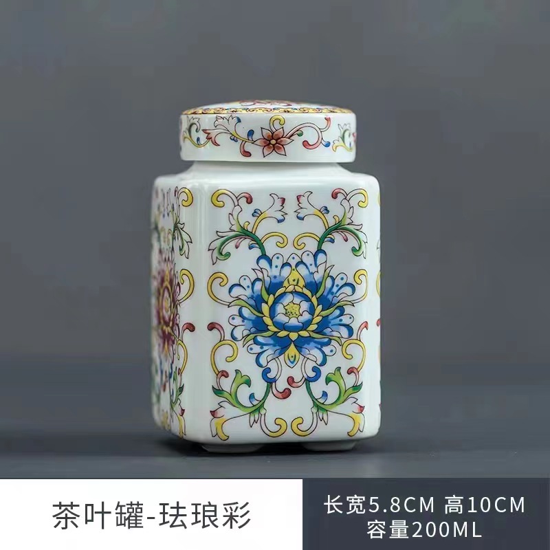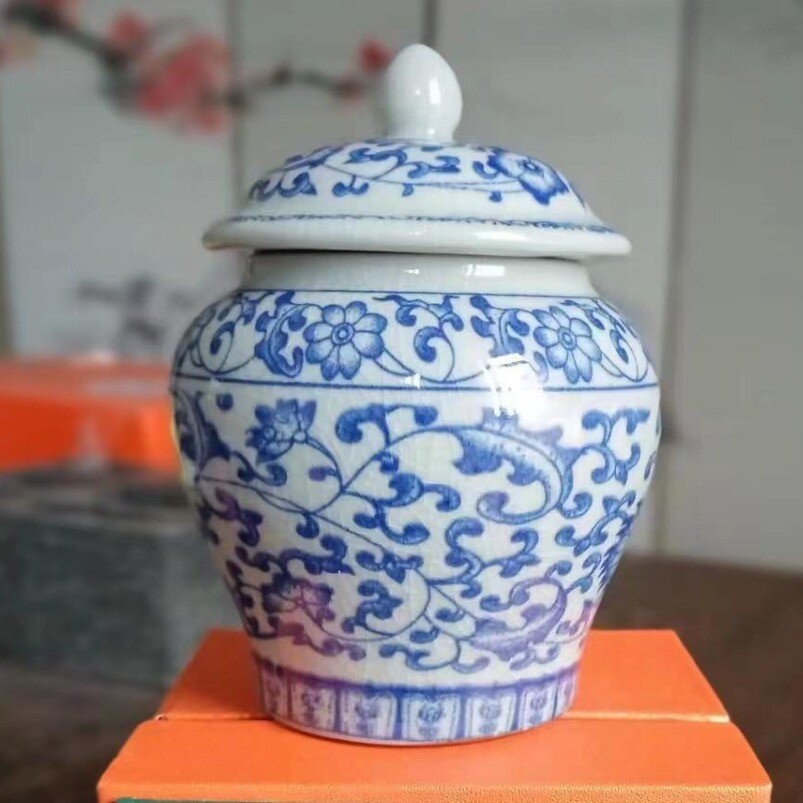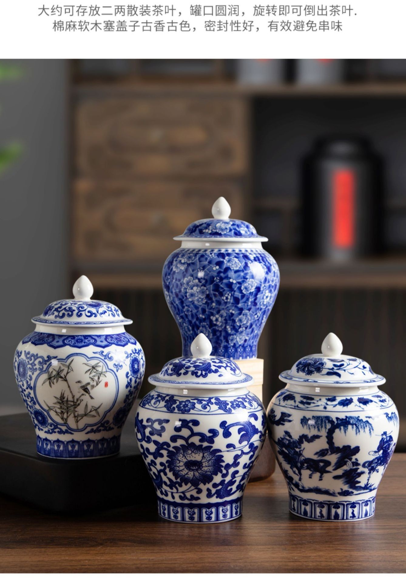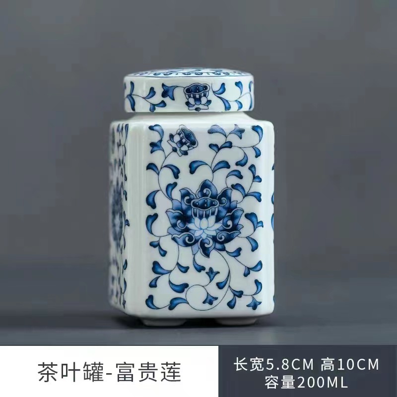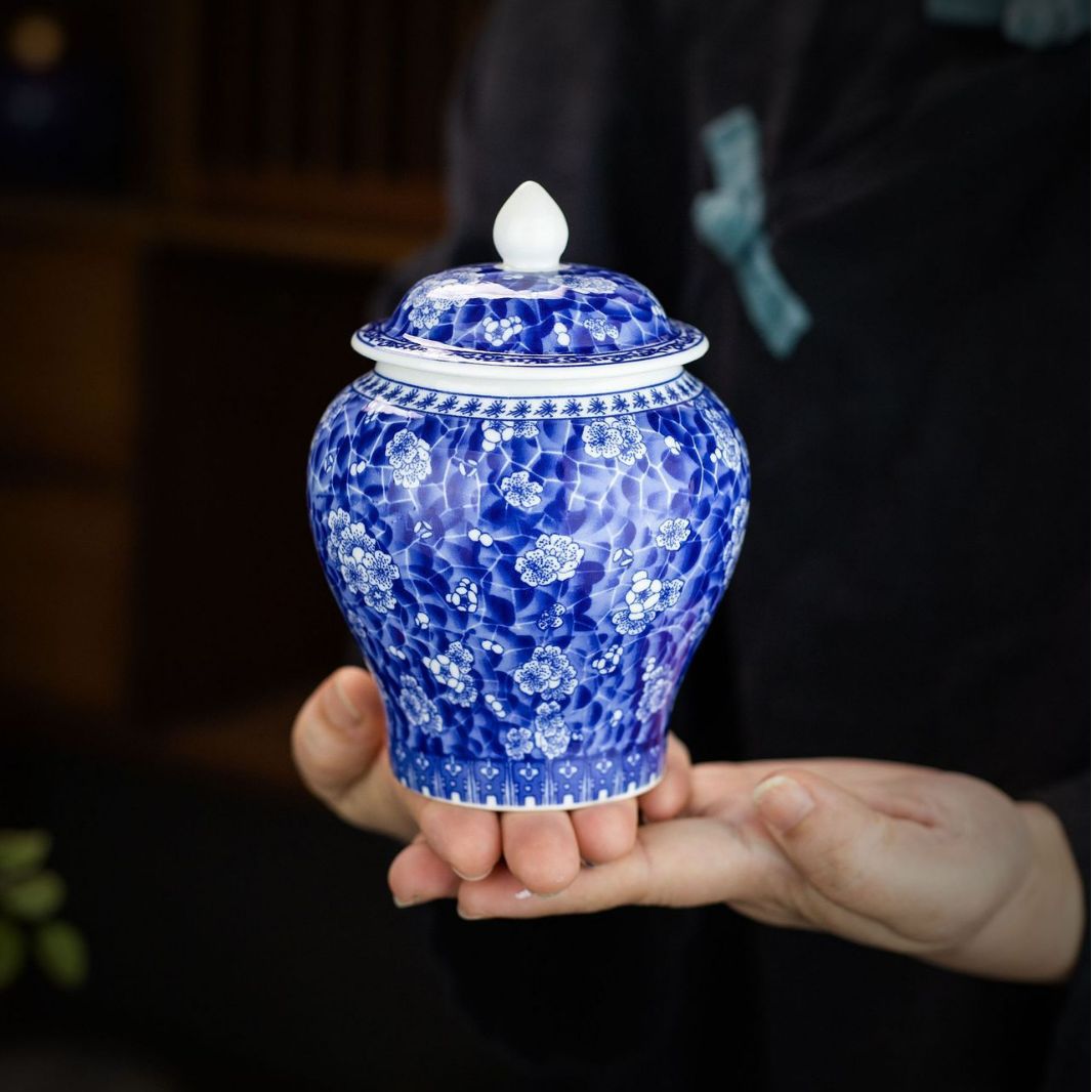 青花将军罐家用陶瓷茶叶普洱中式密封罐茶叶罐储存防潮复古收纳罐