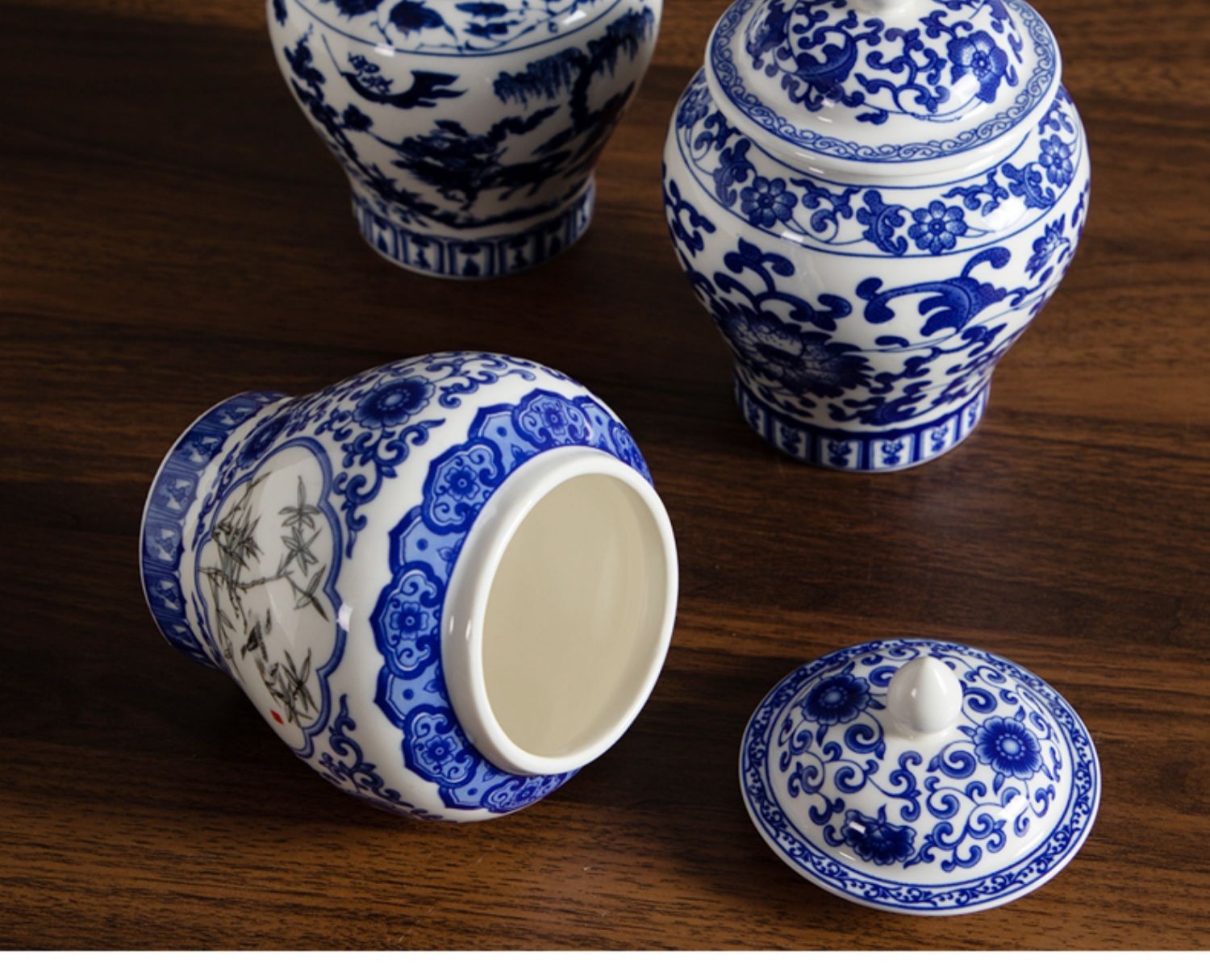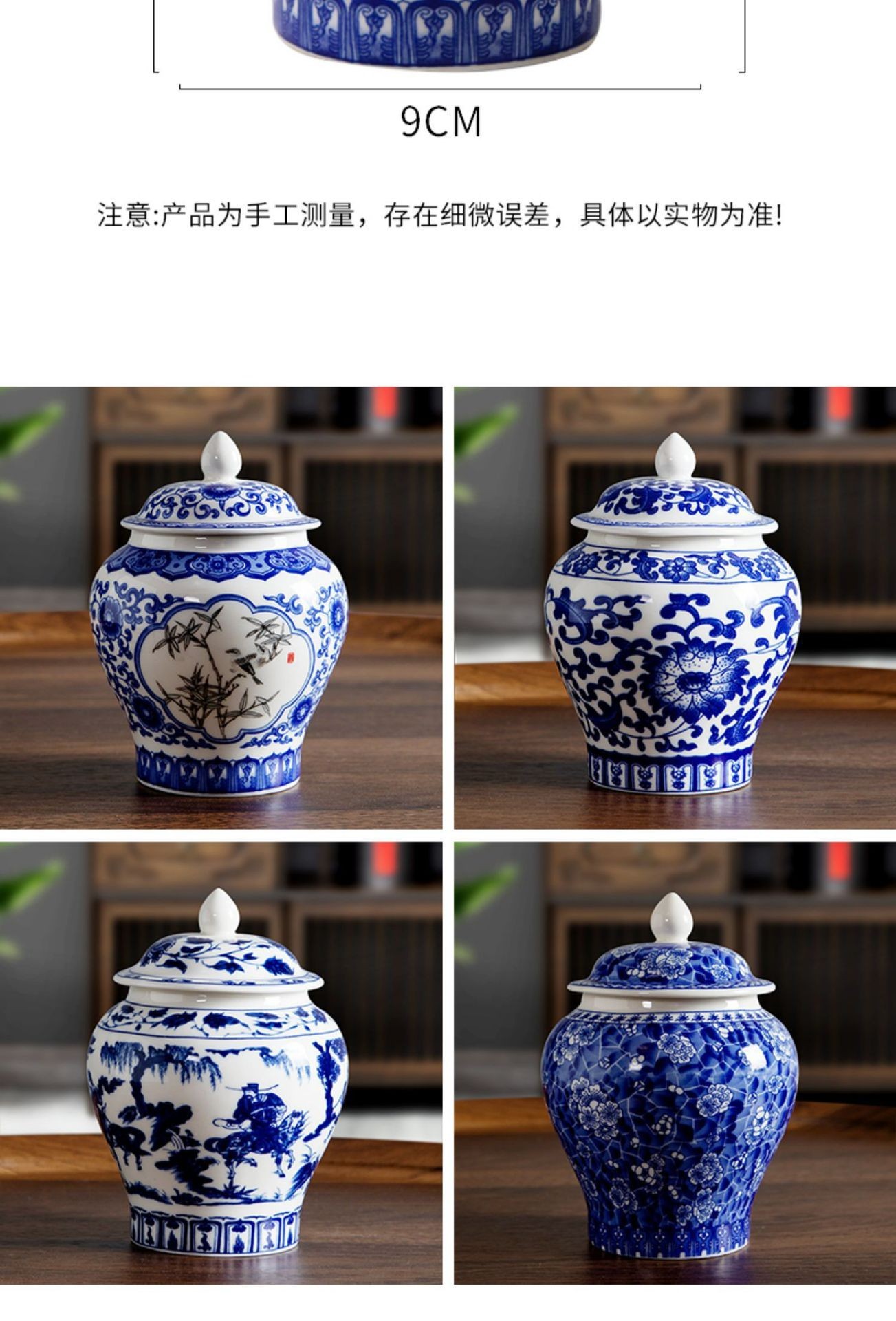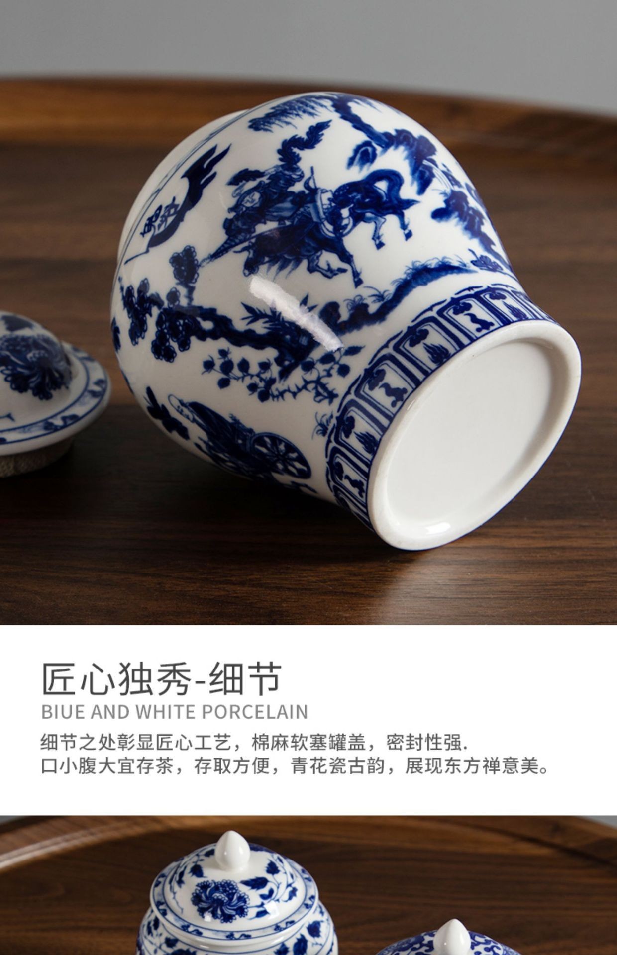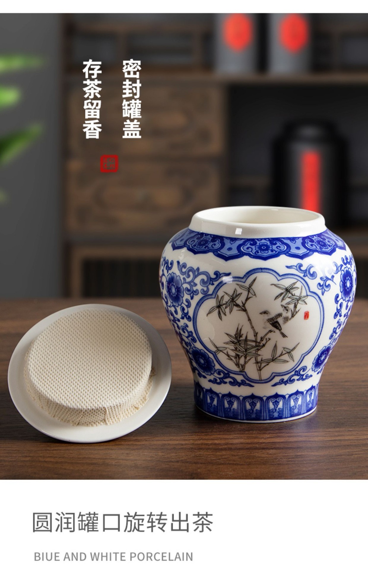 青花将军罐家用陶瓷茶叶普洱中式密封罐茶叶罐储存防潮复古收纳罐