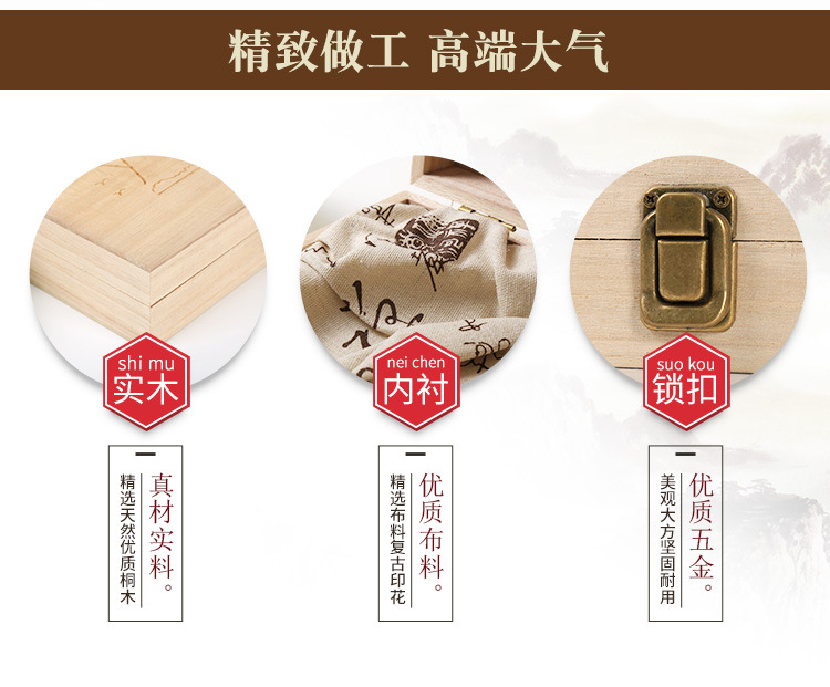 | 357 burnt color cloth tray + handbag (pattern note); wooden box(357烧色布托款+手提袋(图案备注);木盒) | USD $2.94 | 8888 piece available |