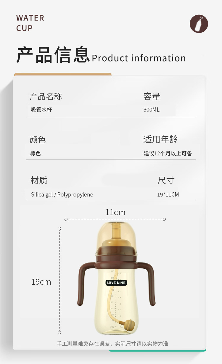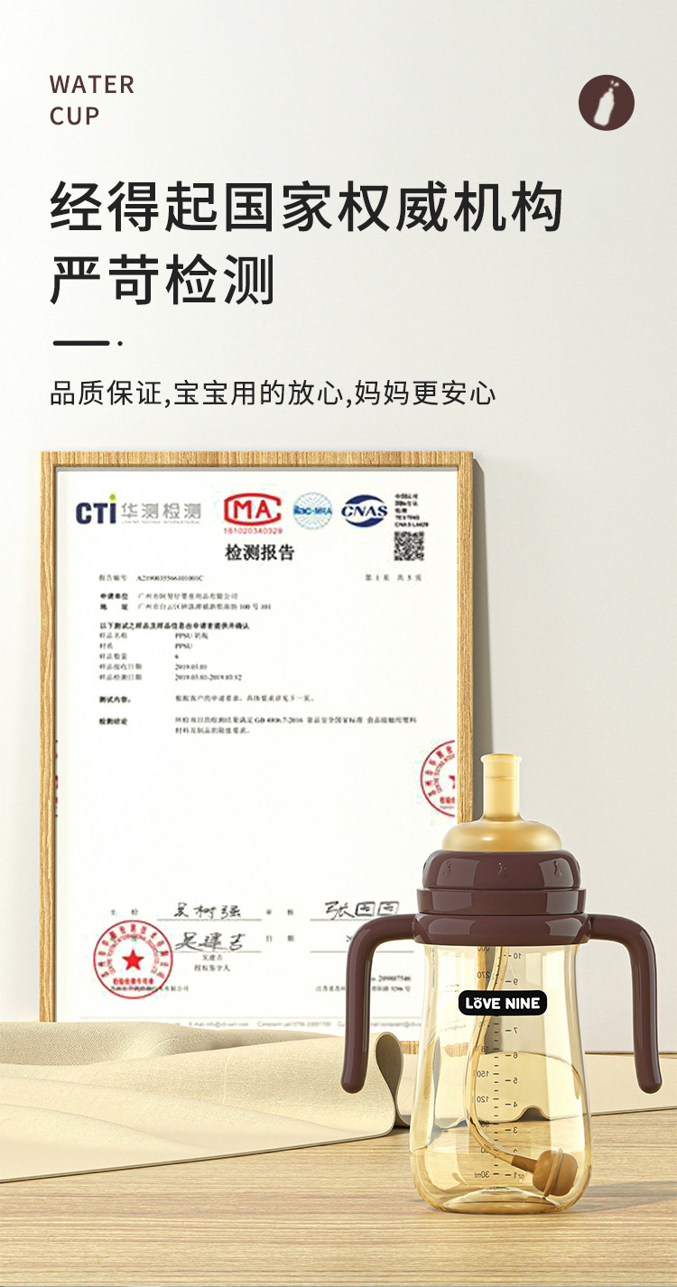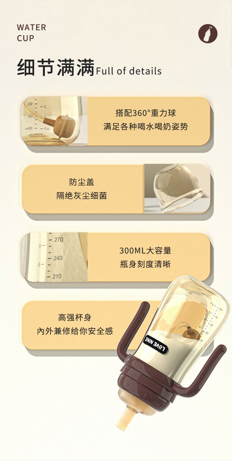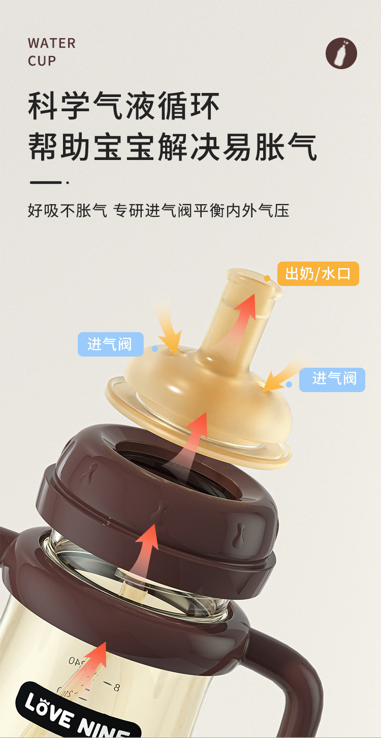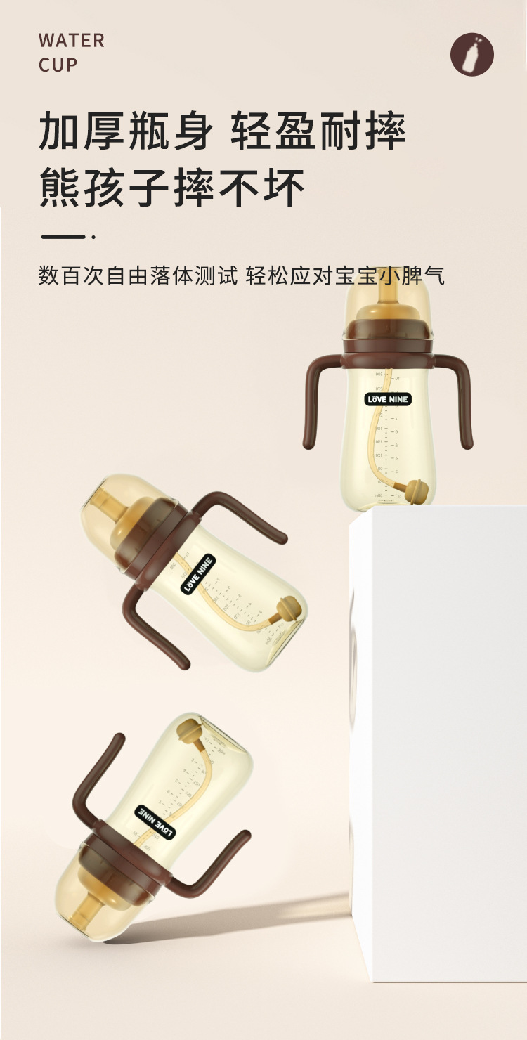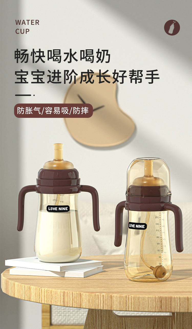 宝宝奶瓶一岁以上吸管杯儿童喝奶防胀气防吐带手柄防摔学饮喝水杯