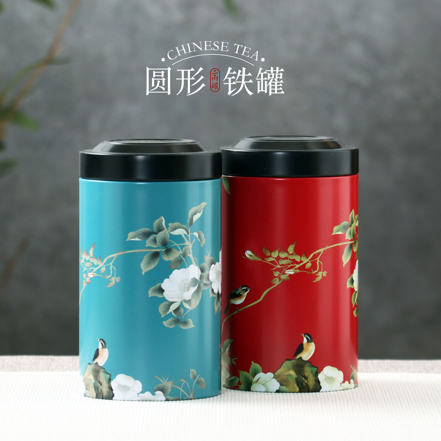 新款100克国潮风茶叶罐铁罐中式密封马口铁罐红茶绿茶二两金属罐