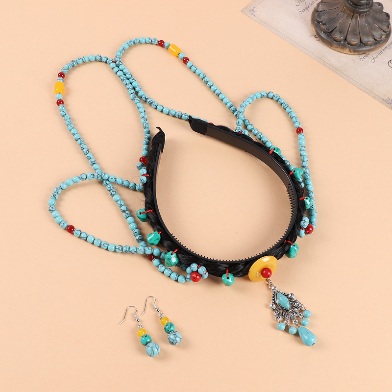 藏式民族风发箍头饰女额饰眉心坠复古松石流苏耳环西藏异域风发饰