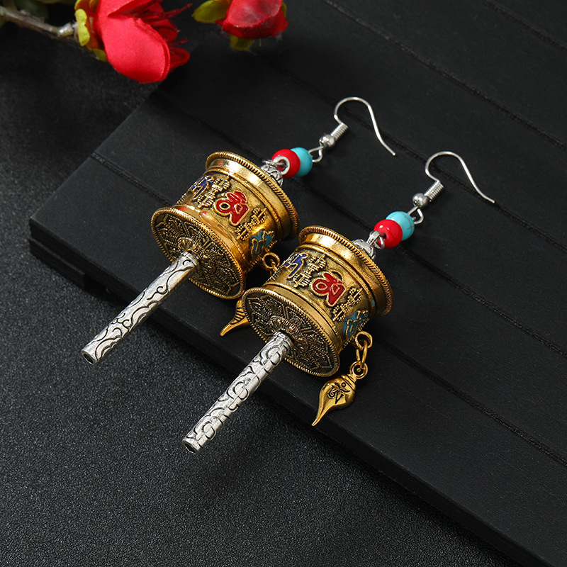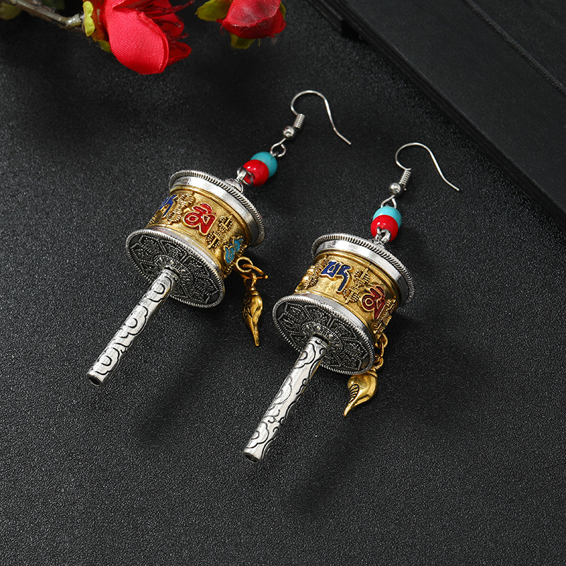 原创可旋转藏式耳环复古个性尼泊尔异域民族风西藏转轮男女耳饰品