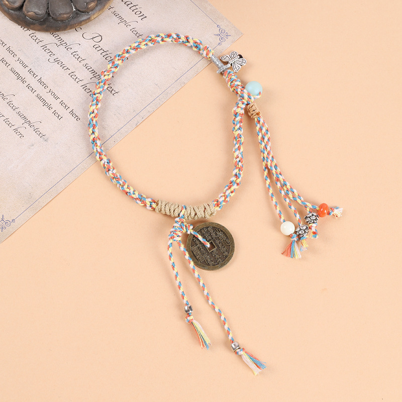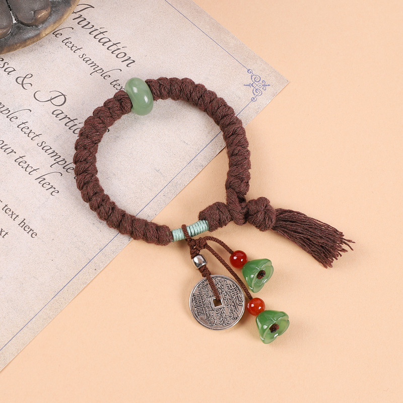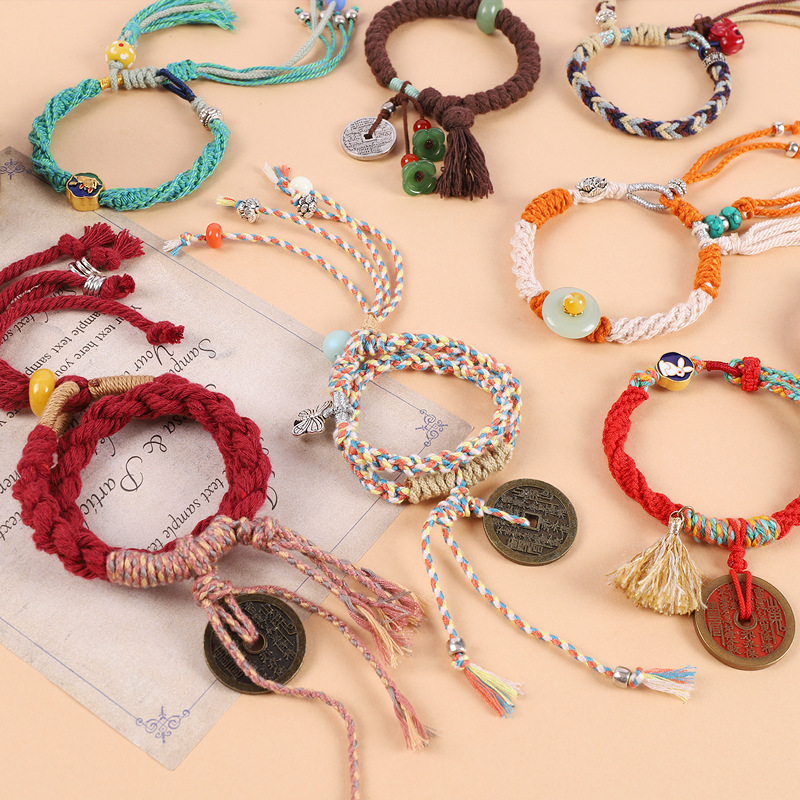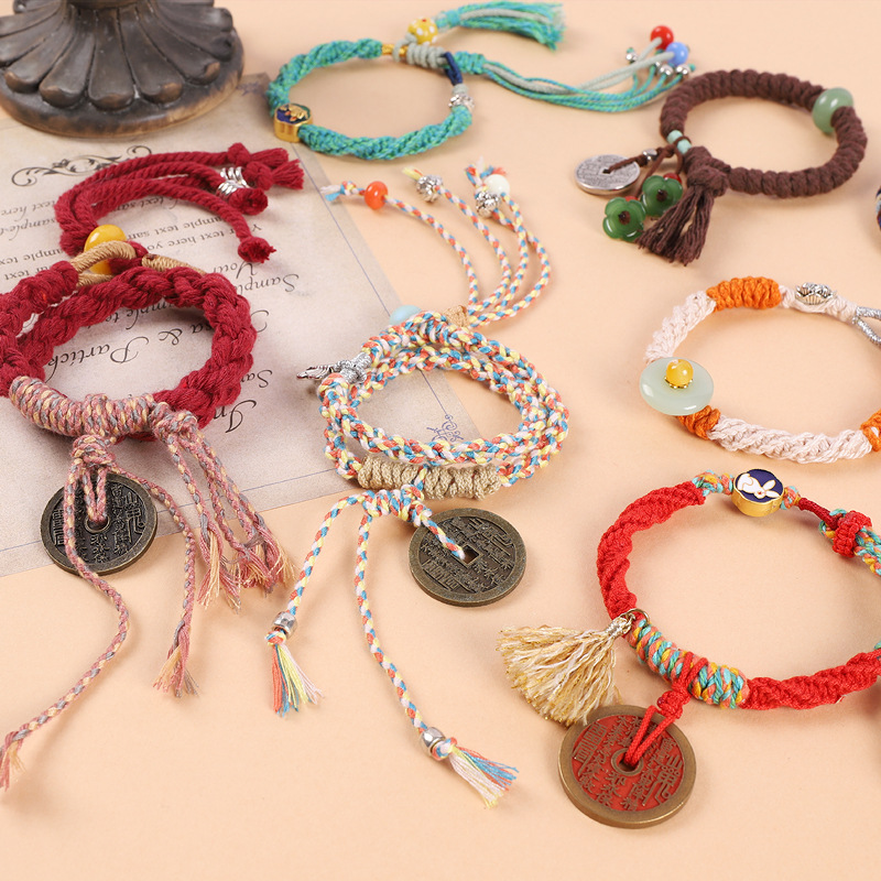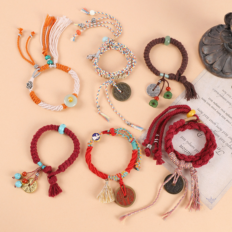 新中式山鬼花钱手链手工编织复古藏式民族风手绳国风手串文玩配饰