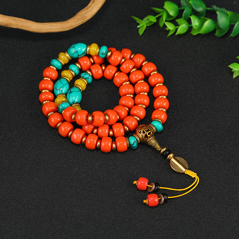 藏式民族风绿松石南红色手串复古手链藏族男女手持文玩佛珠挂饰