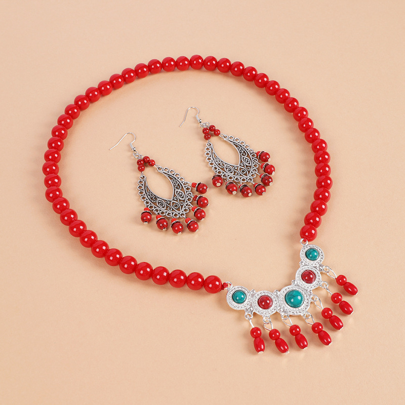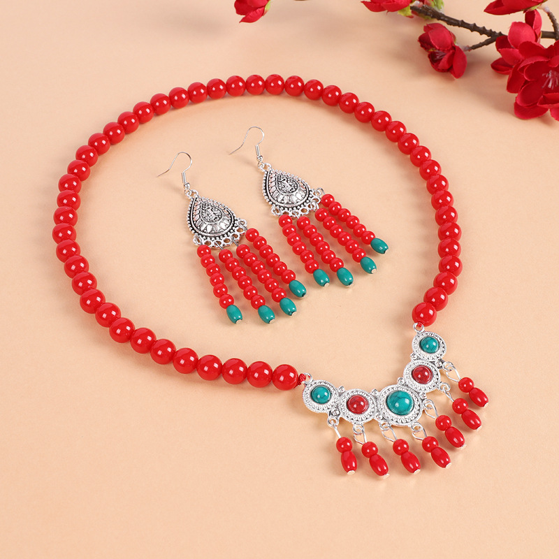 少数民族风红色流苏额头链异域风情额饰眉心坠复古耳环女藏式头饰