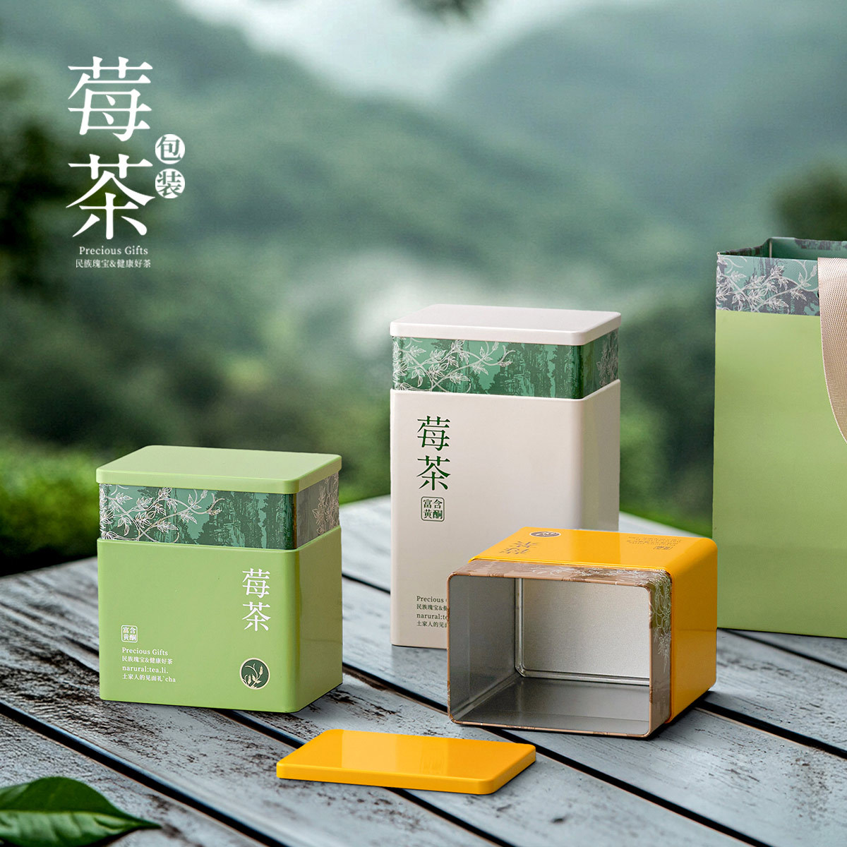 盒境霉茶藤茶50g100g空铁罐方形送礼现货马口铁茶叶罐