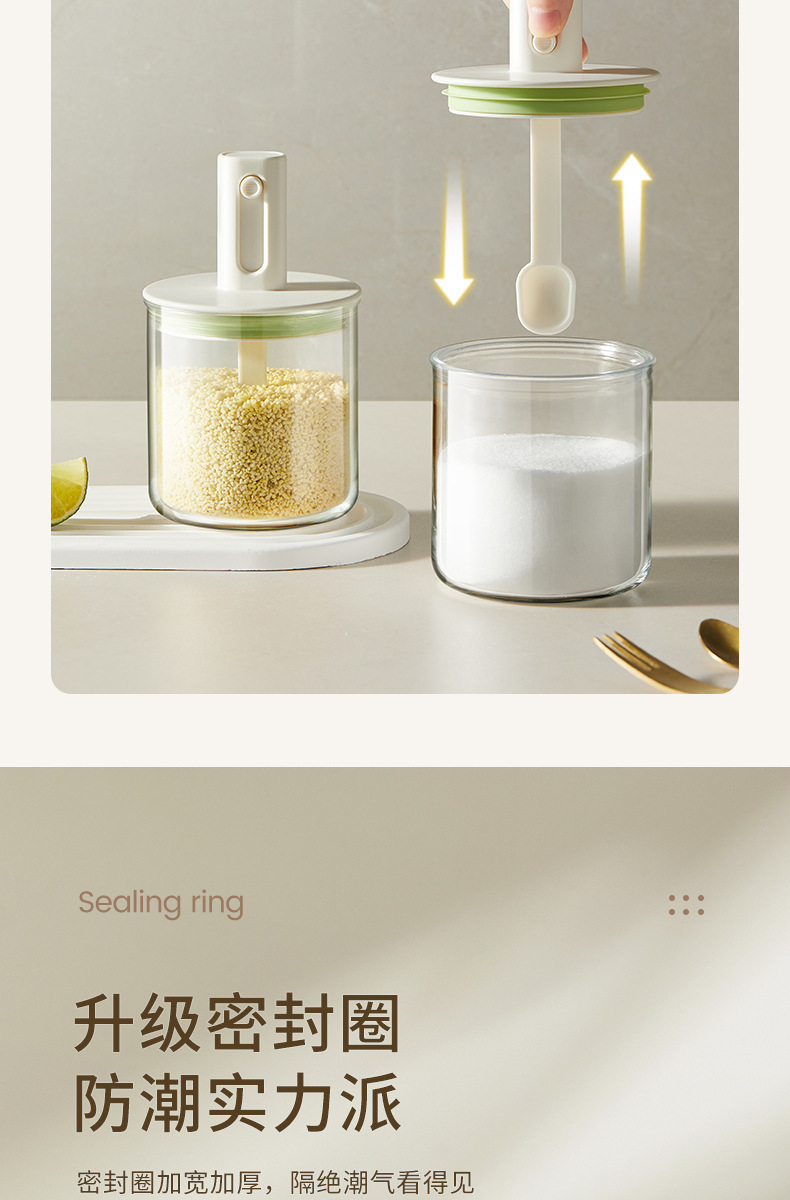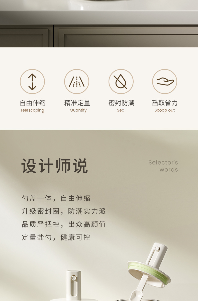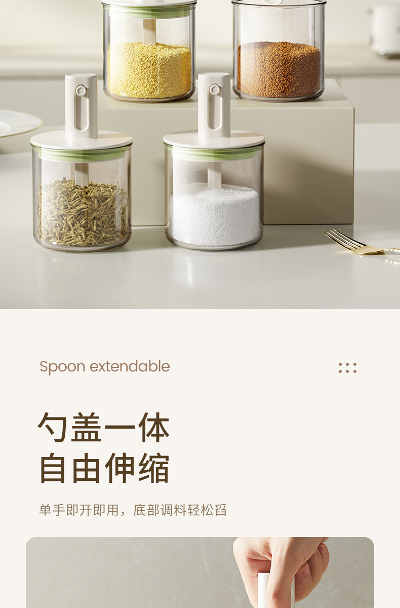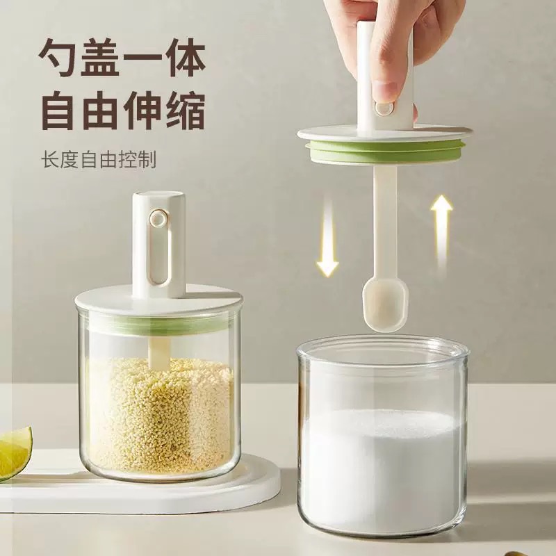 伸缩调料罐厨房家用勺盖一体盐罐密封防潮调料收纳盒大容量调味罐