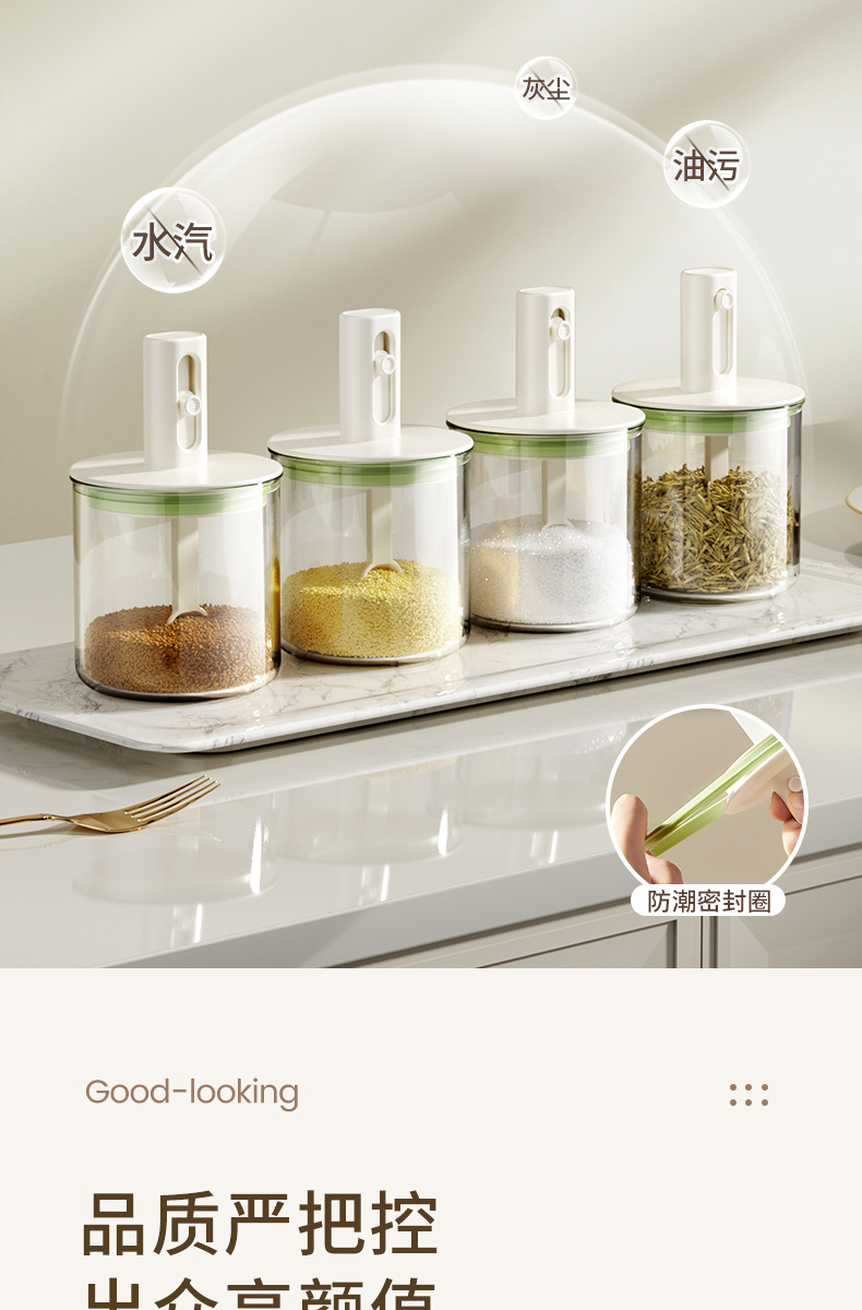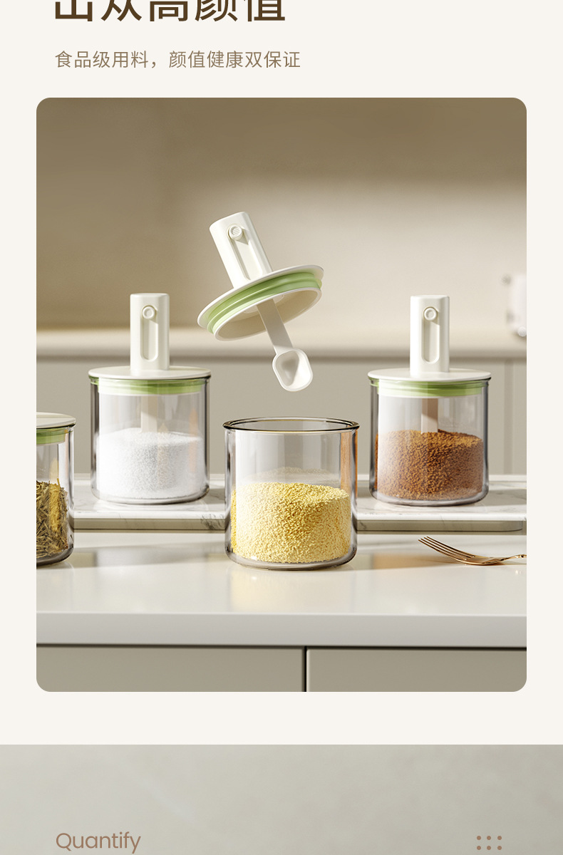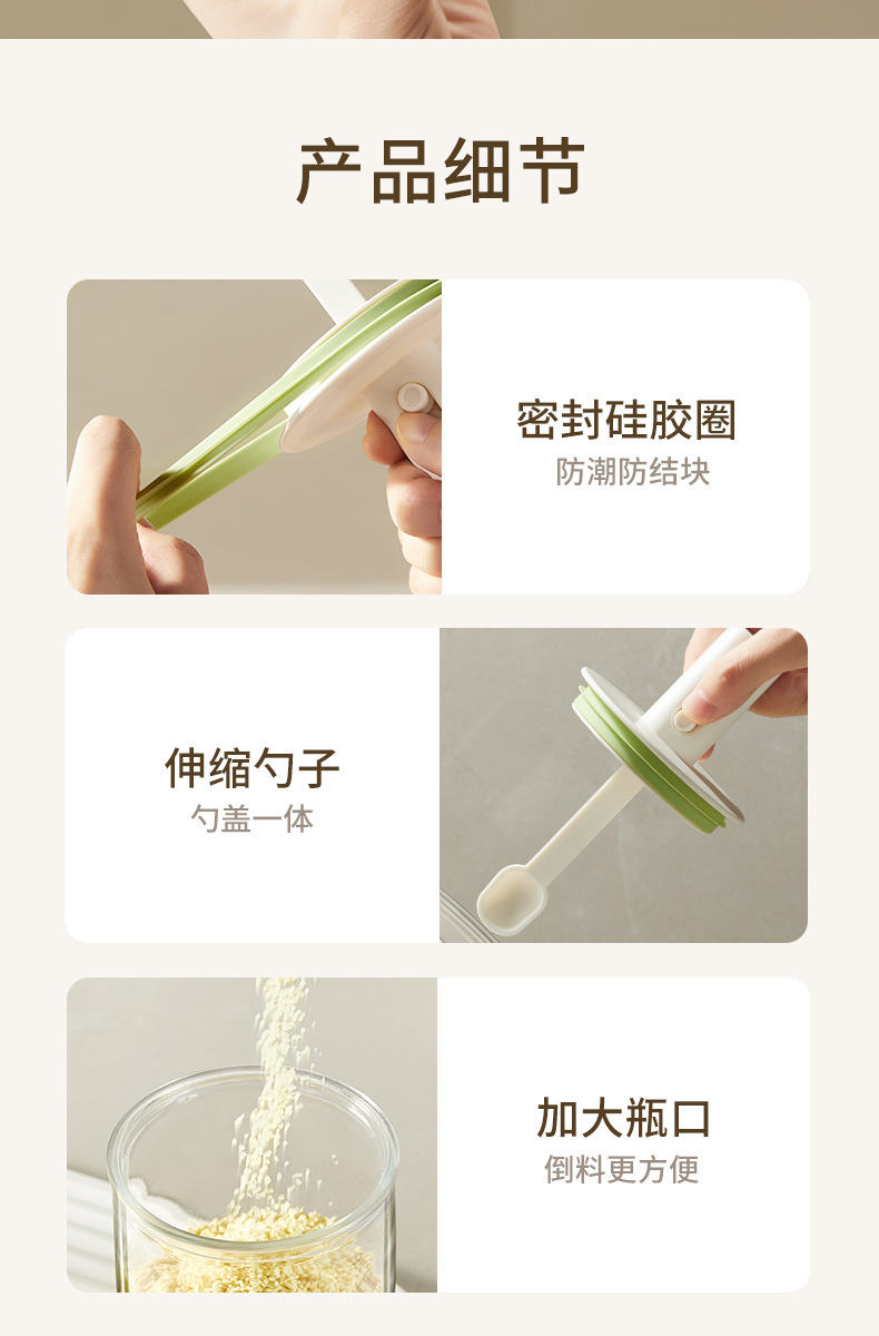 伸缩调料罐厨房家用勺盖一体盐罐密封防潮调料收纳盒大容量调味罐