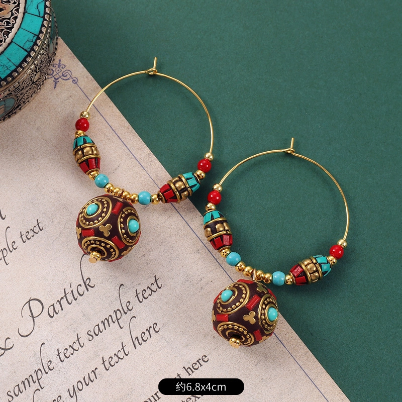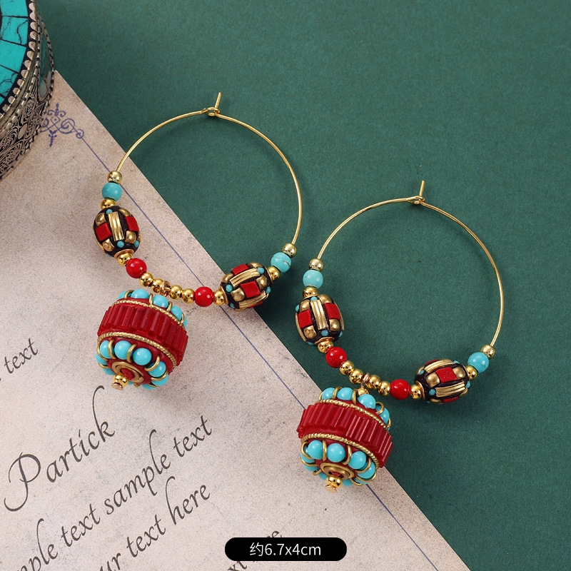原创民族风耳圈藏式尼泊尔耳环小众个性大圈耳坠西藏异域风耳饰女