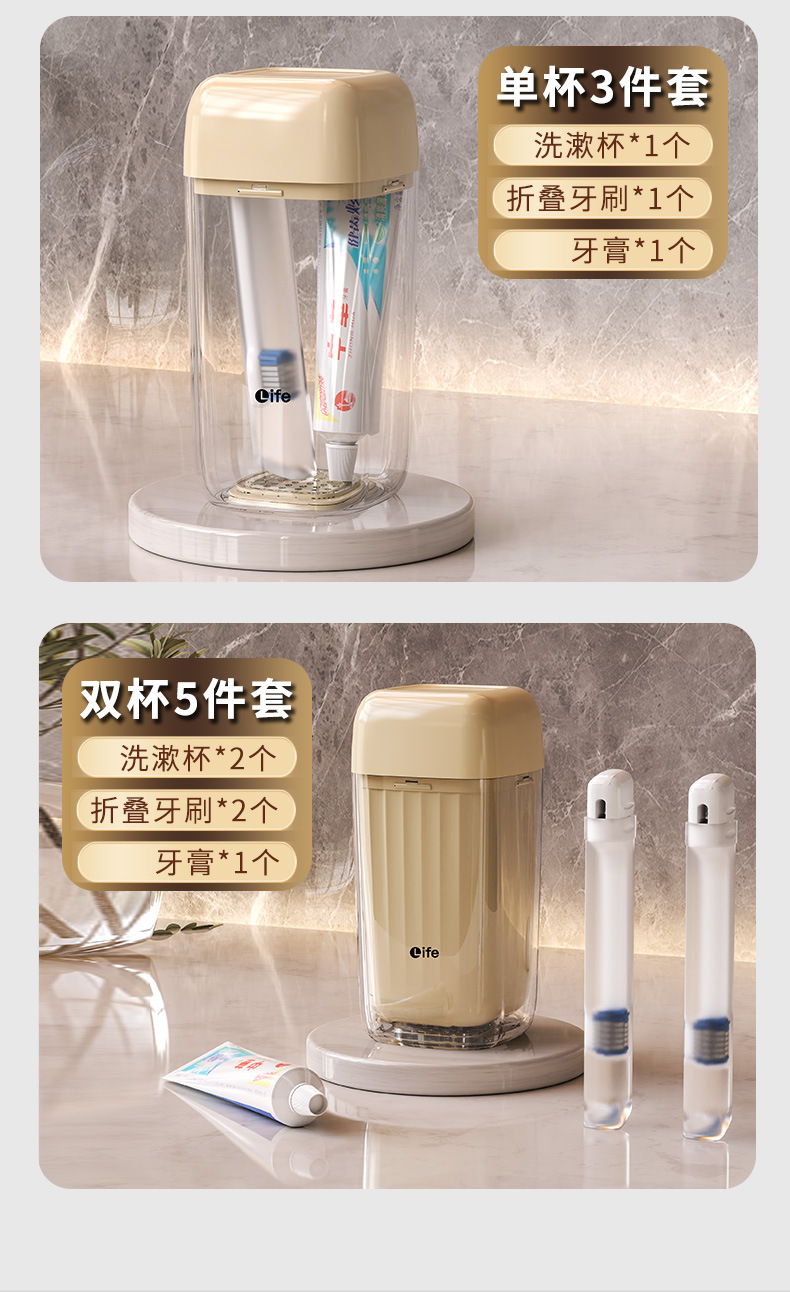 便携式迷你旅行洗漱套装牙刷牙膏三合一旅行漱口杯可爱情侣刷牙杯