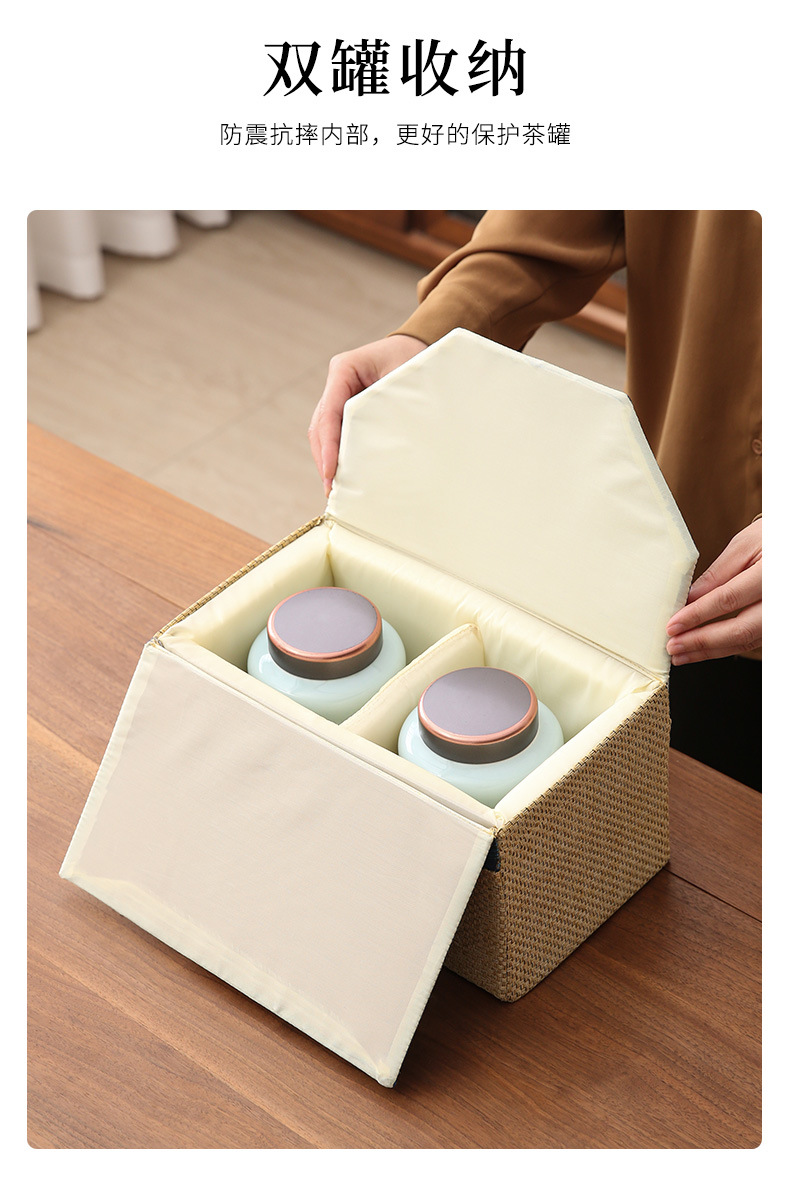 复古藤编茶叶罐单罐双罐空礼盒包装礼品盒通用大气收纳盒厂家直供