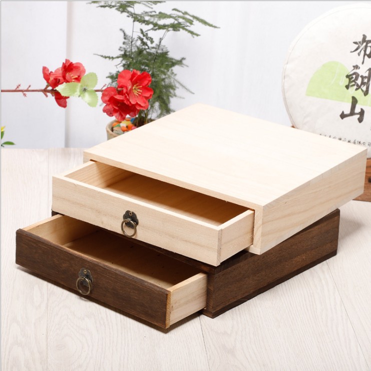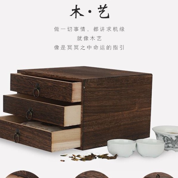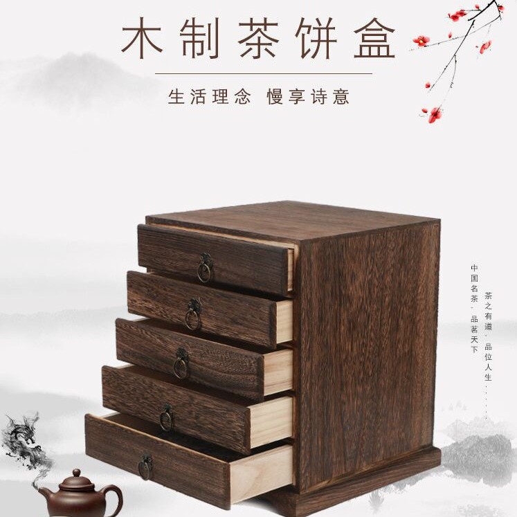 高档茶叶盒复古茶柜实木烧桐木质普洱茶木盒 多层抽屉式茶饼礼盒