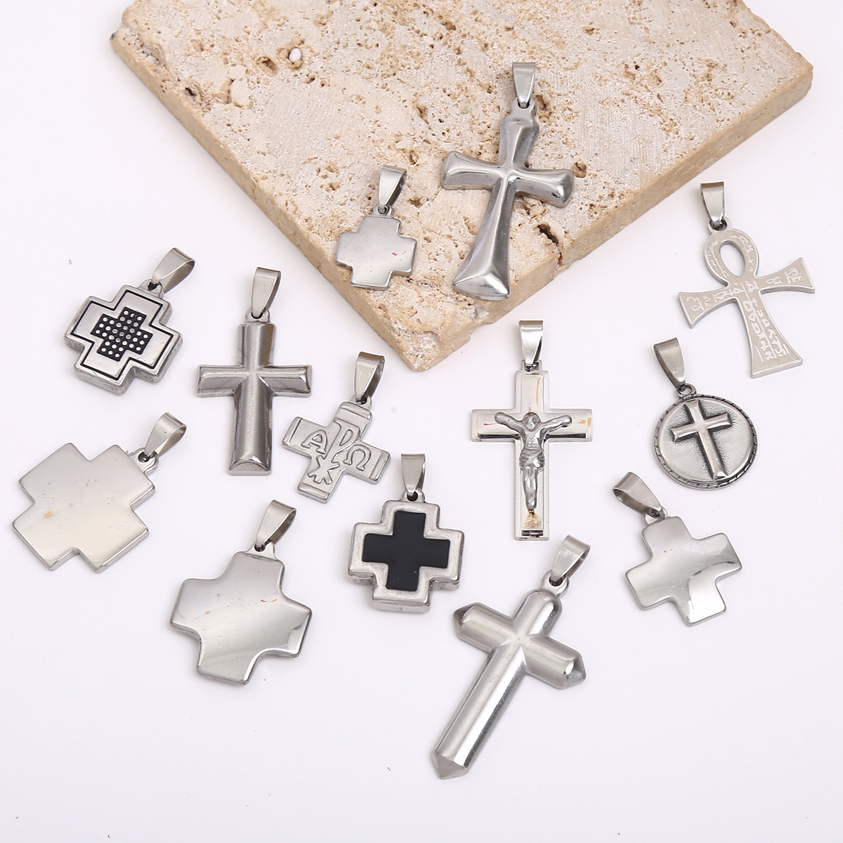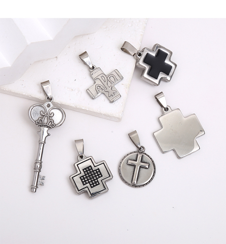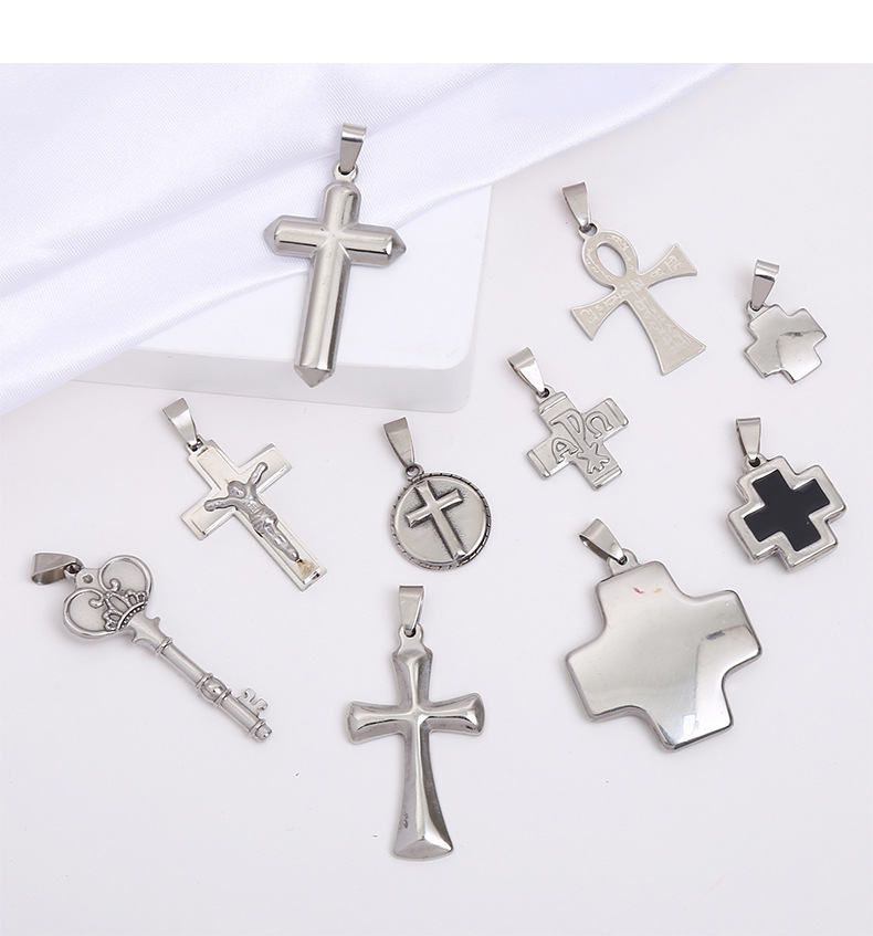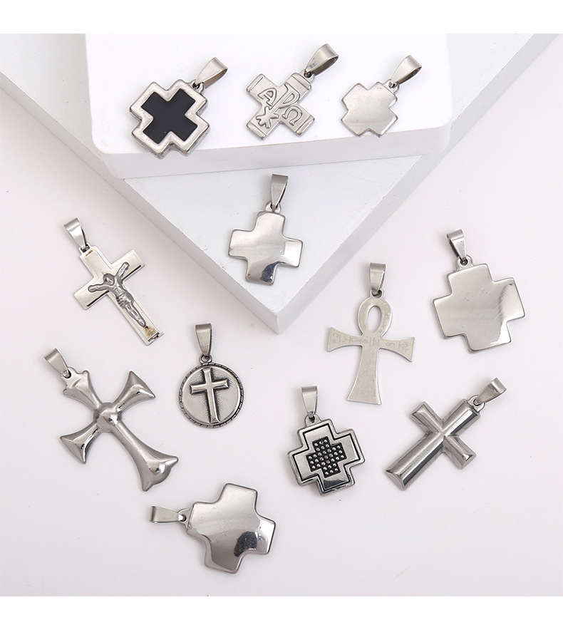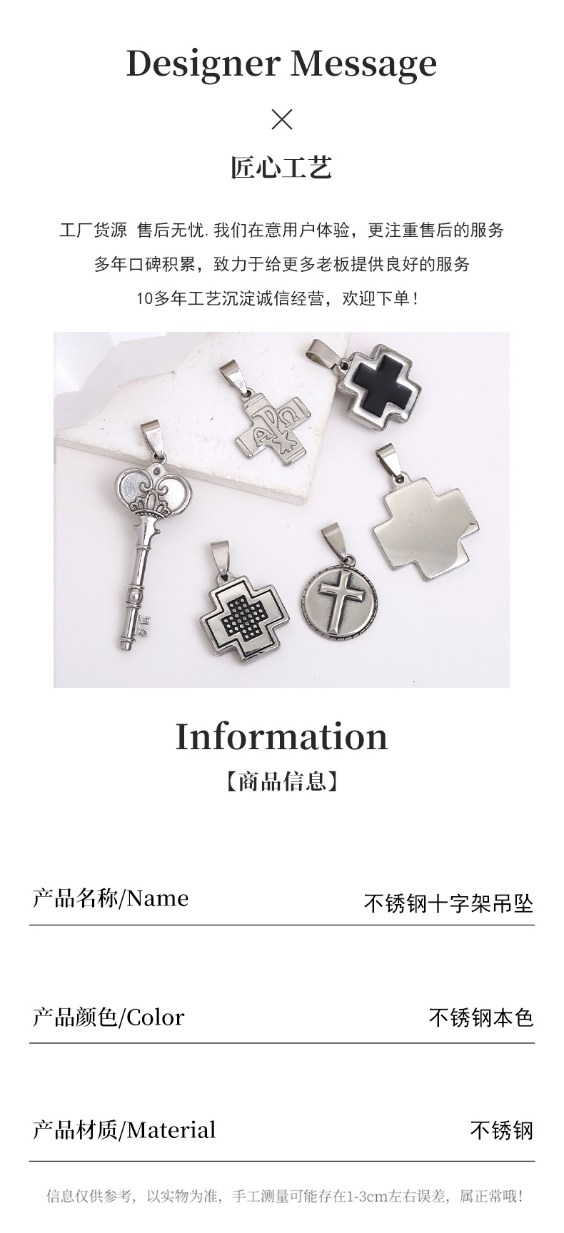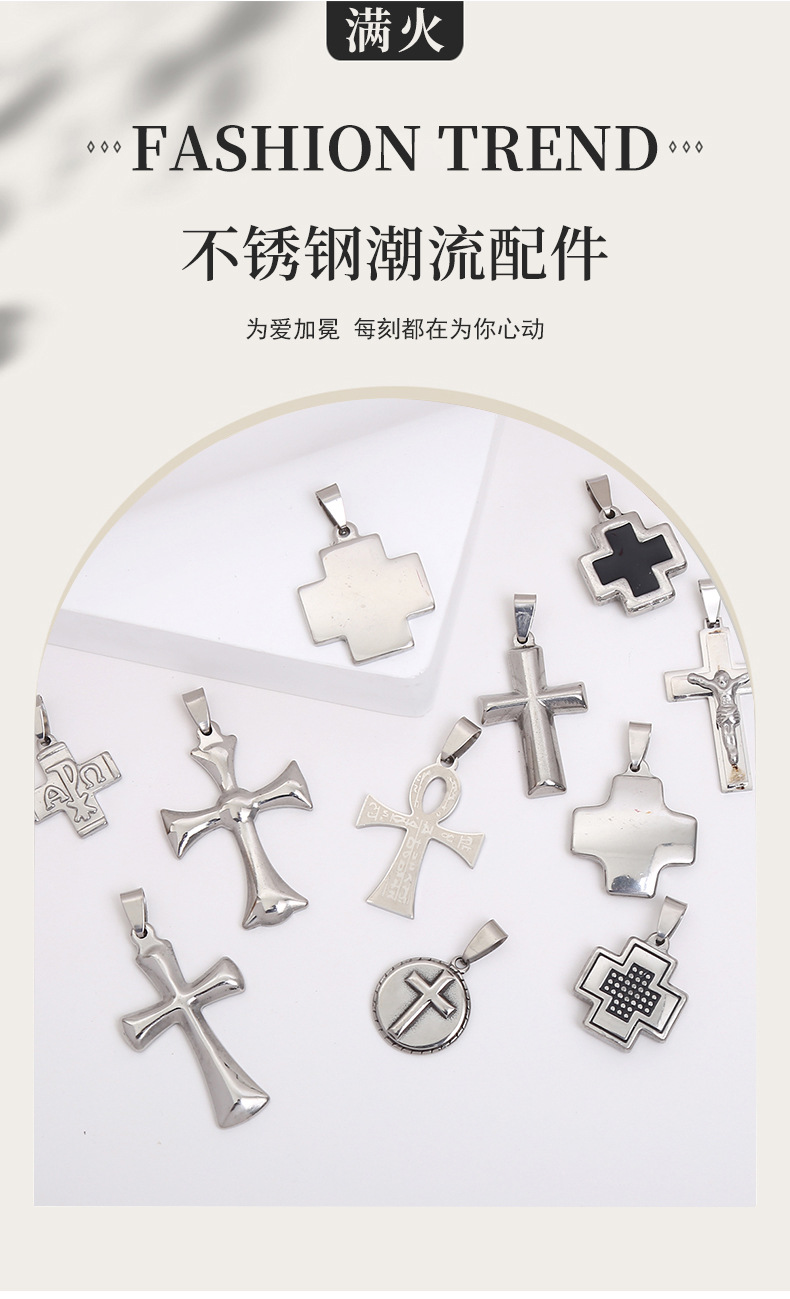 批发简约饰品配件时尚亚马逊ins欧美复古十字架不锈钢电镀男吊坠