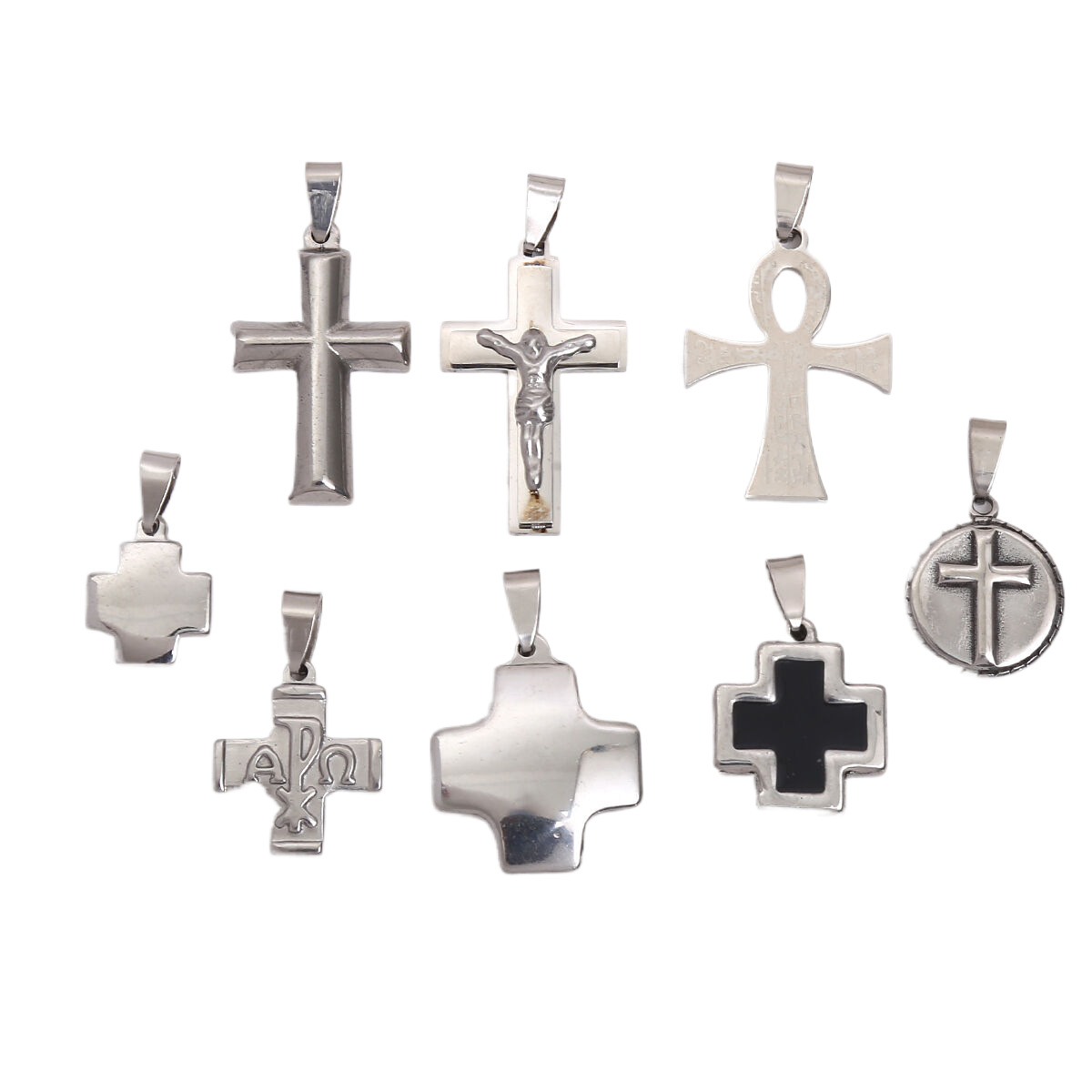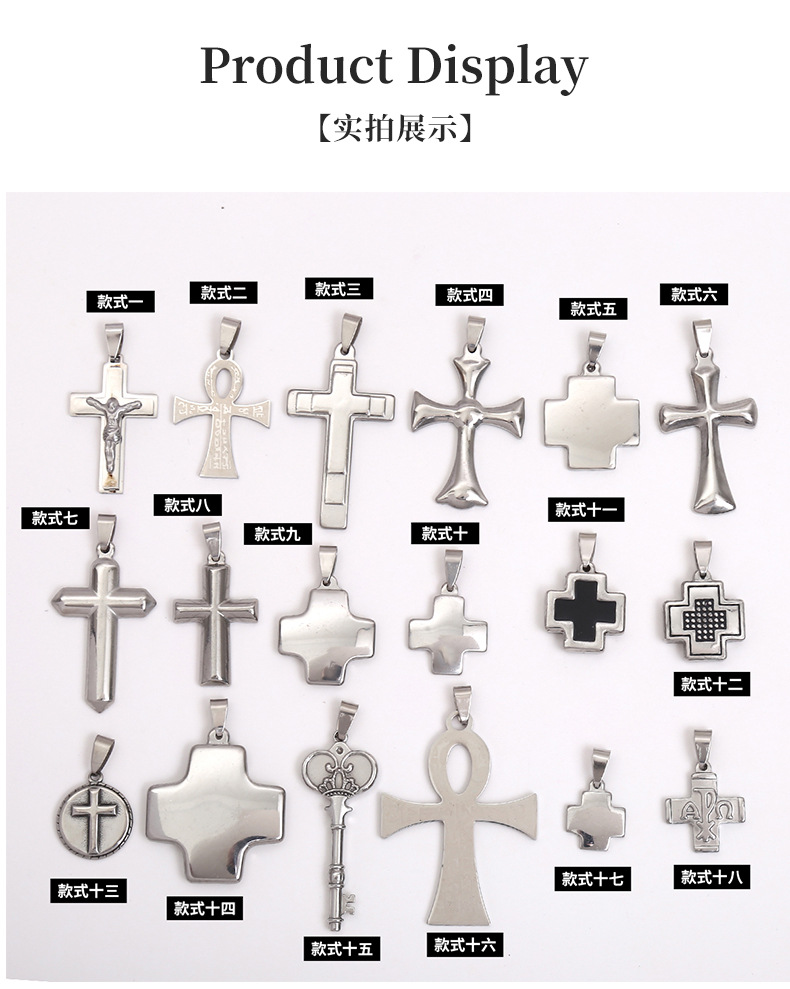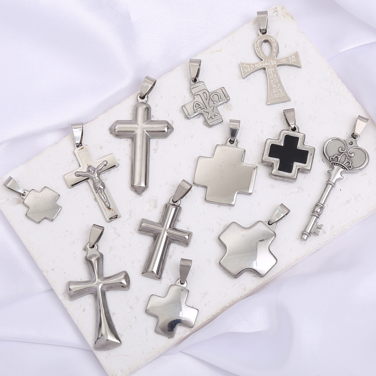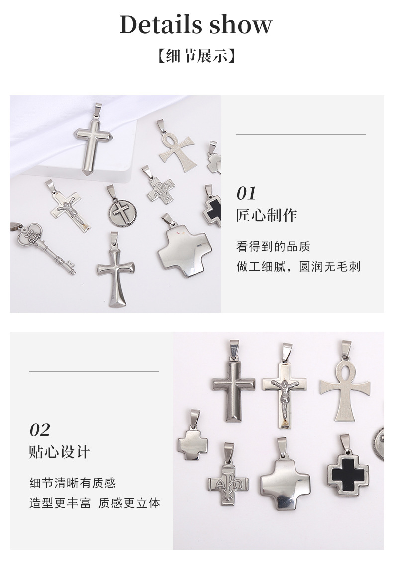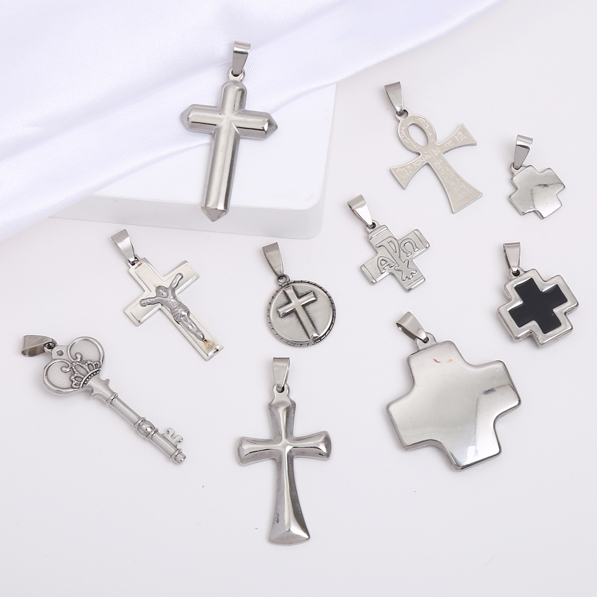 批发简约饰品配件时尚亚马逊ins欧美复古十字架不锈钢电镀男吊坠