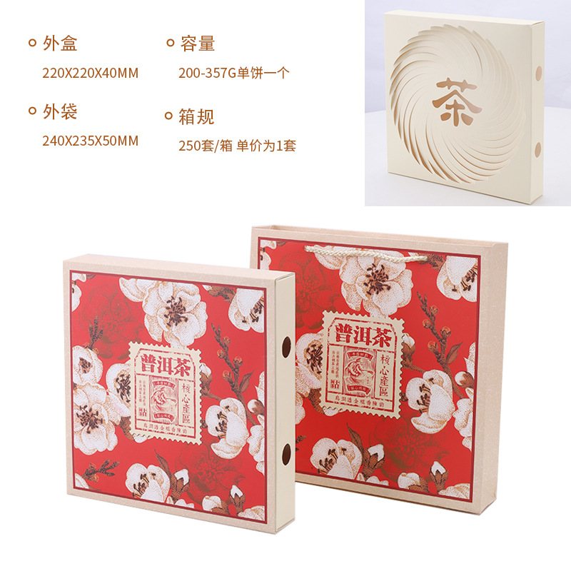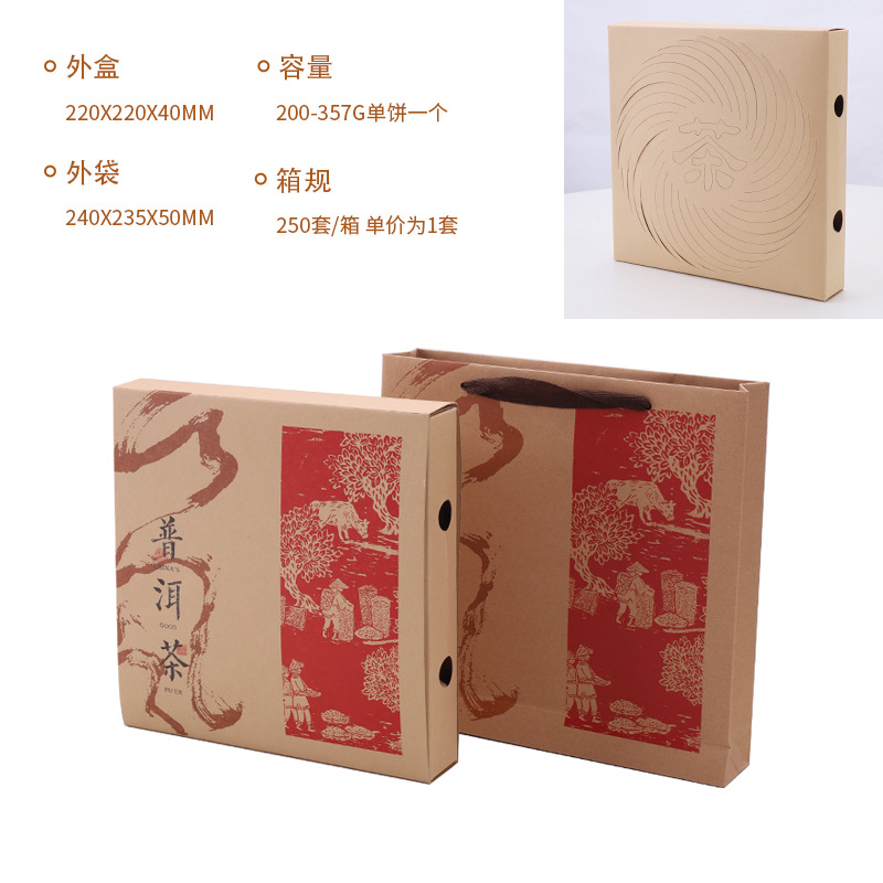 普洱茶礼盒空盒包装简易纸盒茶饼盒收纳盒357g普洱包装盒茶盒批发