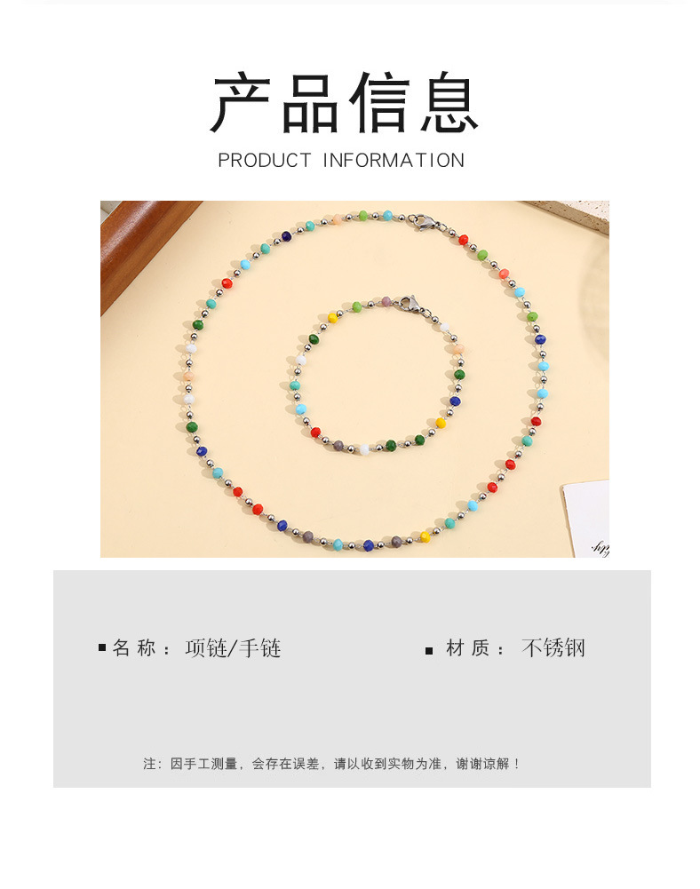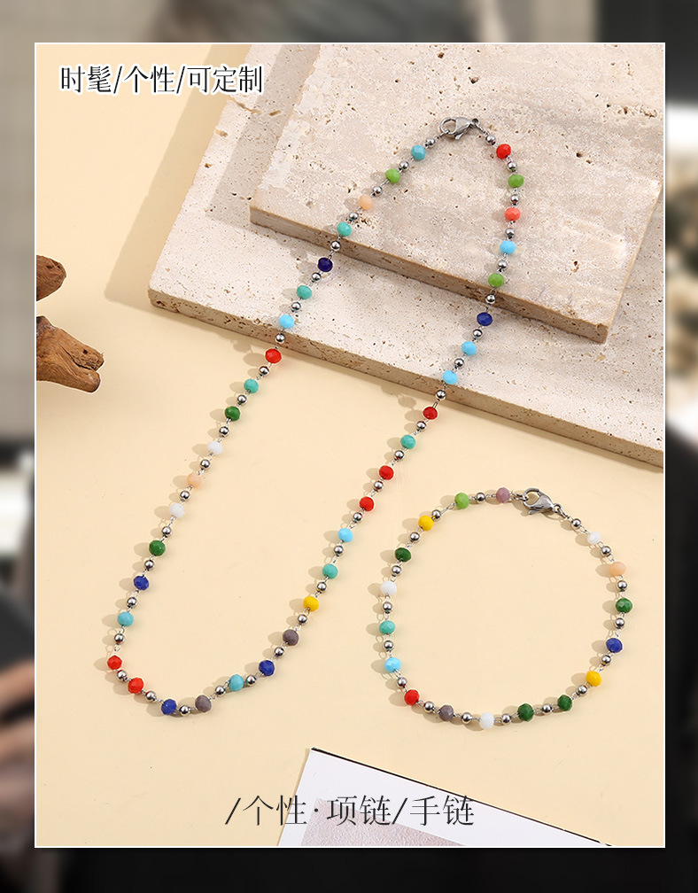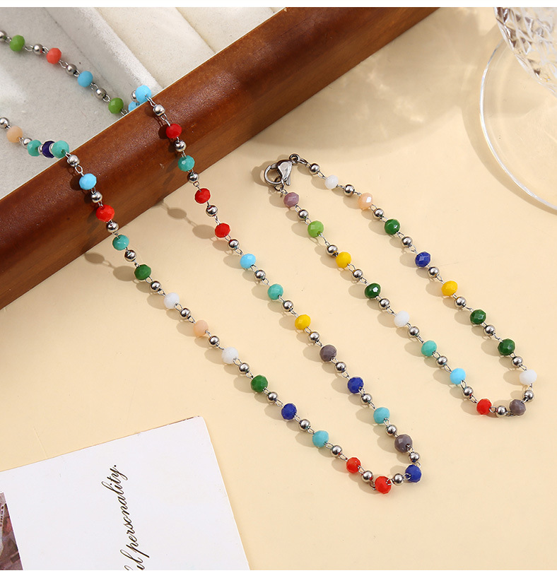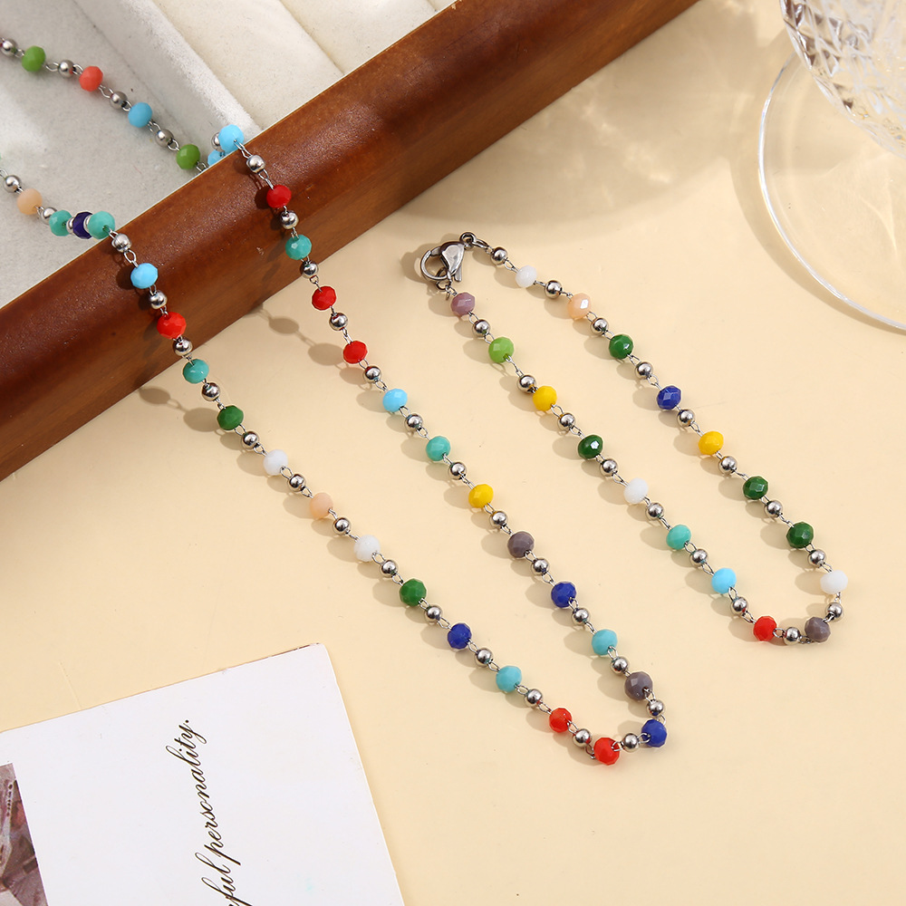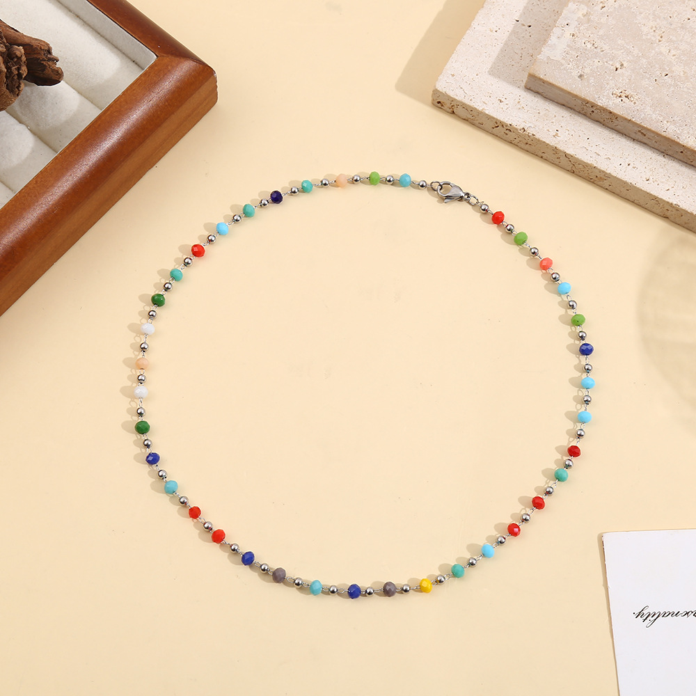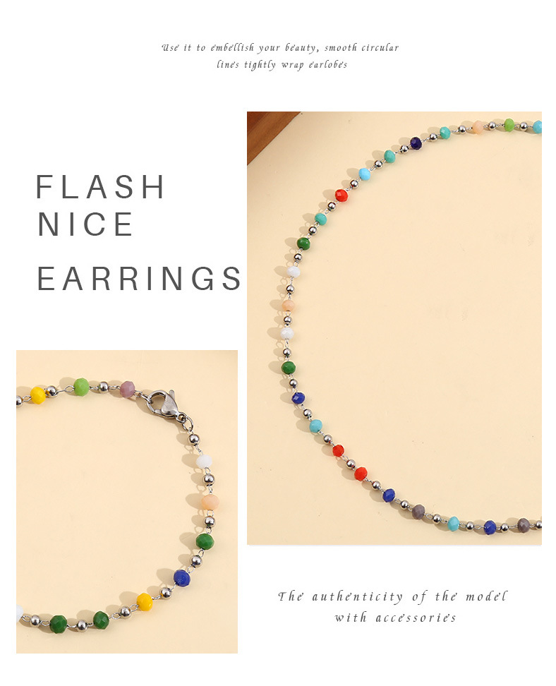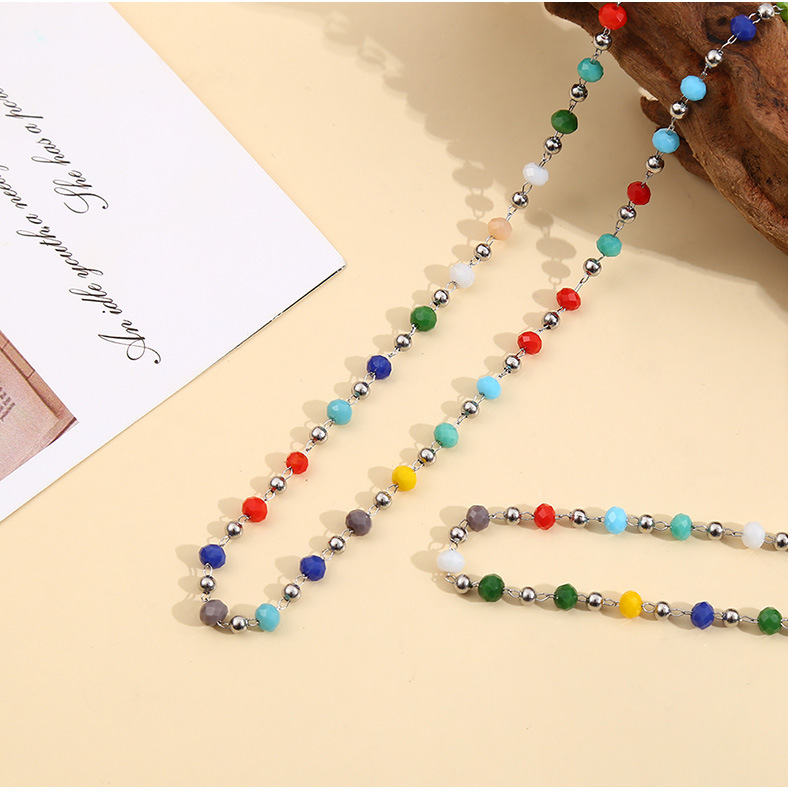 不锈钢彩色串珠水晶链条 夹珠链 手工混色项链手链d iy饰品批发