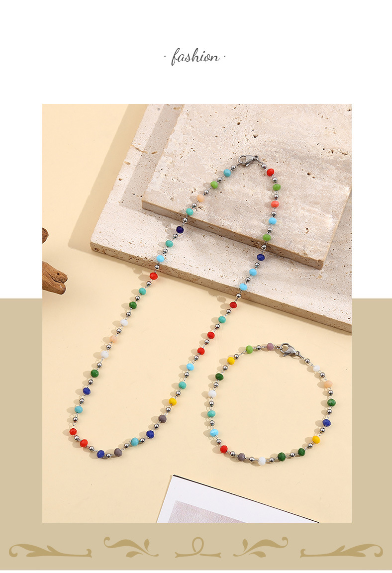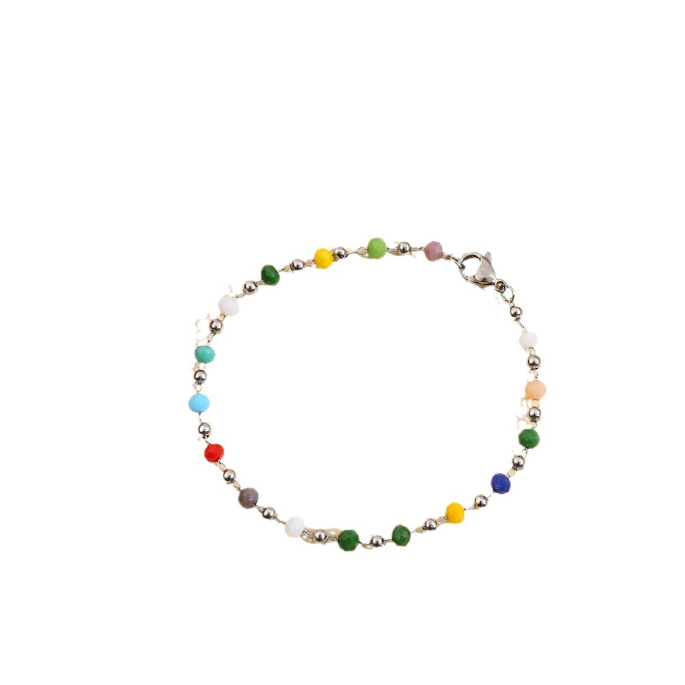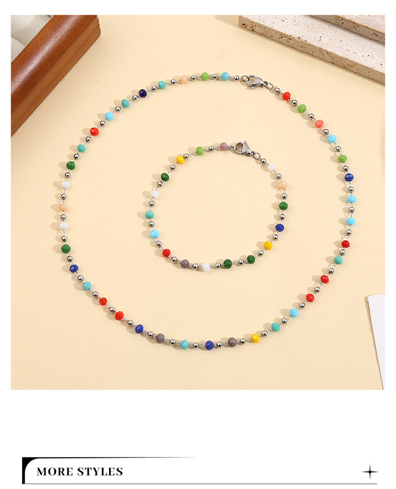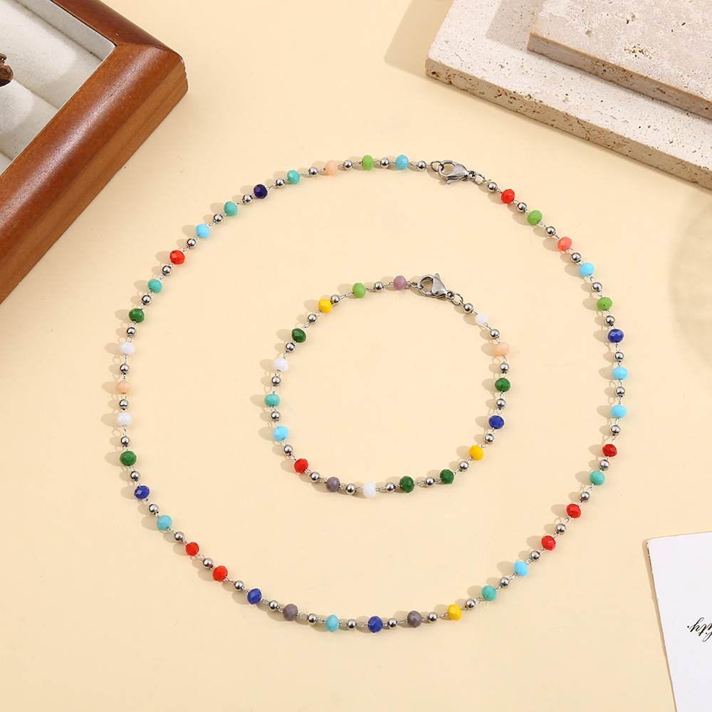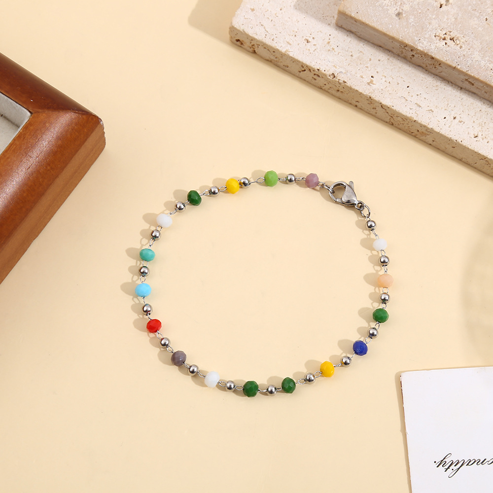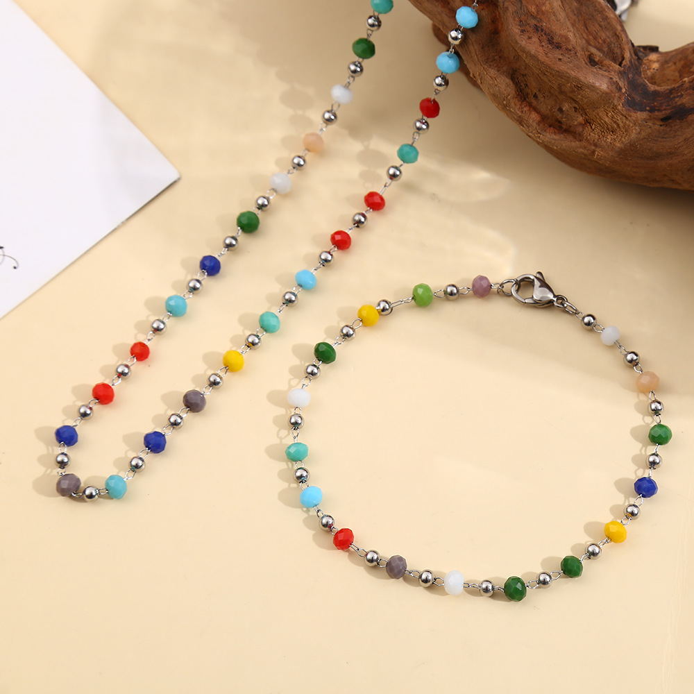 不锈钢彩色串珠水晶链条 夹珠链 手工混色项链手链d iy饰品批发