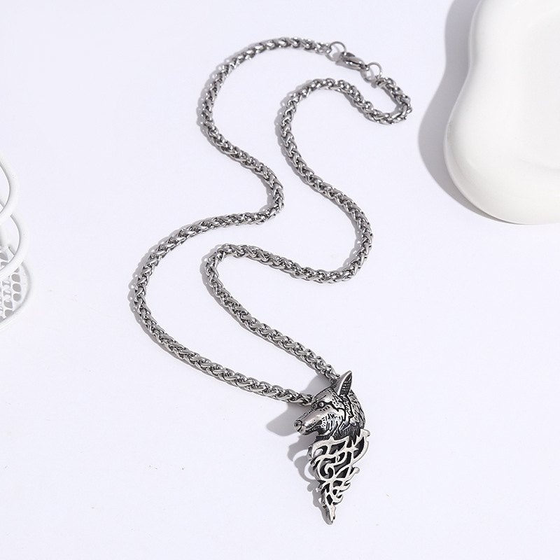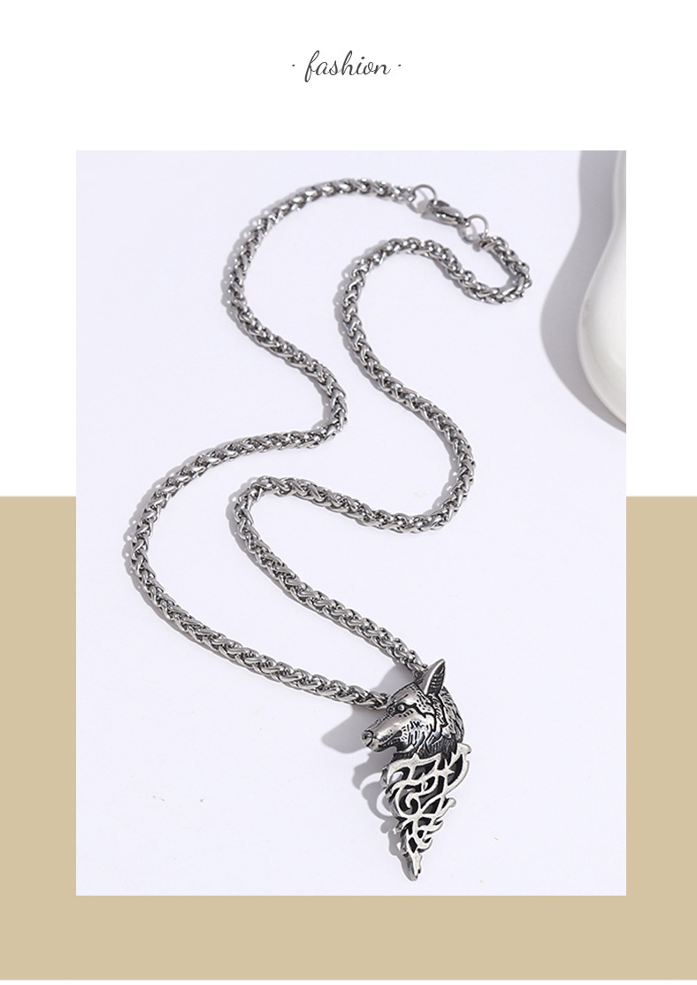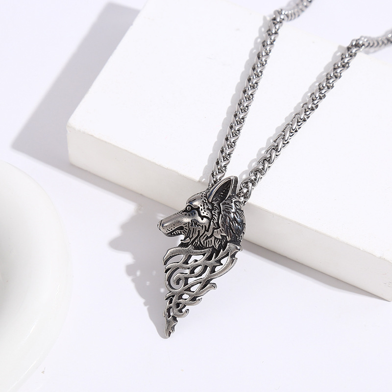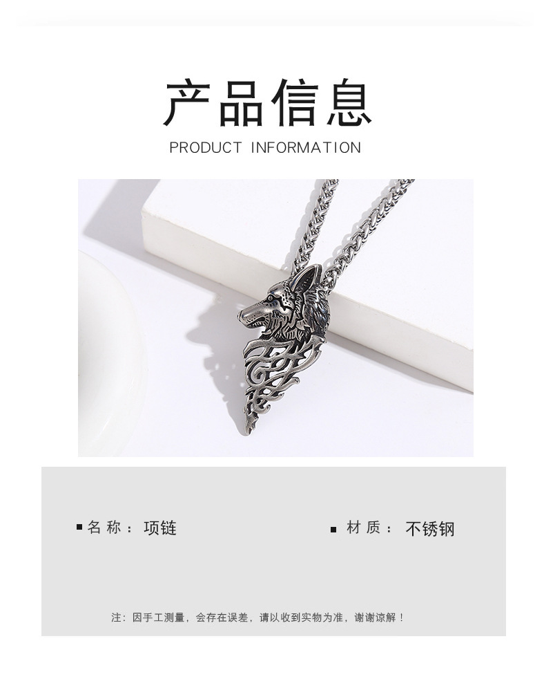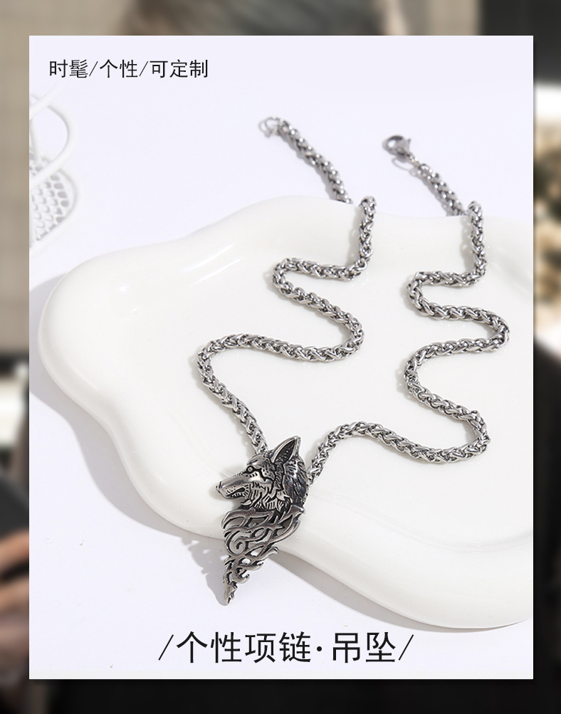 欧美复古霸气狼头项链 原创时尚个性金属动物毛衣链项饰