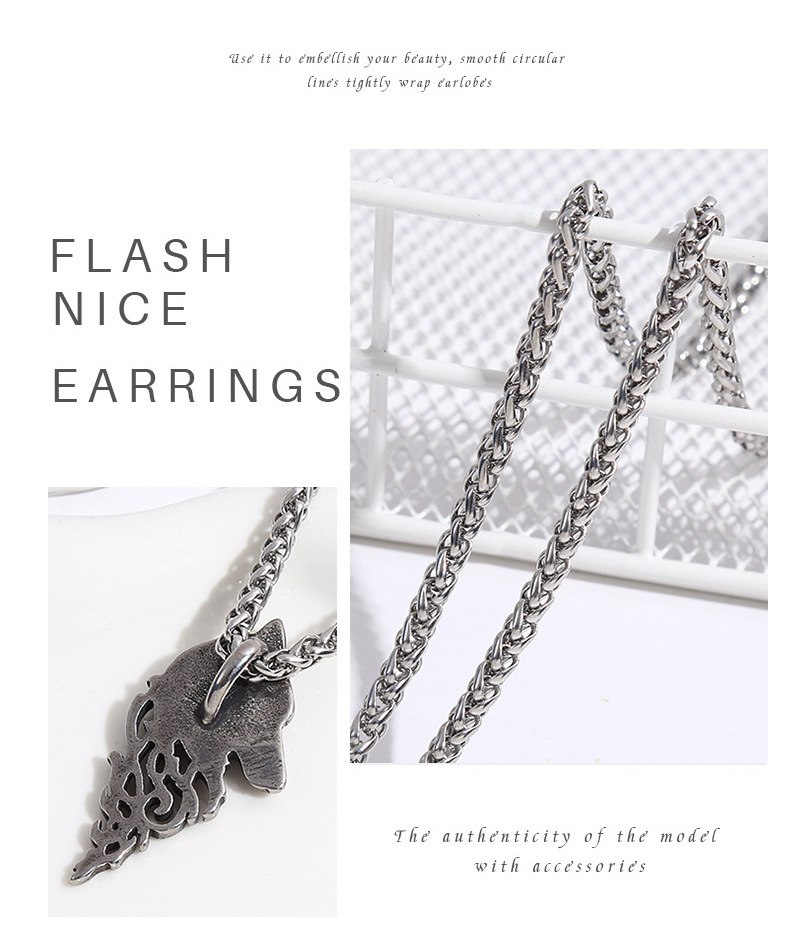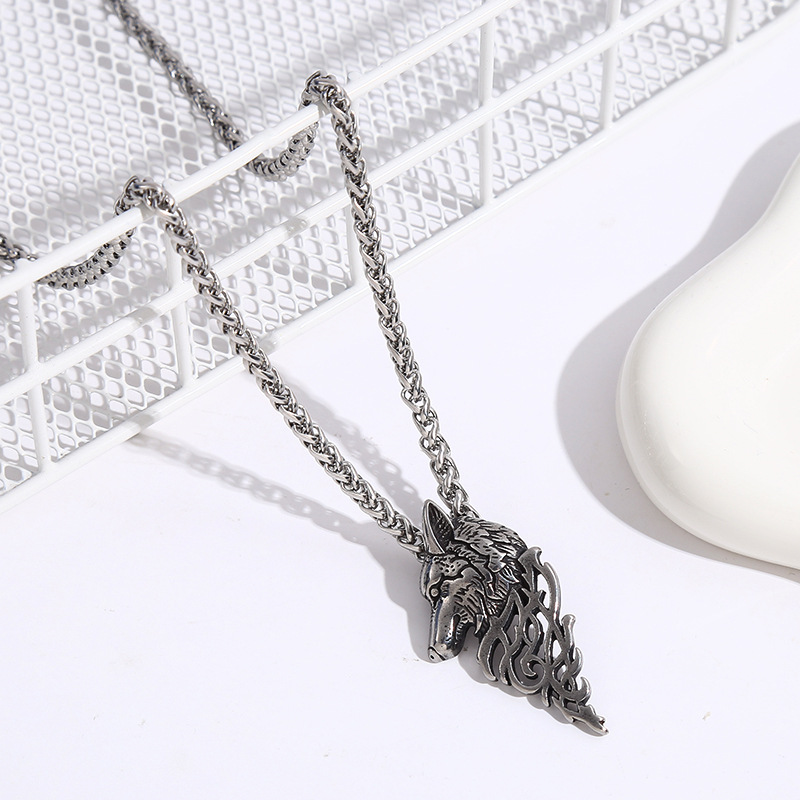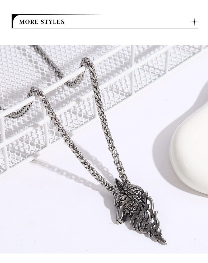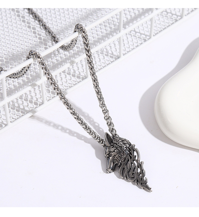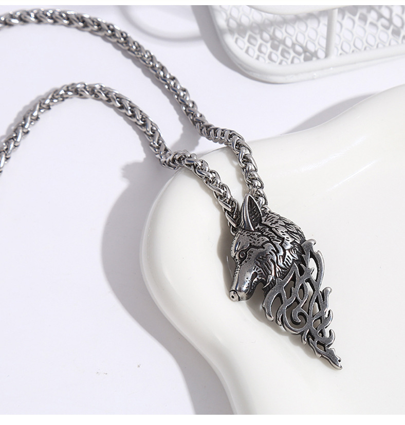 欧美复古霸气狼头项链 原创时尚个性金属动物毛衣链项饰