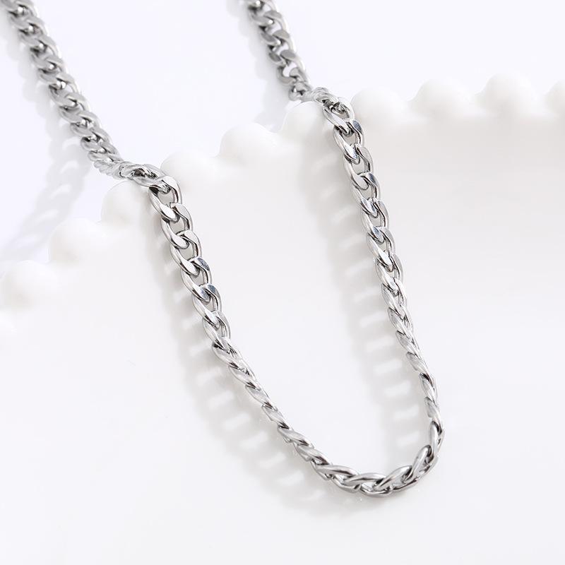 时尚百搭银色极简项链 百搭不锈钢项链 无性别风钛钢项链现货批发