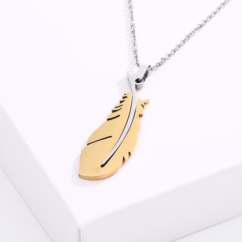 个性小众羽毛设计项链 金银双色羽毛饰品项链 男女百搭项链现货