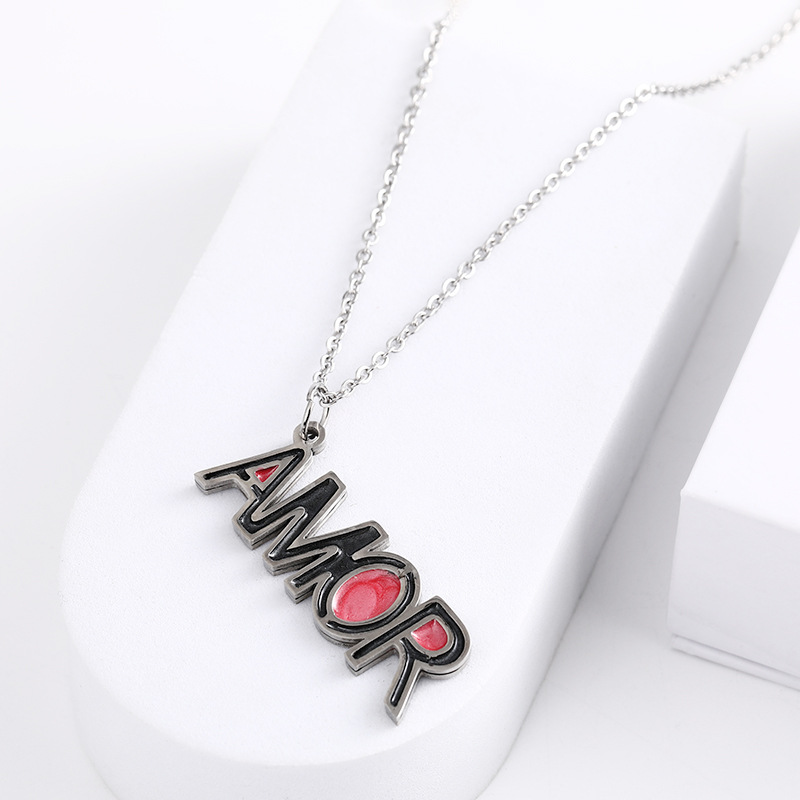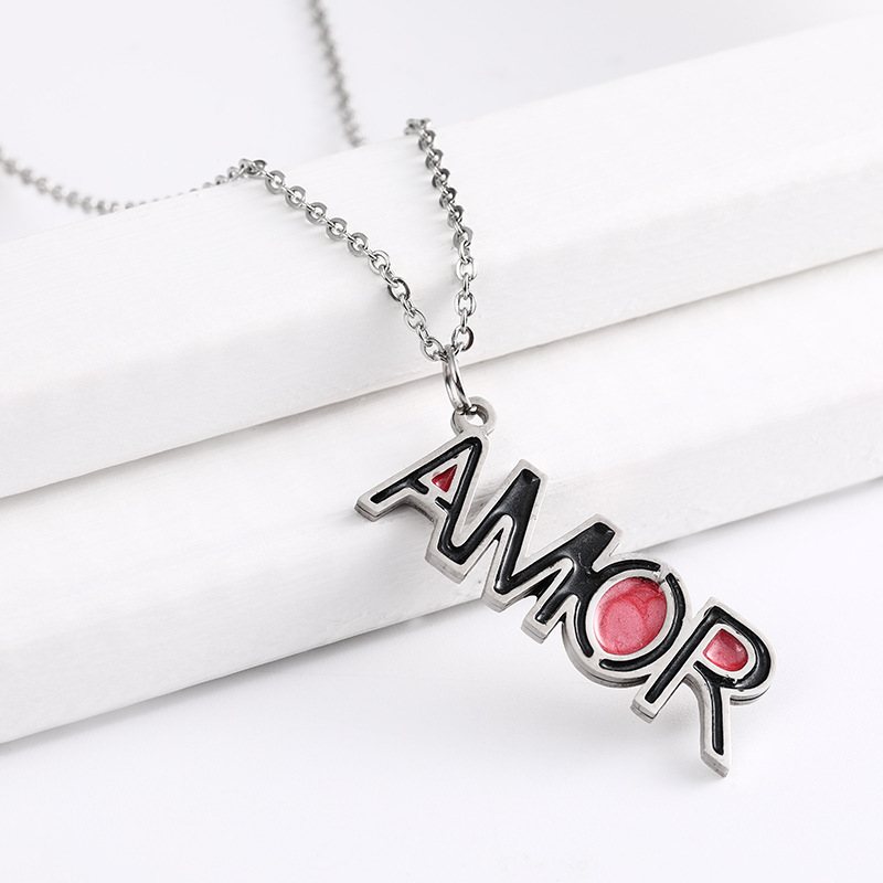 个性AMOR锁骨项链 不锈钢极简字母项链 双色AMOR项链 首饰饰品