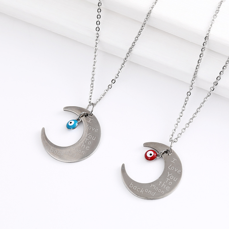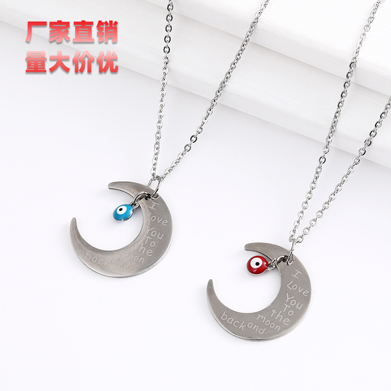 新品不锈月牙项链月牙彩色吊坠时尚饰品复古毛衣链送朋友礼物