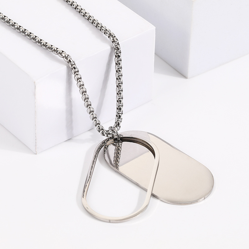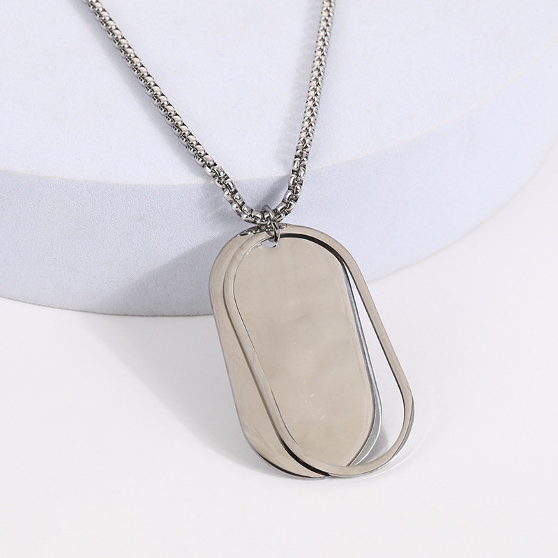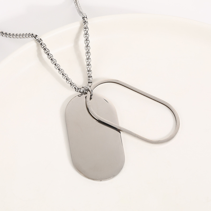 european and american personalized double-layer stainless steel necklace ornament silver pendant titanium steel necklace pendant factory direct supply