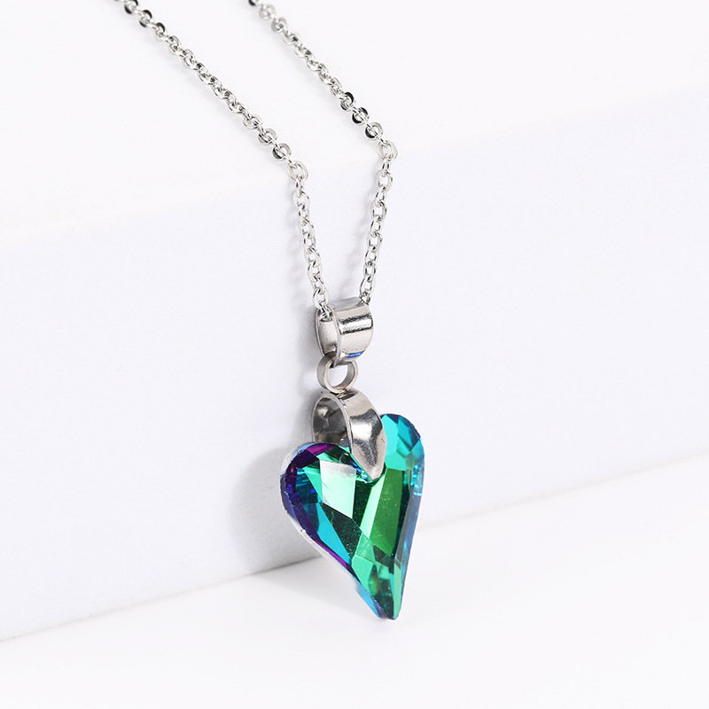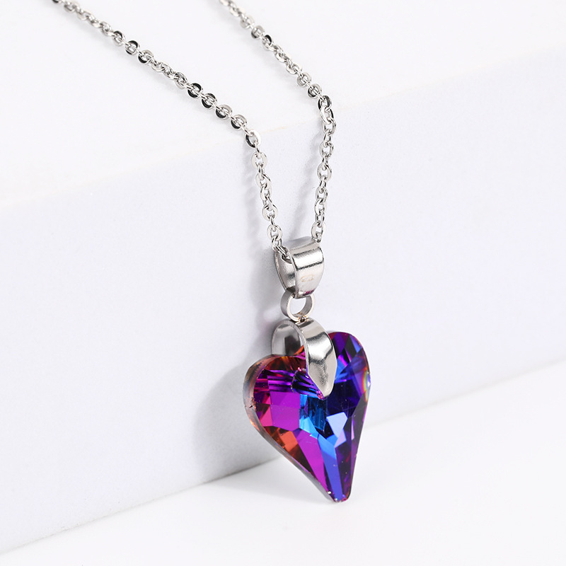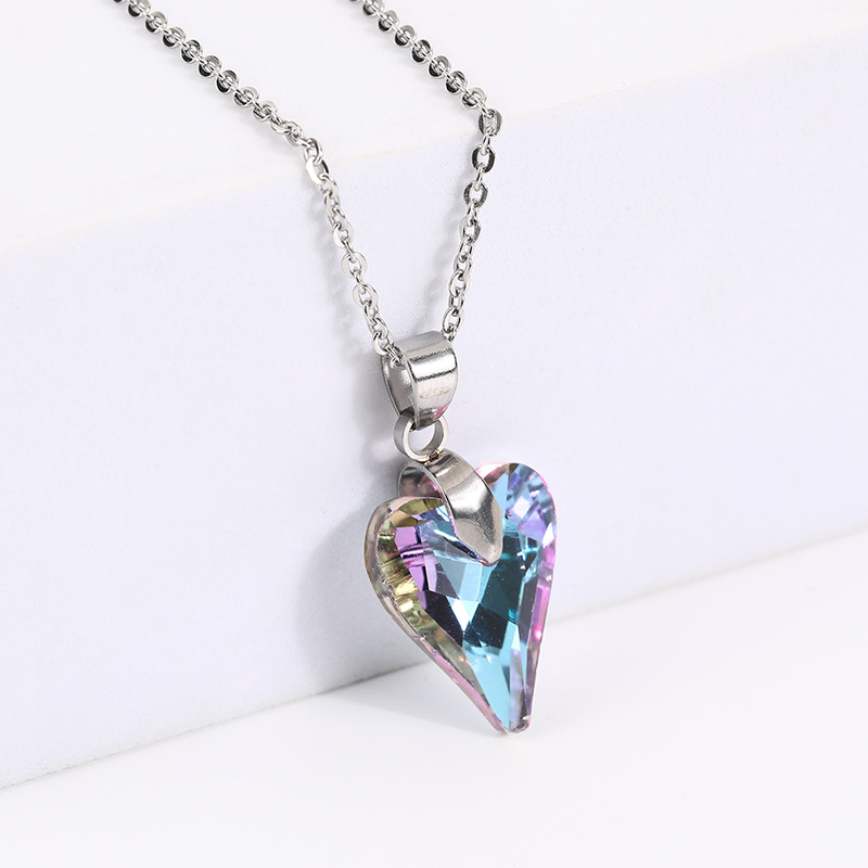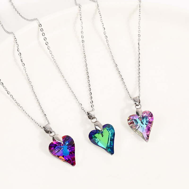 爱心水晶项链透明不锈钢锁骨链女士简约小众设计颈链钛钢链批发