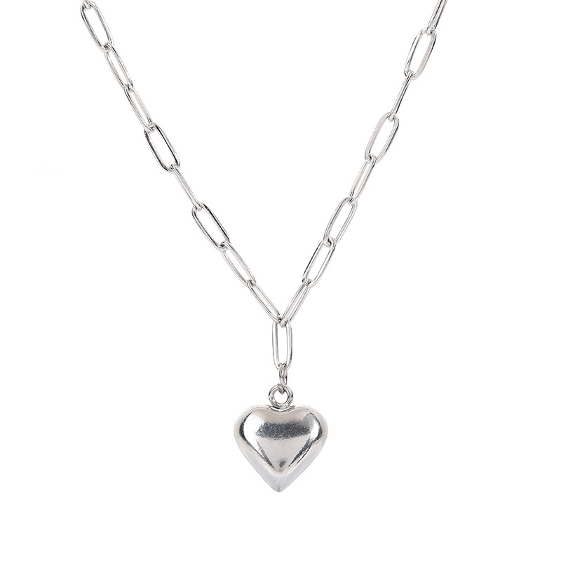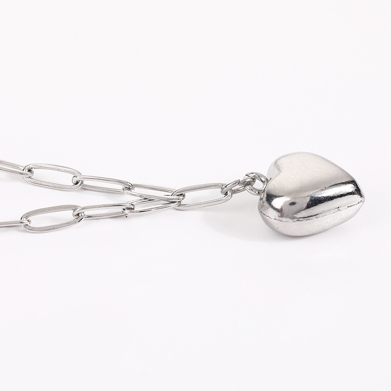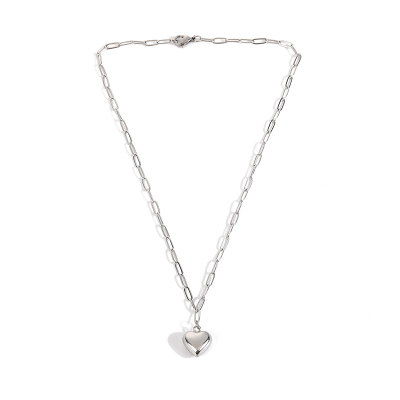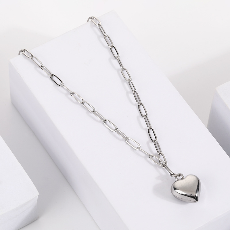 跨境饰品个性设计爱心项链简约心型吊坠不锈钢项链饰品银色现货