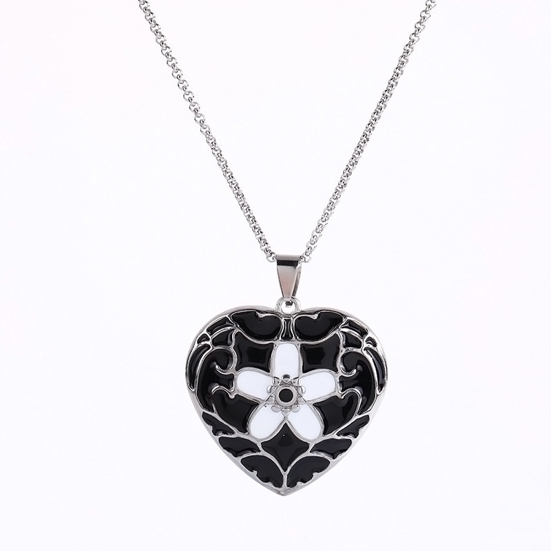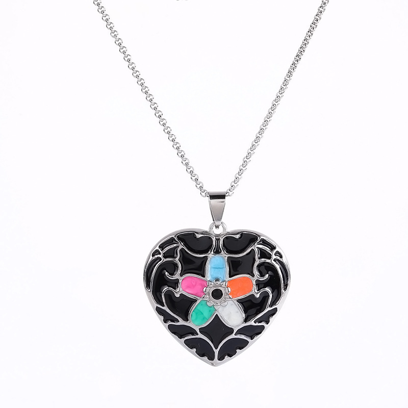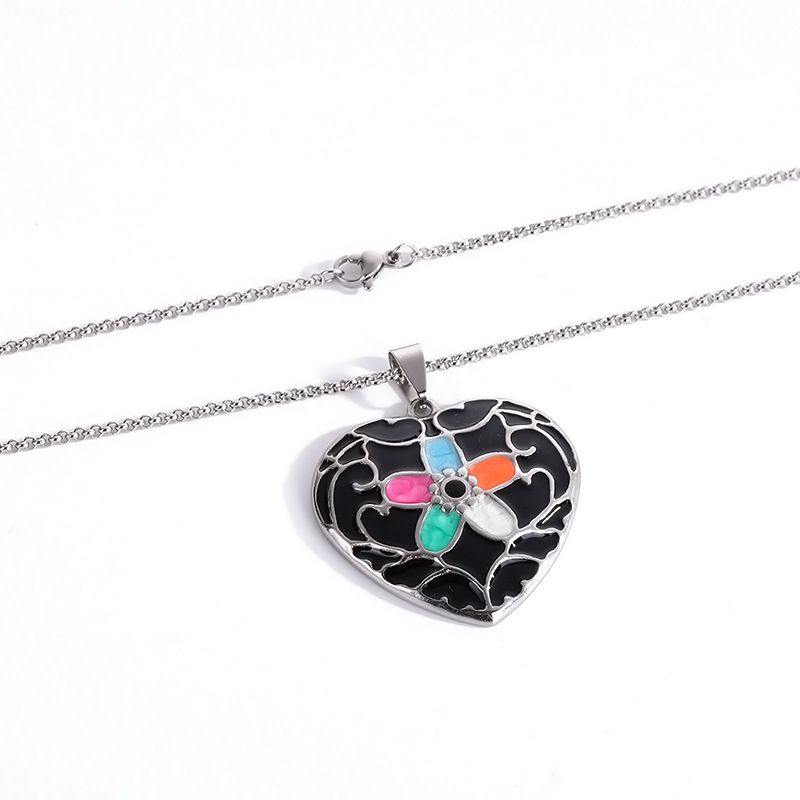 不锈钢心形项链爱心彩色吊坠时尚饰品复古毛衣链百搭项链跨境