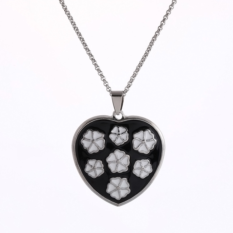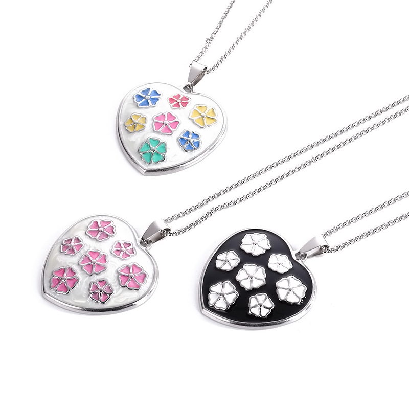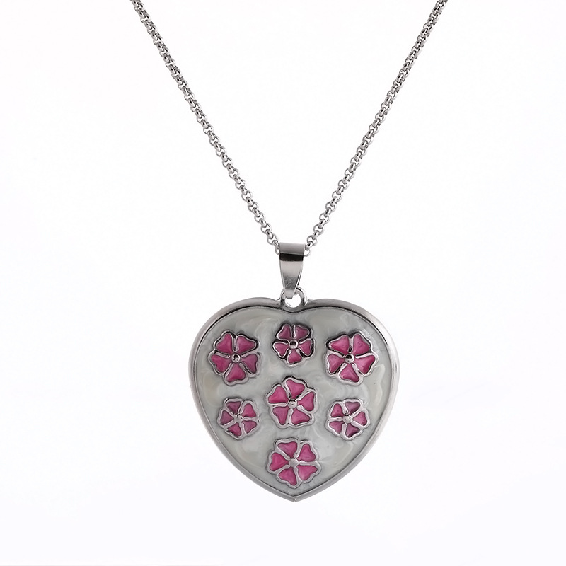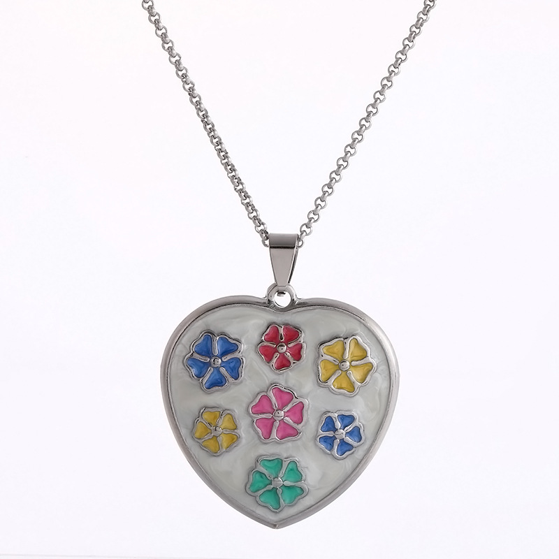 欧美流行项链时尚心形吊坠镂空彩色女士不锈钢项链毛衣链批发直供