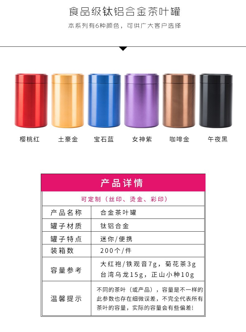 钛合金小号茶叶罐铝罐金属茶罐迷你便携旅行不锈钢密封茶叶包装罐