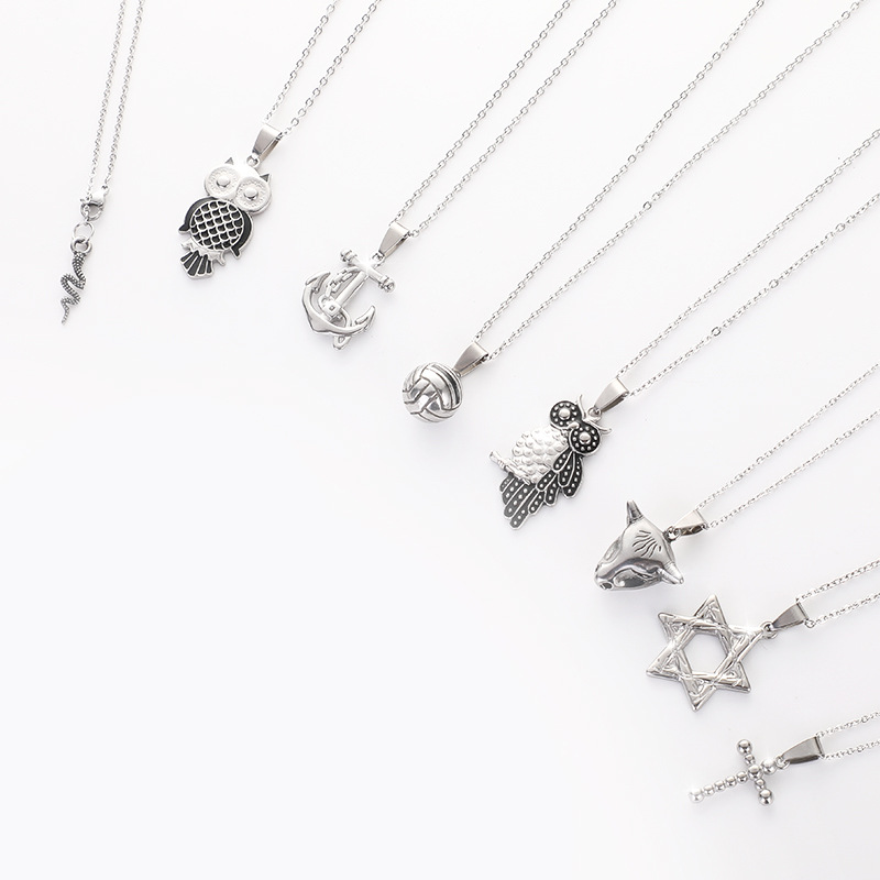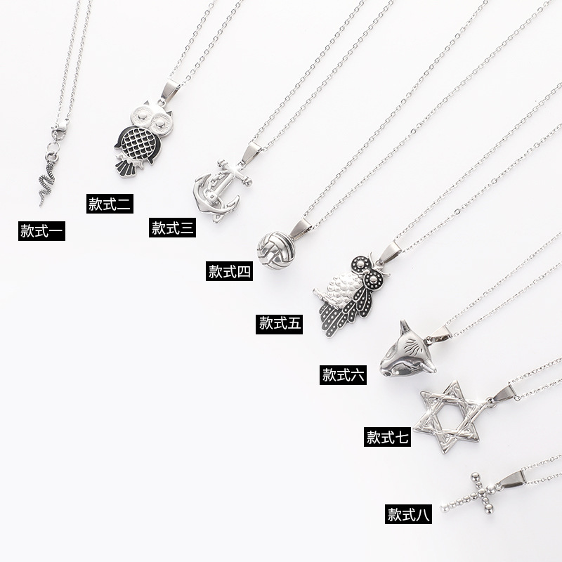 跨境新款不锈钢饰品个性猫头鹰钛钢项链简约时尚毛衣卫衣项链批发