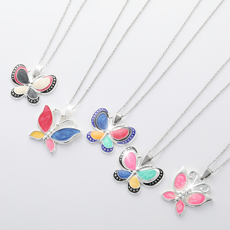 欧美跨境新款滴油蝴蝶时尚吊牌网红同款不锈钢项链配饰厂家