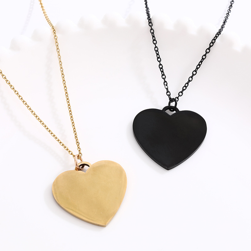 现代简约纯色爱心项坠项链 光面爱心吊坠项链 不锈钢项链饰品批发