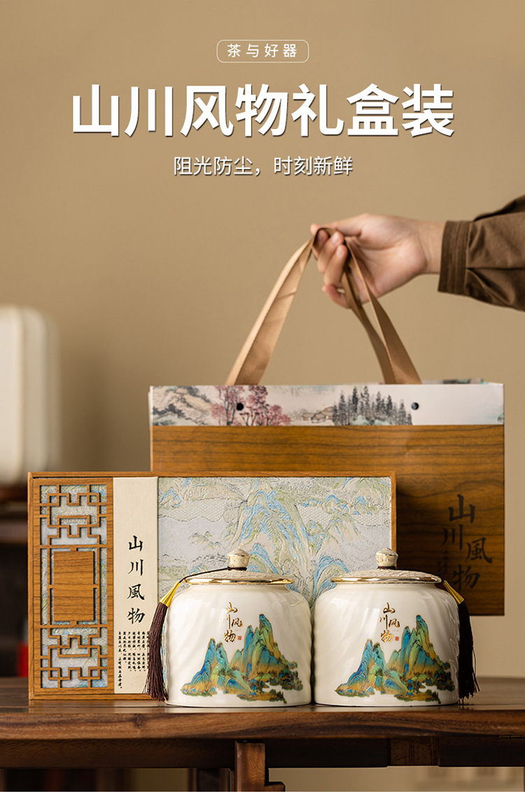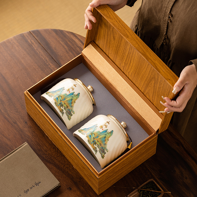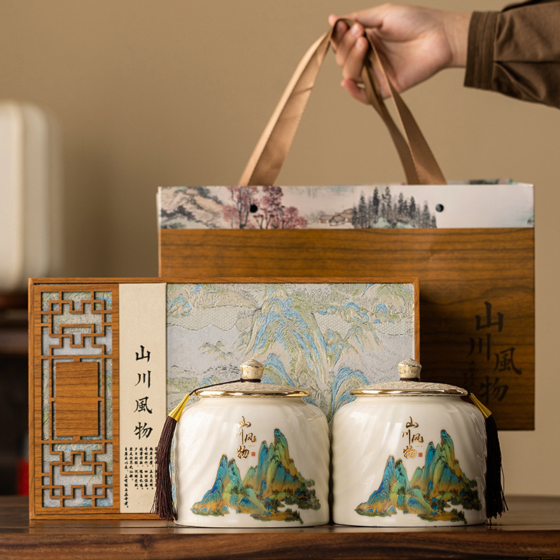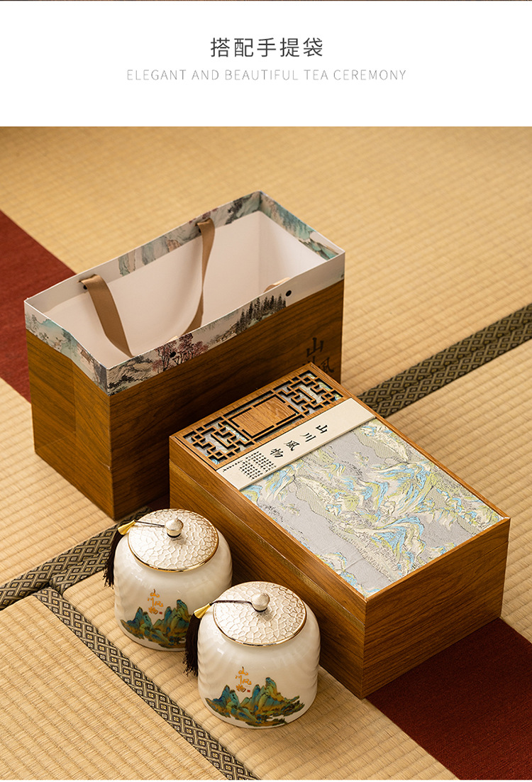 高档中式茶叶礼盒装空盒通用陶瓷罐礼品包装盒红茶白茶绿茶空礼盒