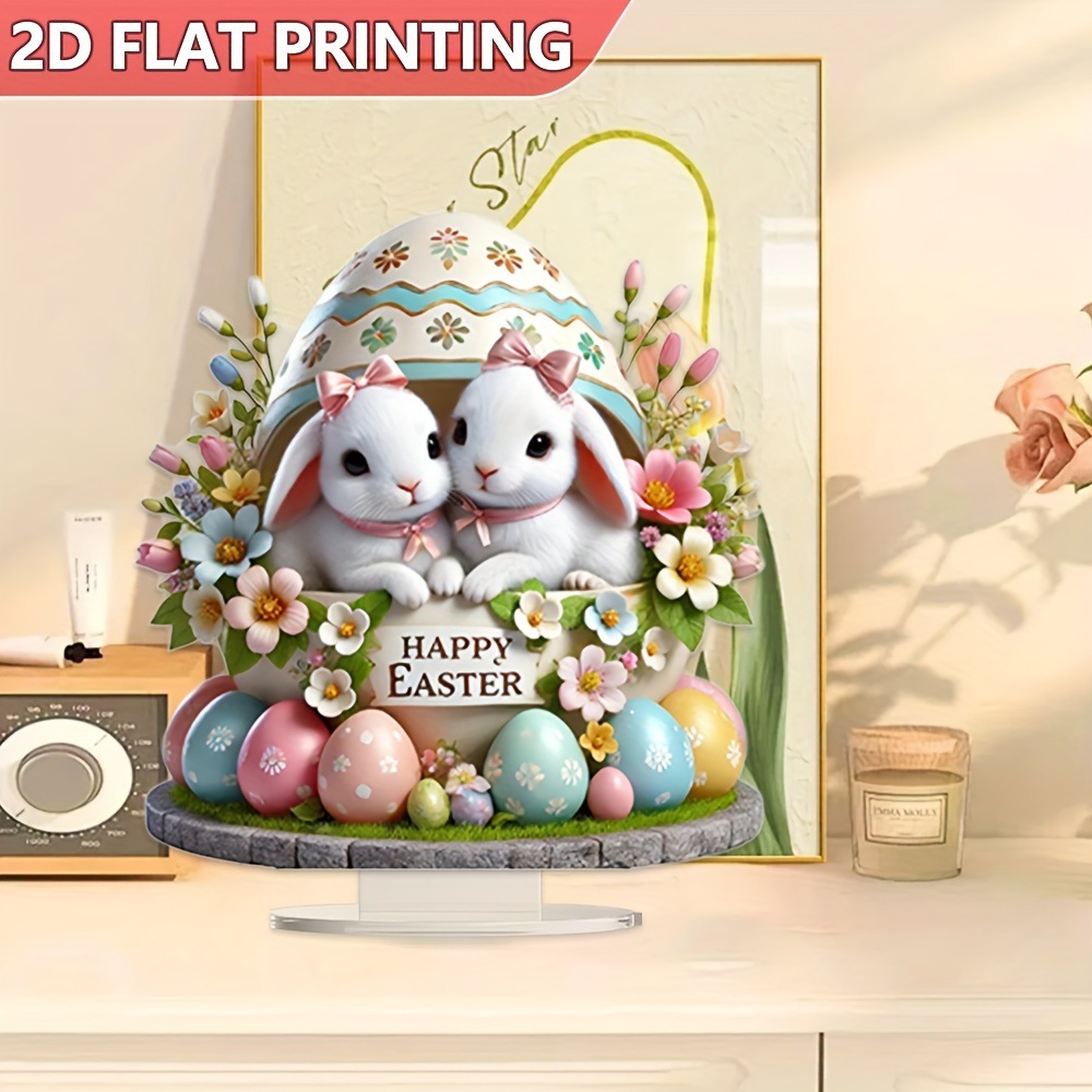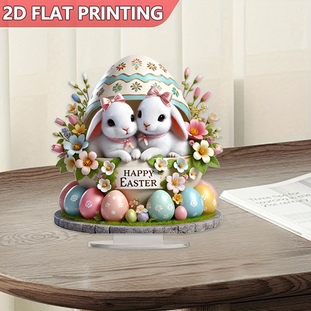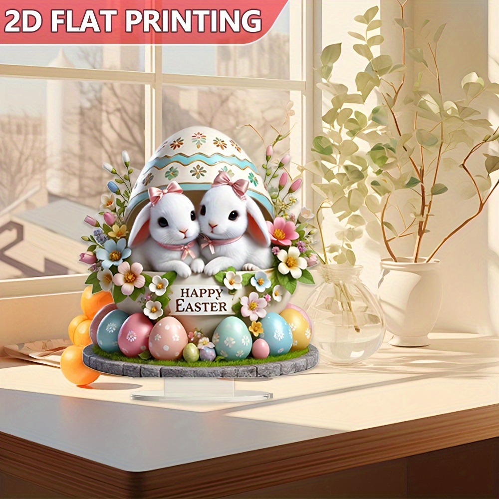 跨境复活节兔子彩蛋2D平面亚克力装饰家居桌面摆件节日派对装饰品