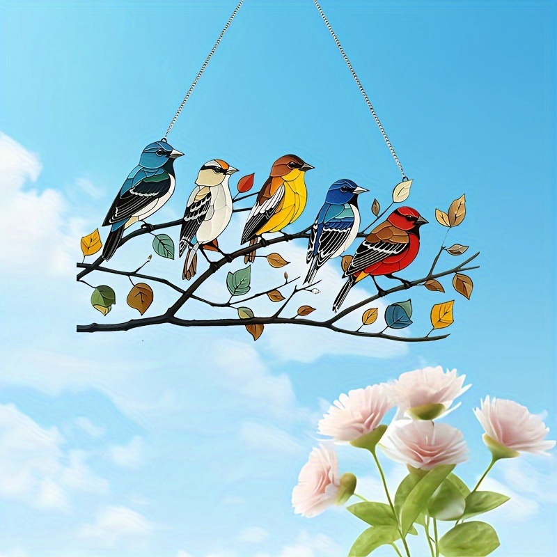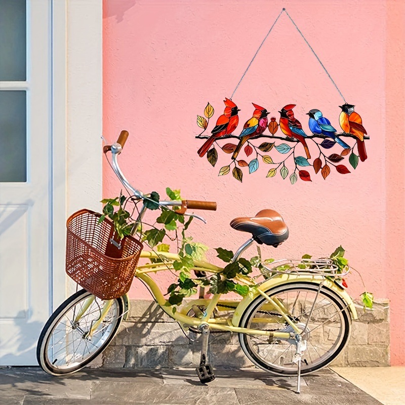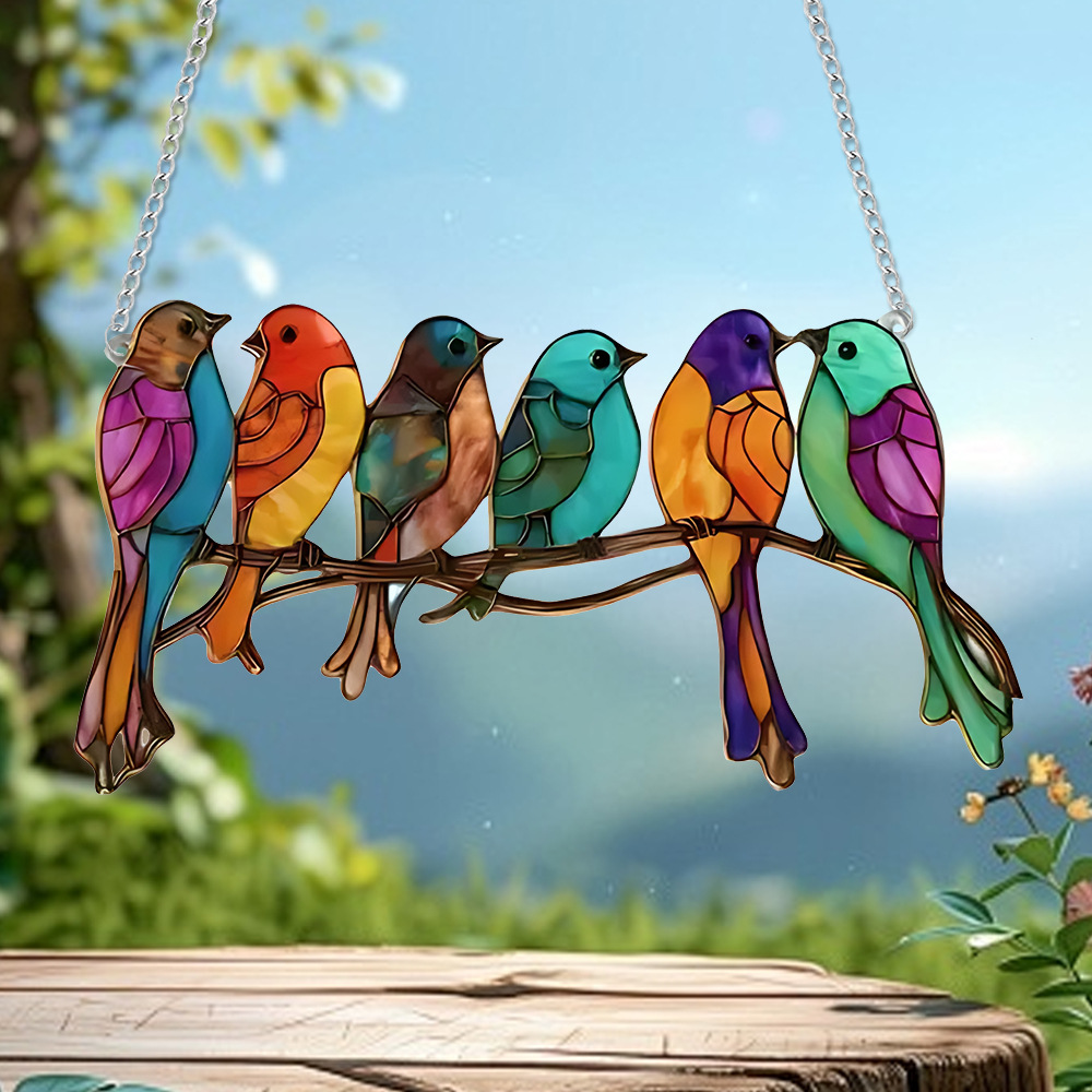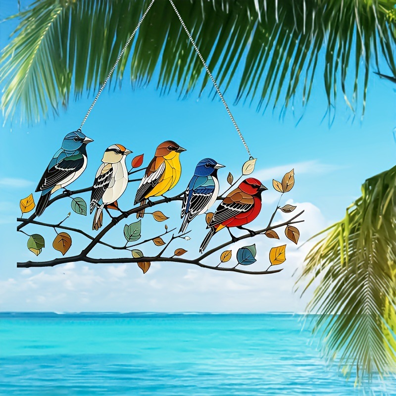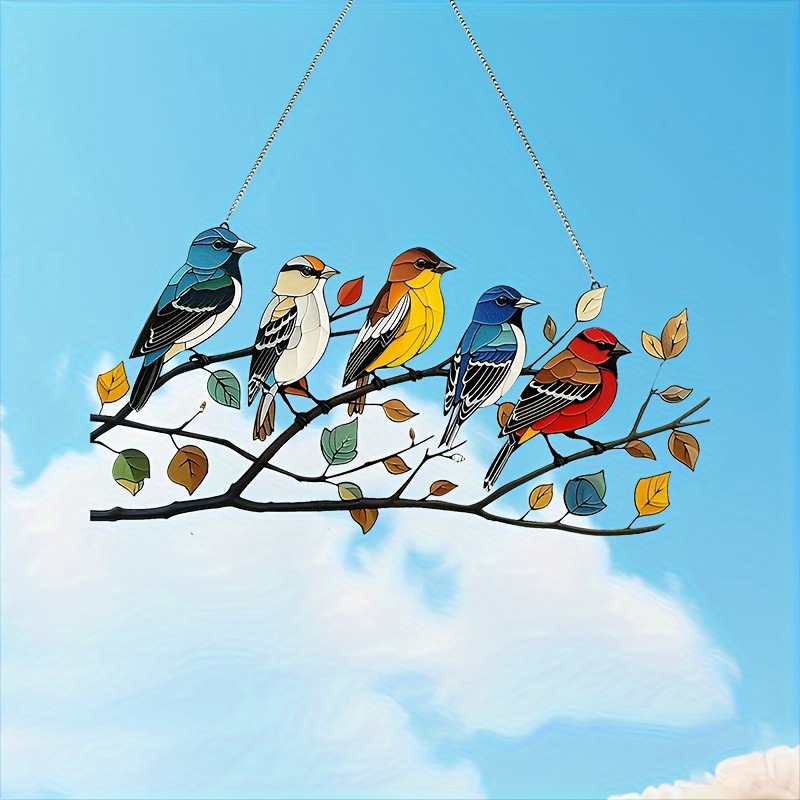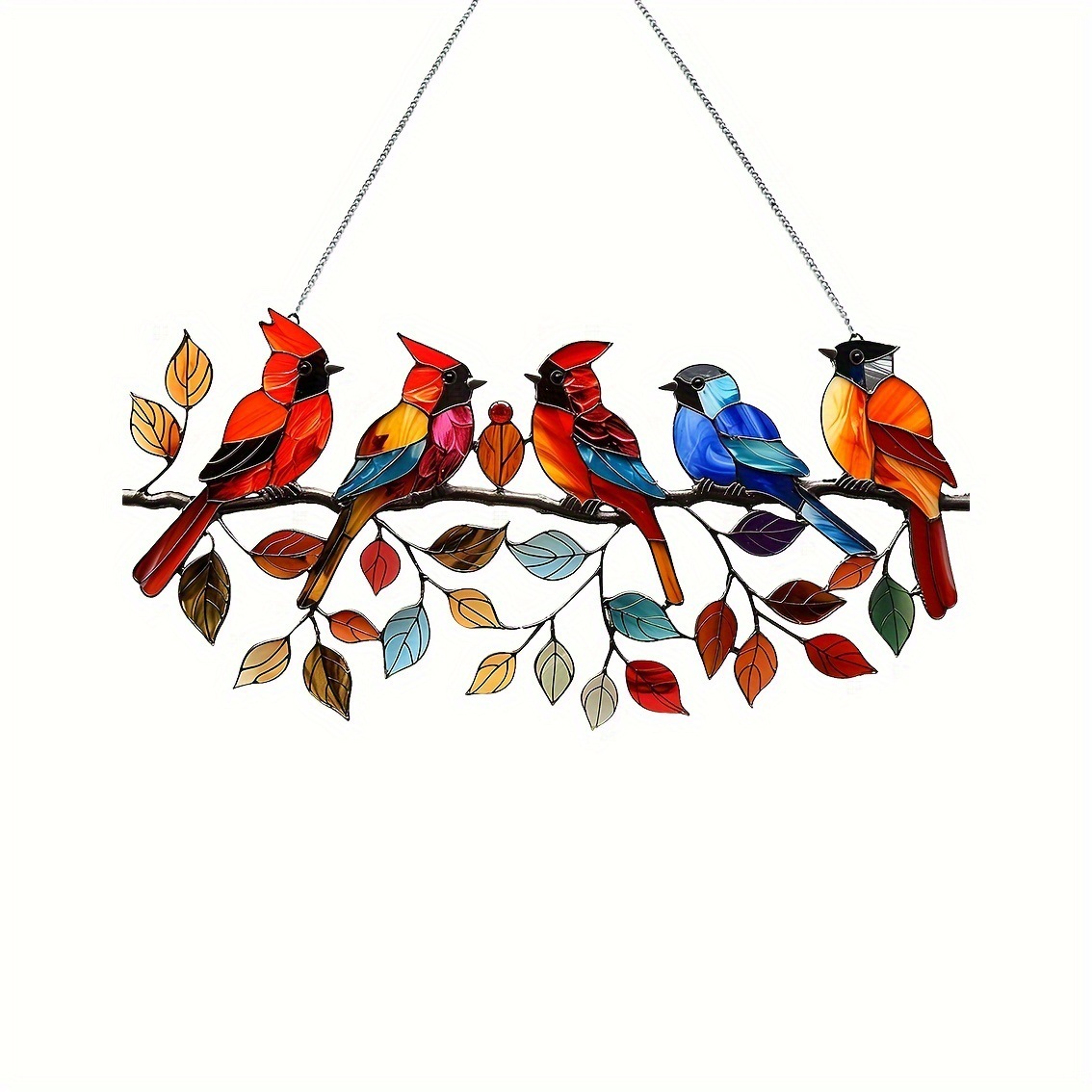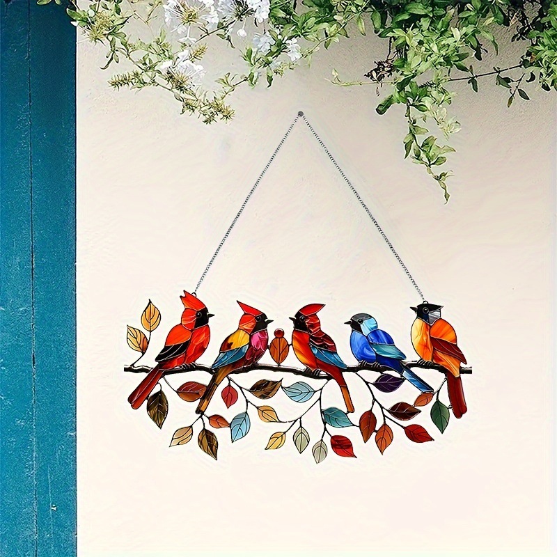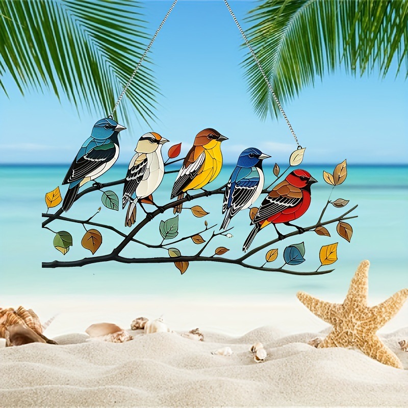 跨境2D平面鸟类彩色玻璃树枝亚克力鸟装饰标志牌匾壁挂多用途挂件