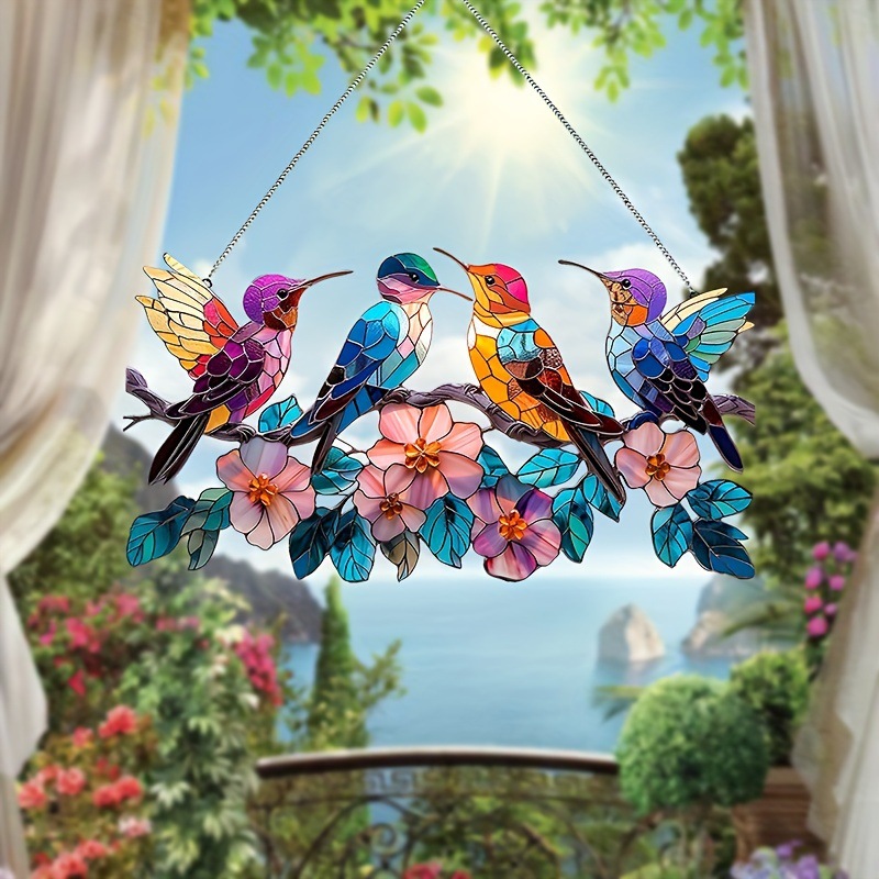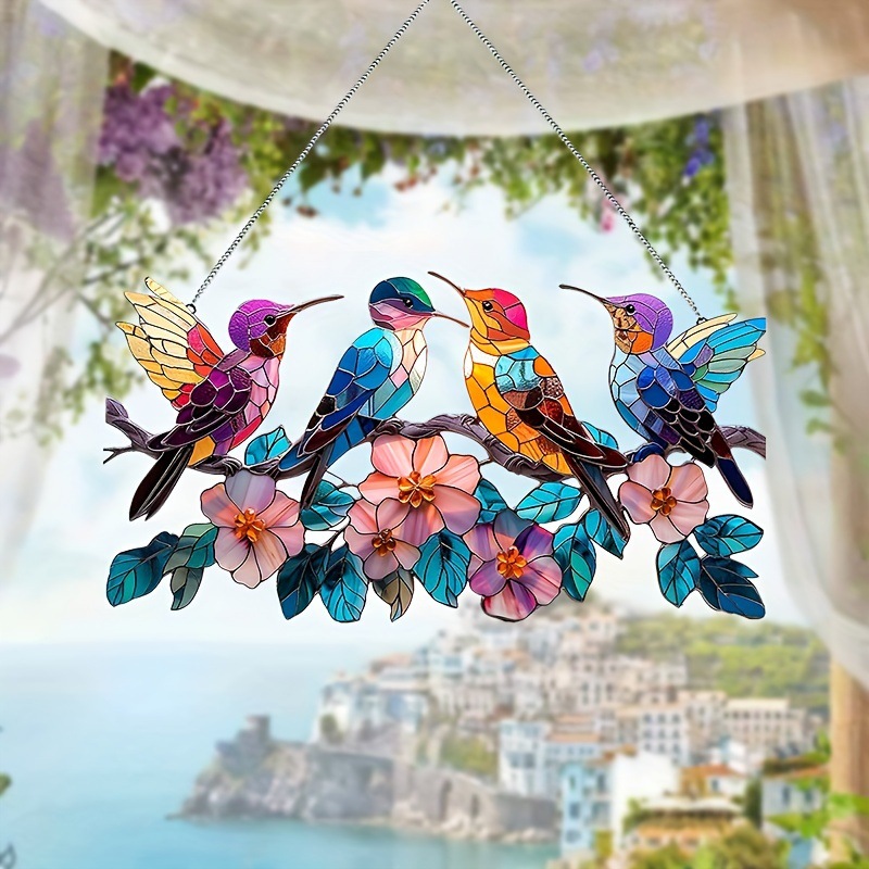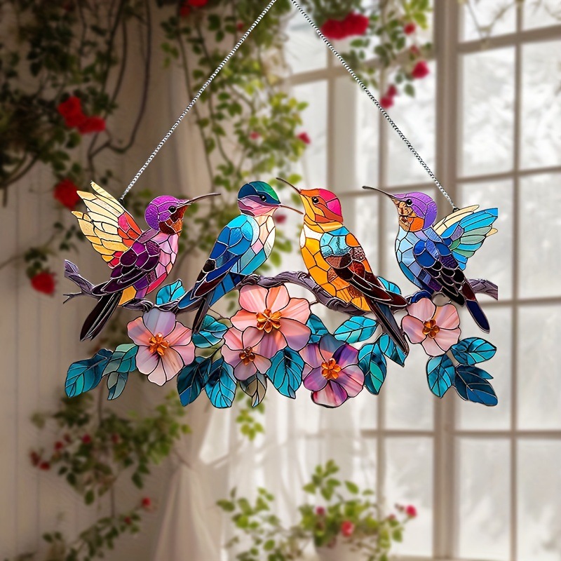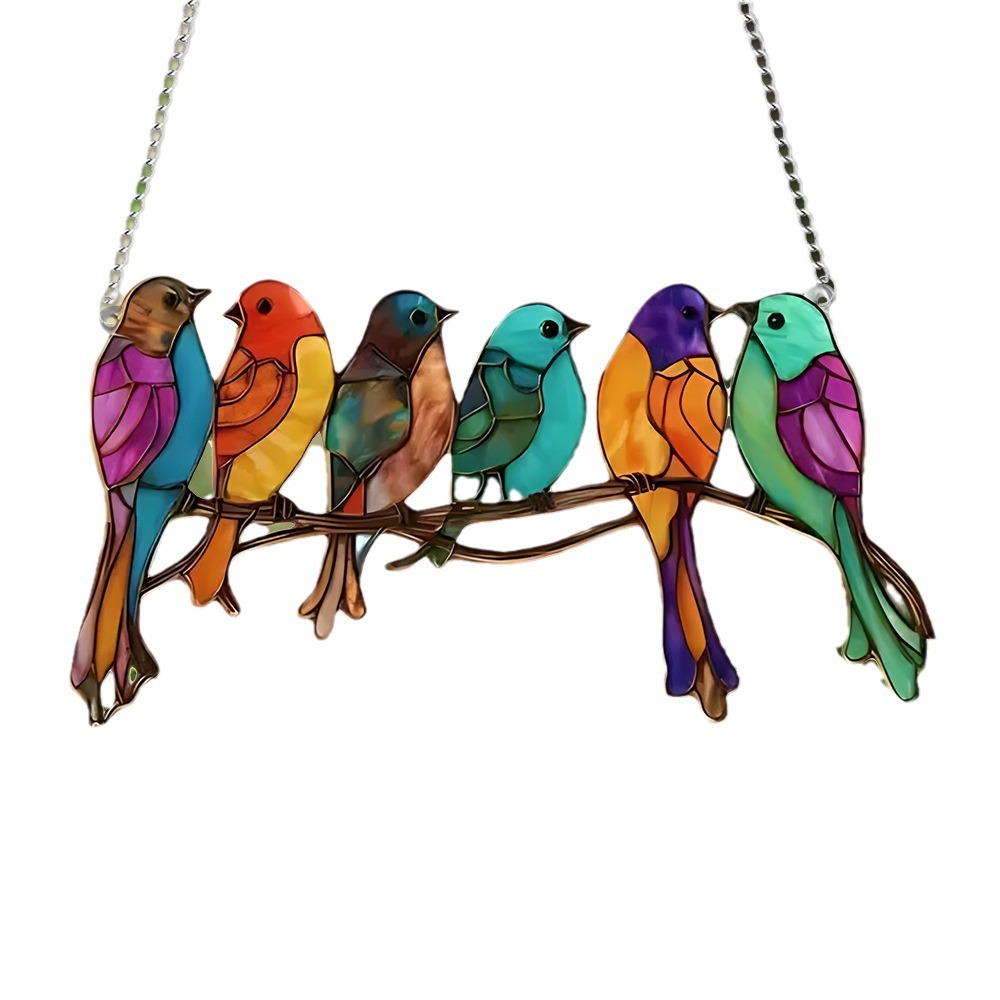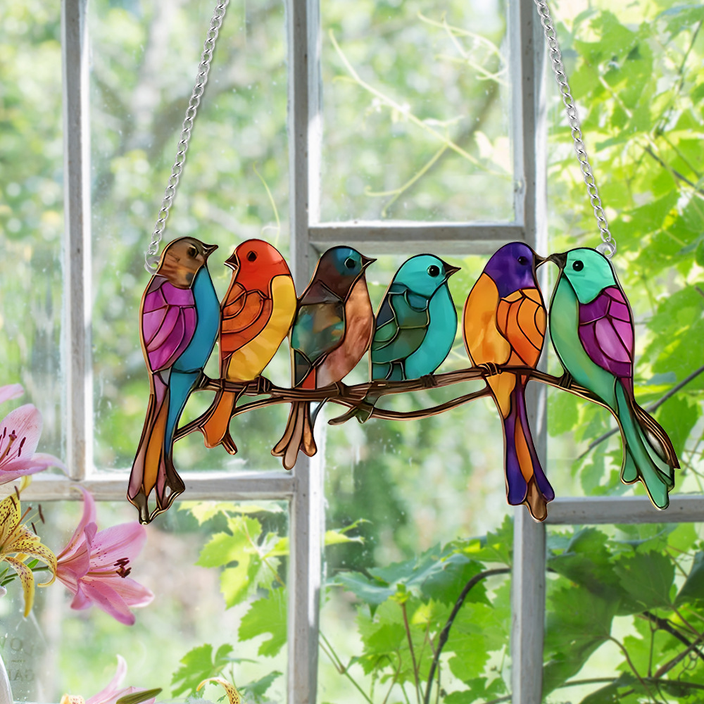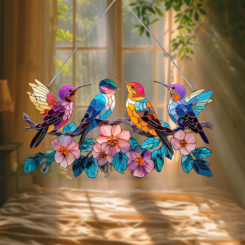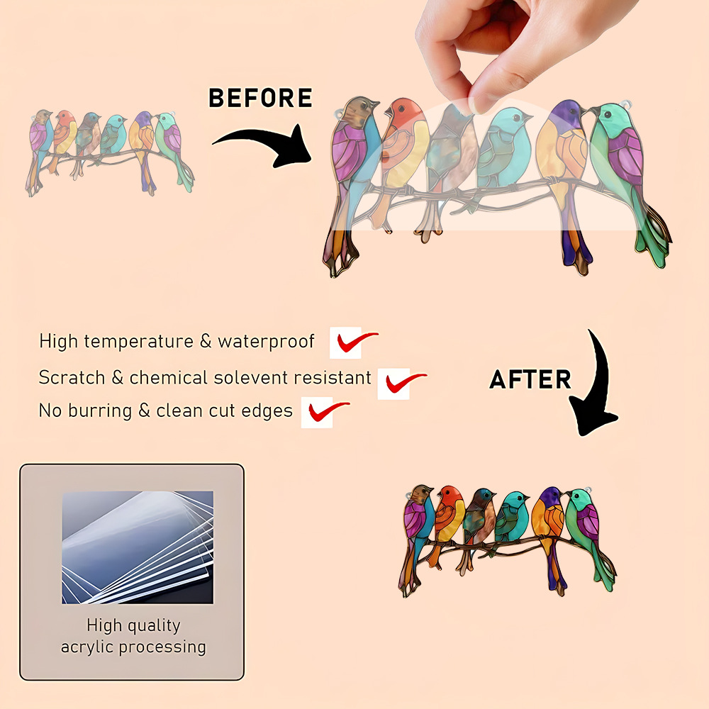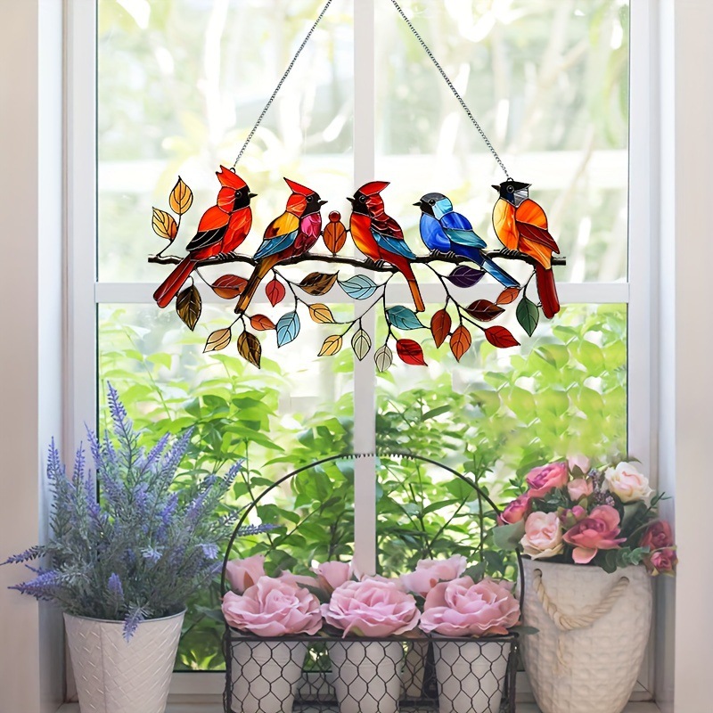跨境2D平面鸟类彩色玻璃树枝亚克力鸟装饰标志牌匾壁挂多用途挂件