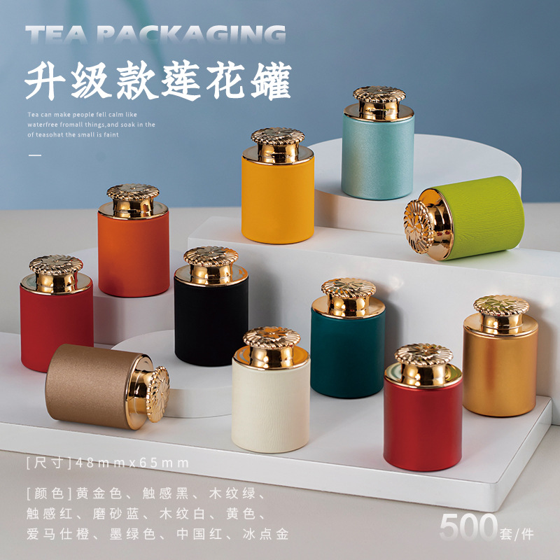 源头厂家茶叶罐小号迷你纸罐荷花盖茶叶罐包装盒铁观音普洱茶小罐