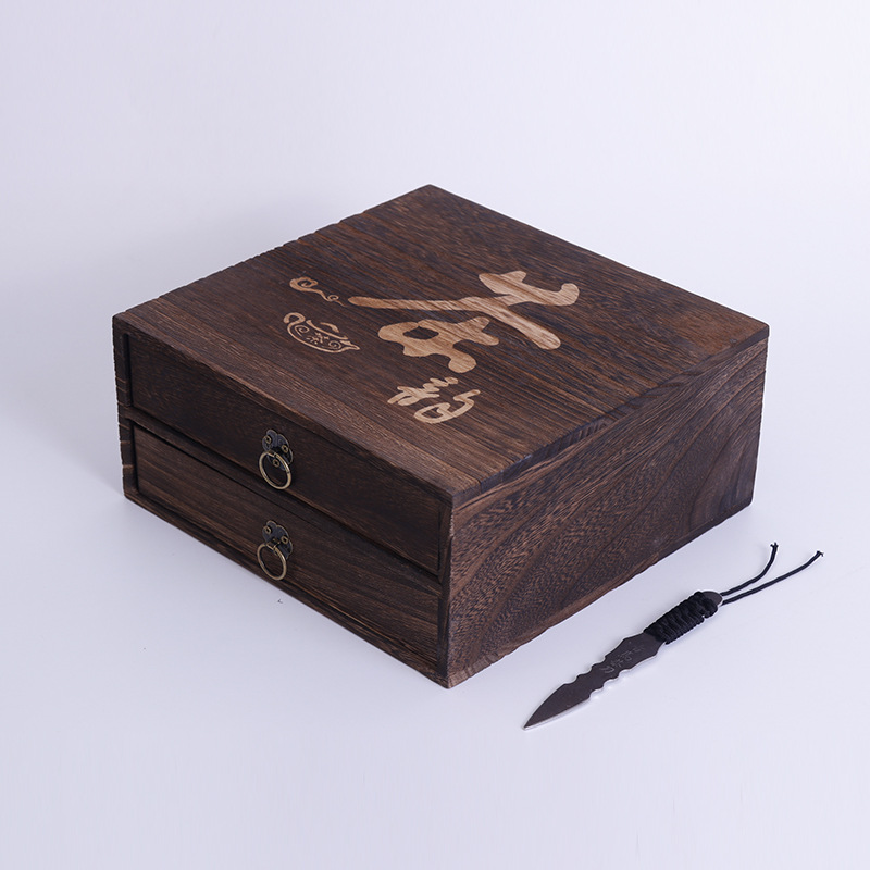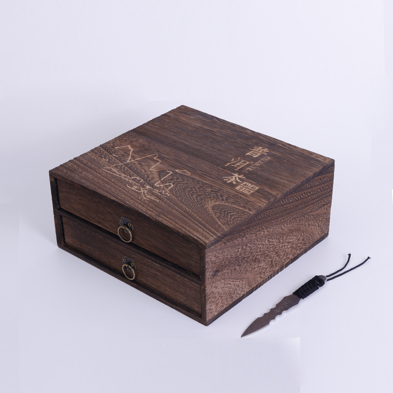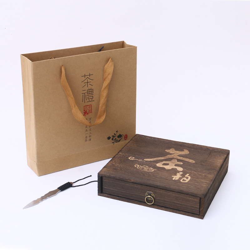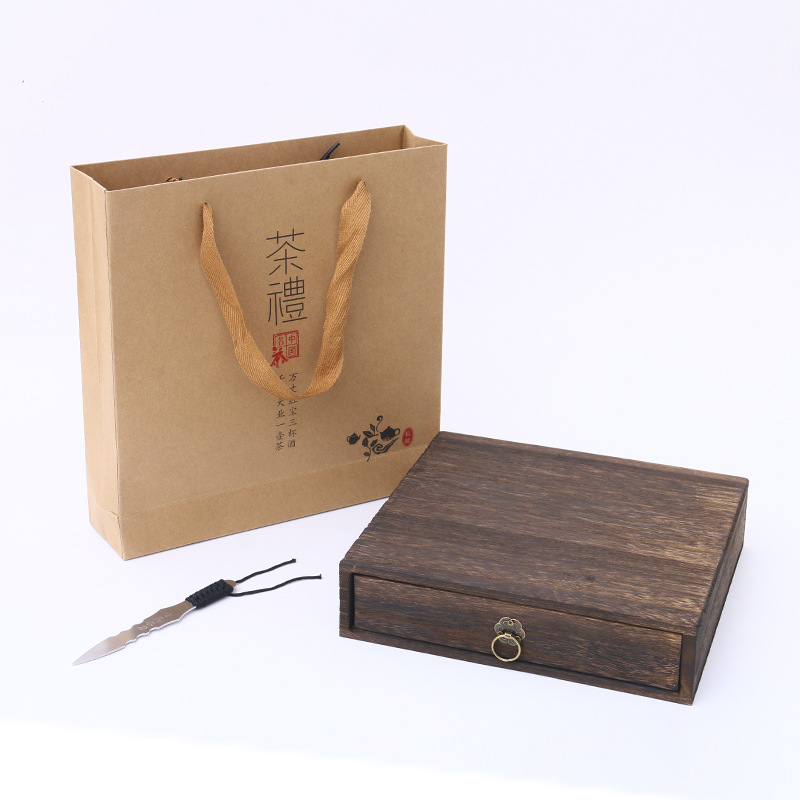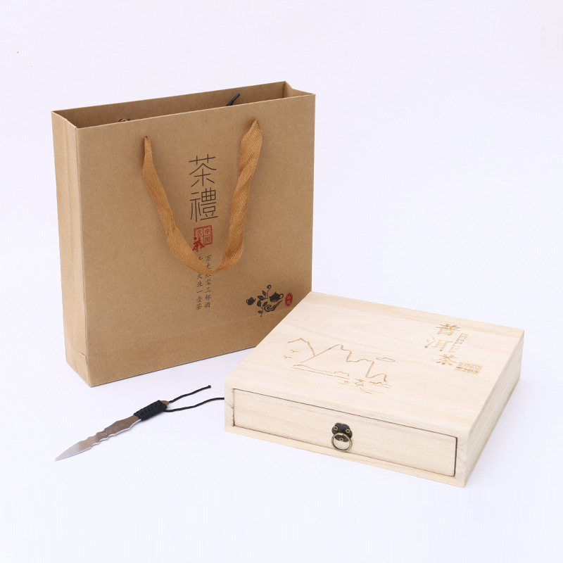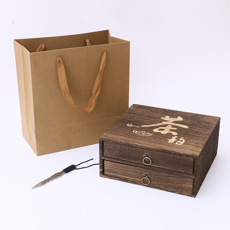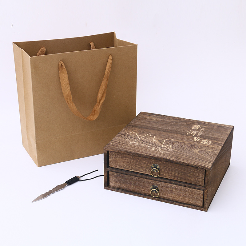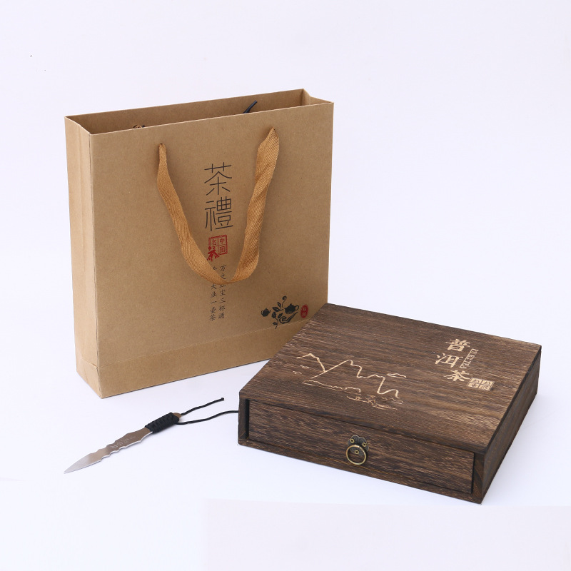 普洱茶饼盒茶叶包装盒茶饼空盒复古实木抽拉单饼盒茶盘通用礼品盒