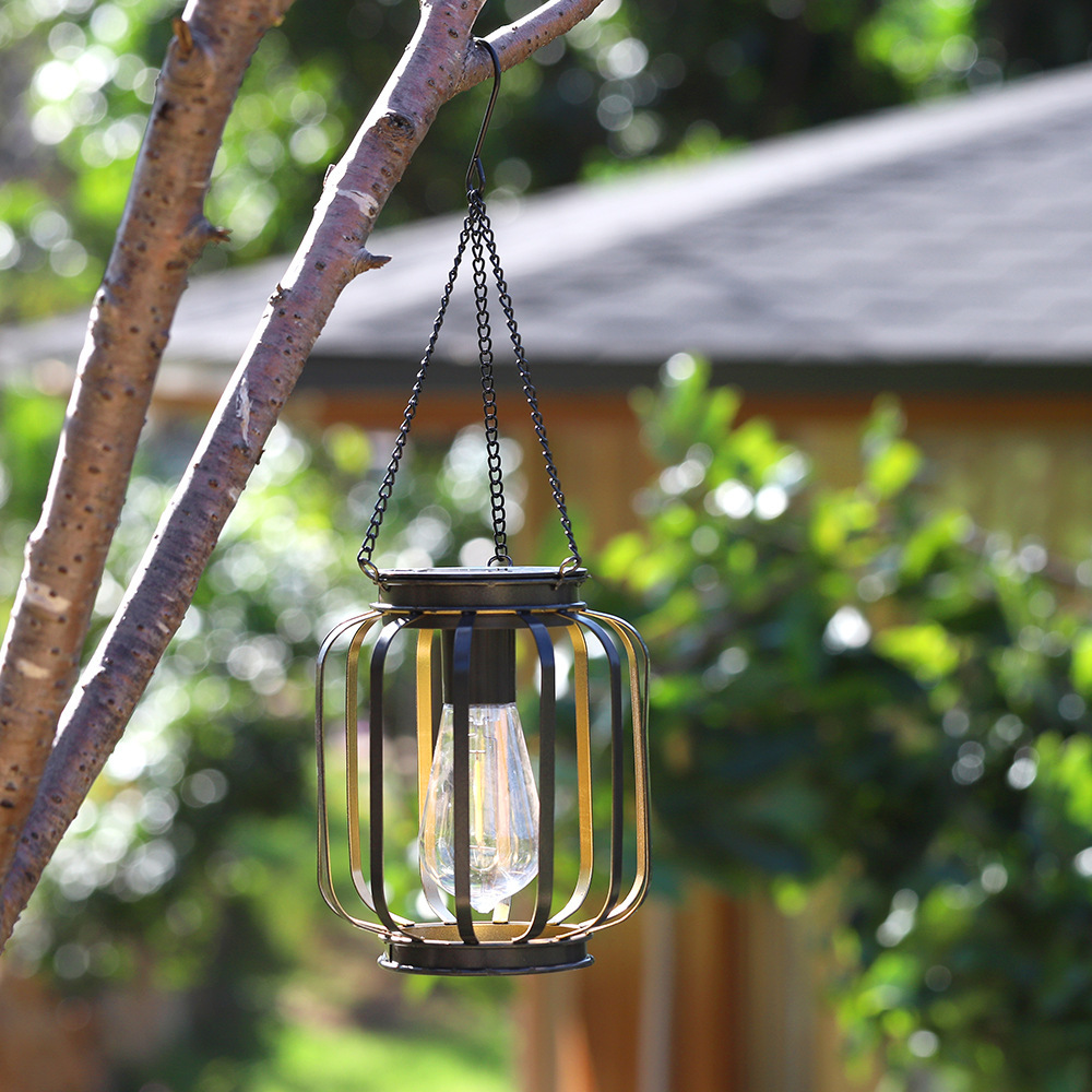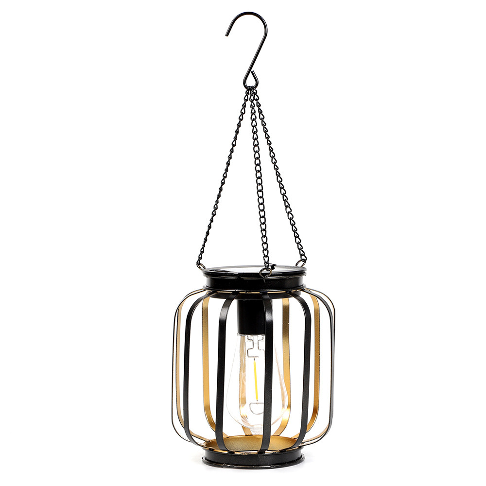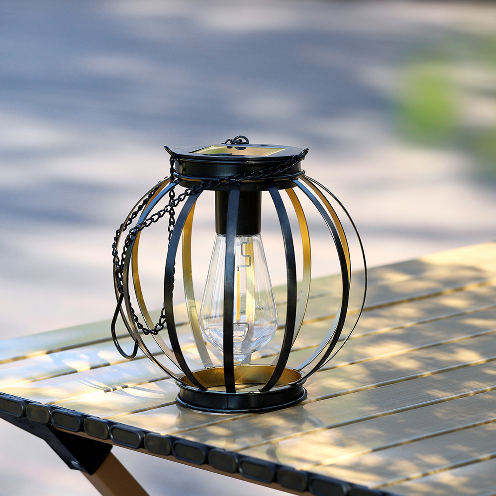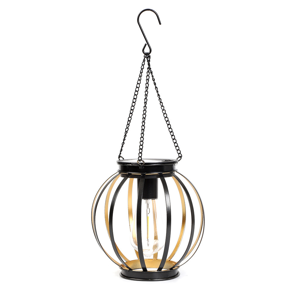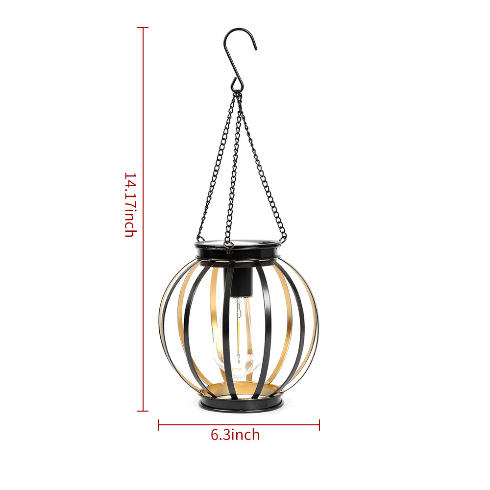 外贸专供太阳能户外灯笼露台廊铁艺围栏圆形扁铁吊灯摆件