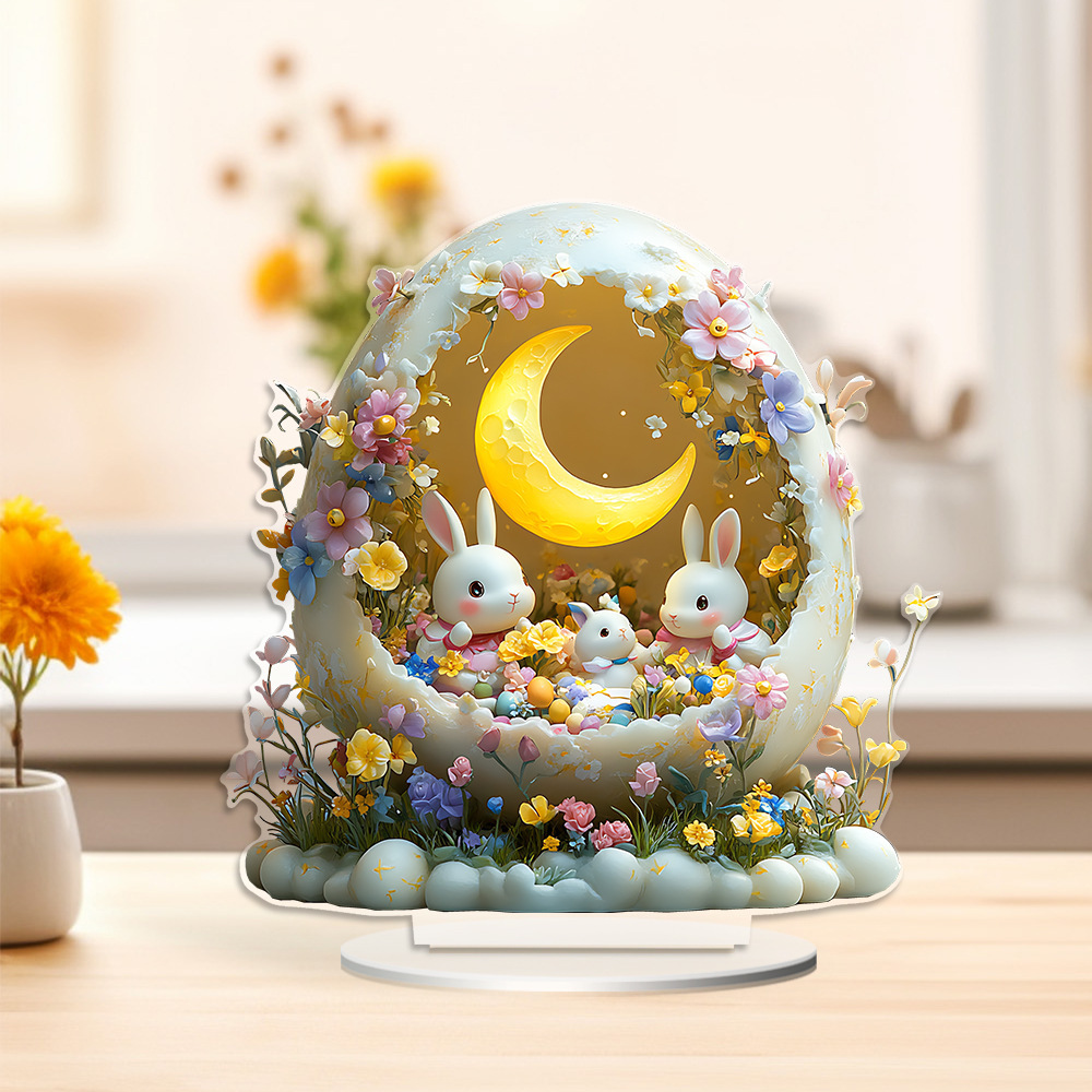跨境复活节可爱毛绒兔子2D亚克力星星月亮蛋壳家居桌面装饰摆件