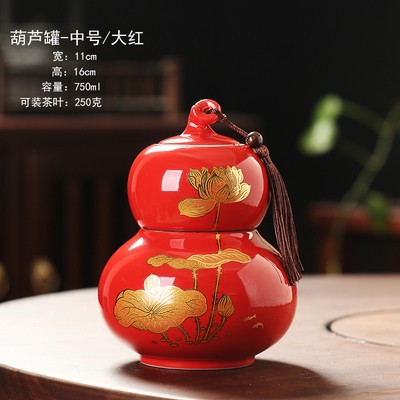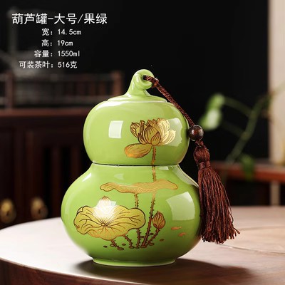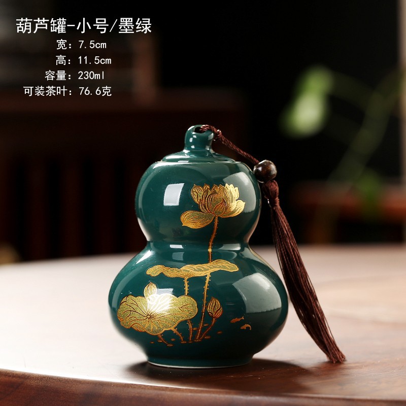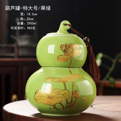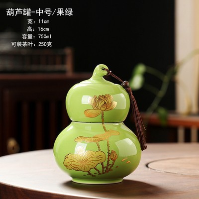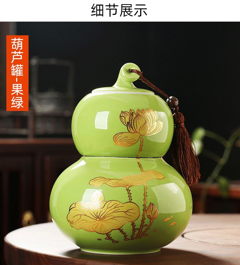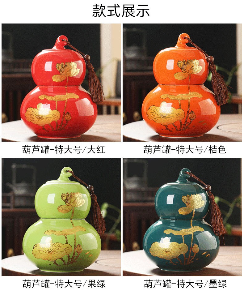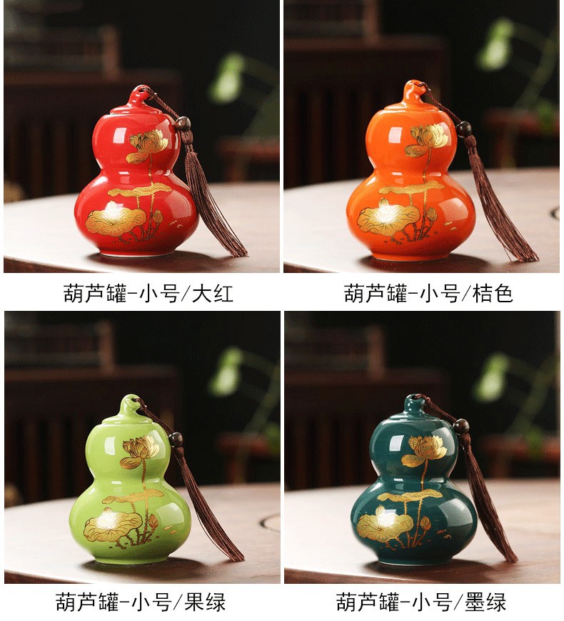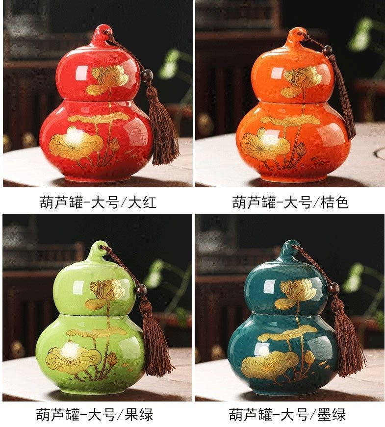 创意陶瓷葫芦茶叶罐摆件小号家用大密封罐普洱红茶空包装盒子茶罐