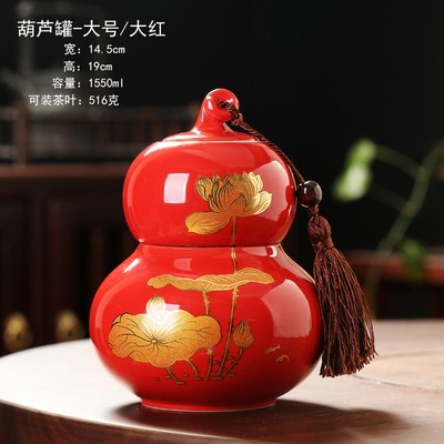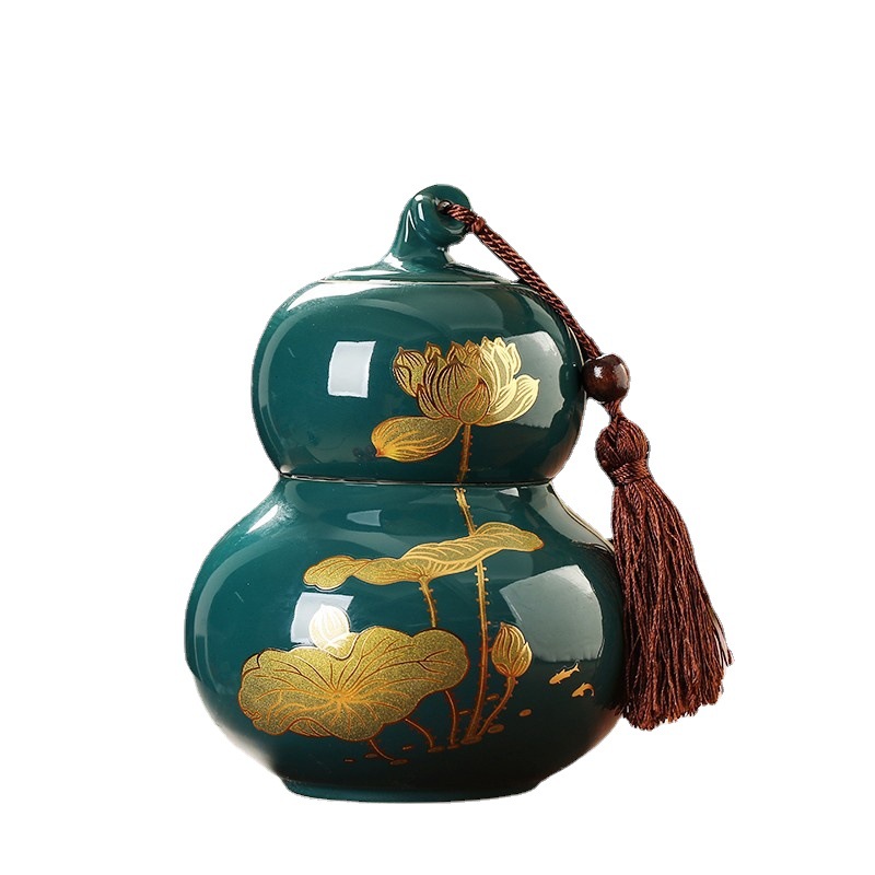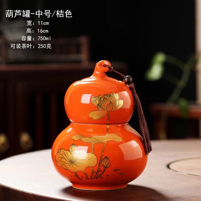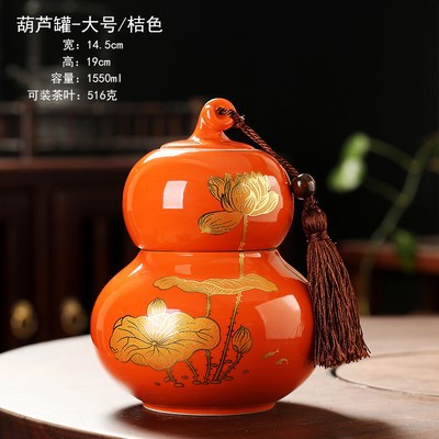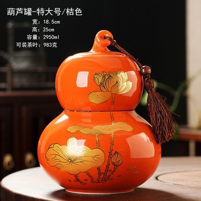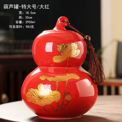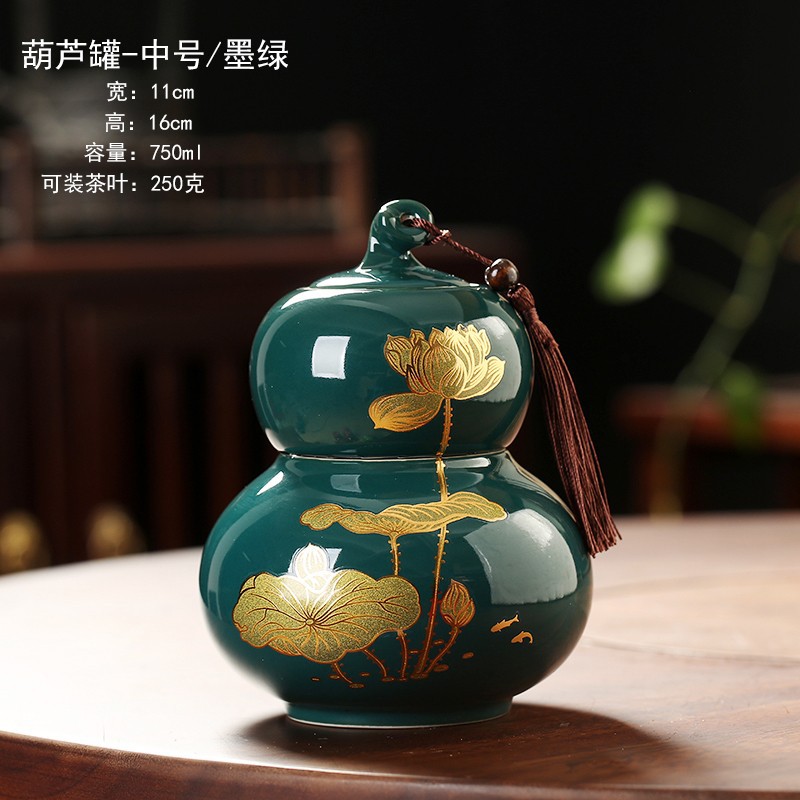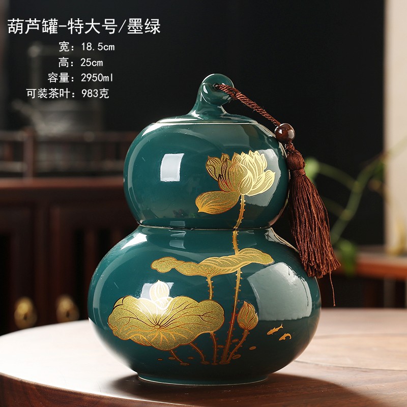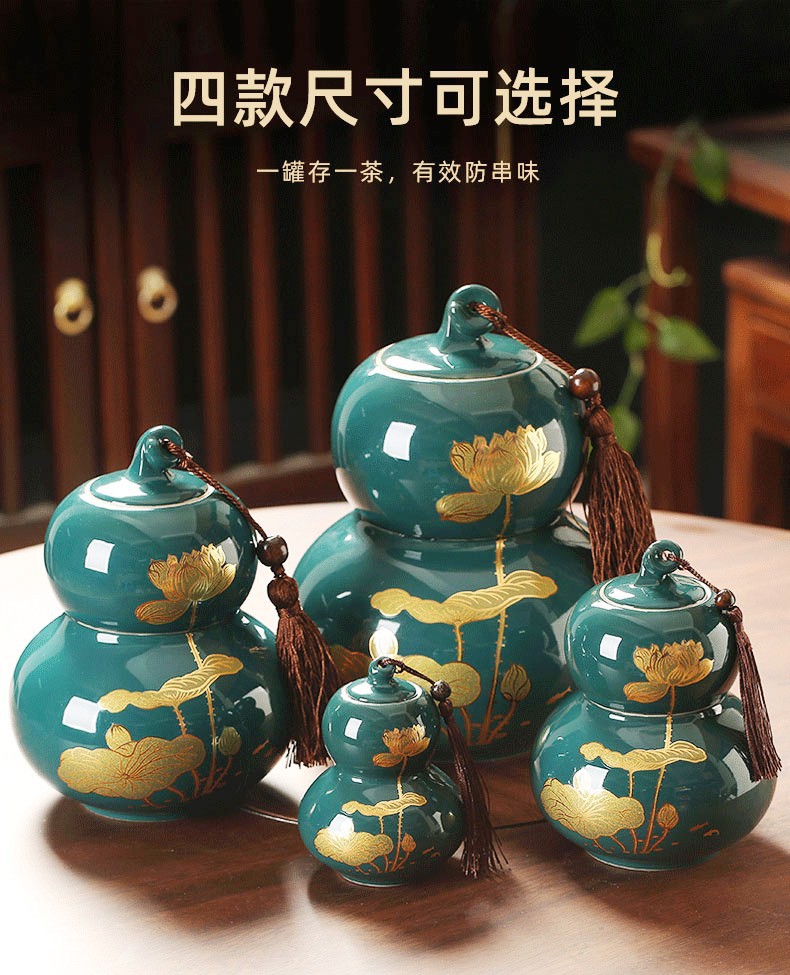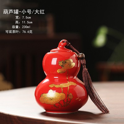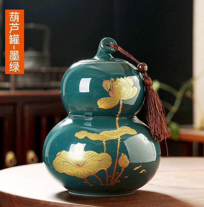 创意陶瓷葫芦茶叶罐摆件小号家用大密封罐普洱红茶空包装盒子茶罐
