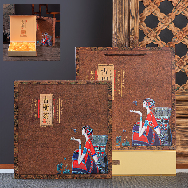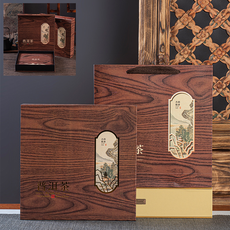 仿木普洱茶包装盒茶叶空礼盒七子饼白茶盒357g单饼收纳盒木盒子